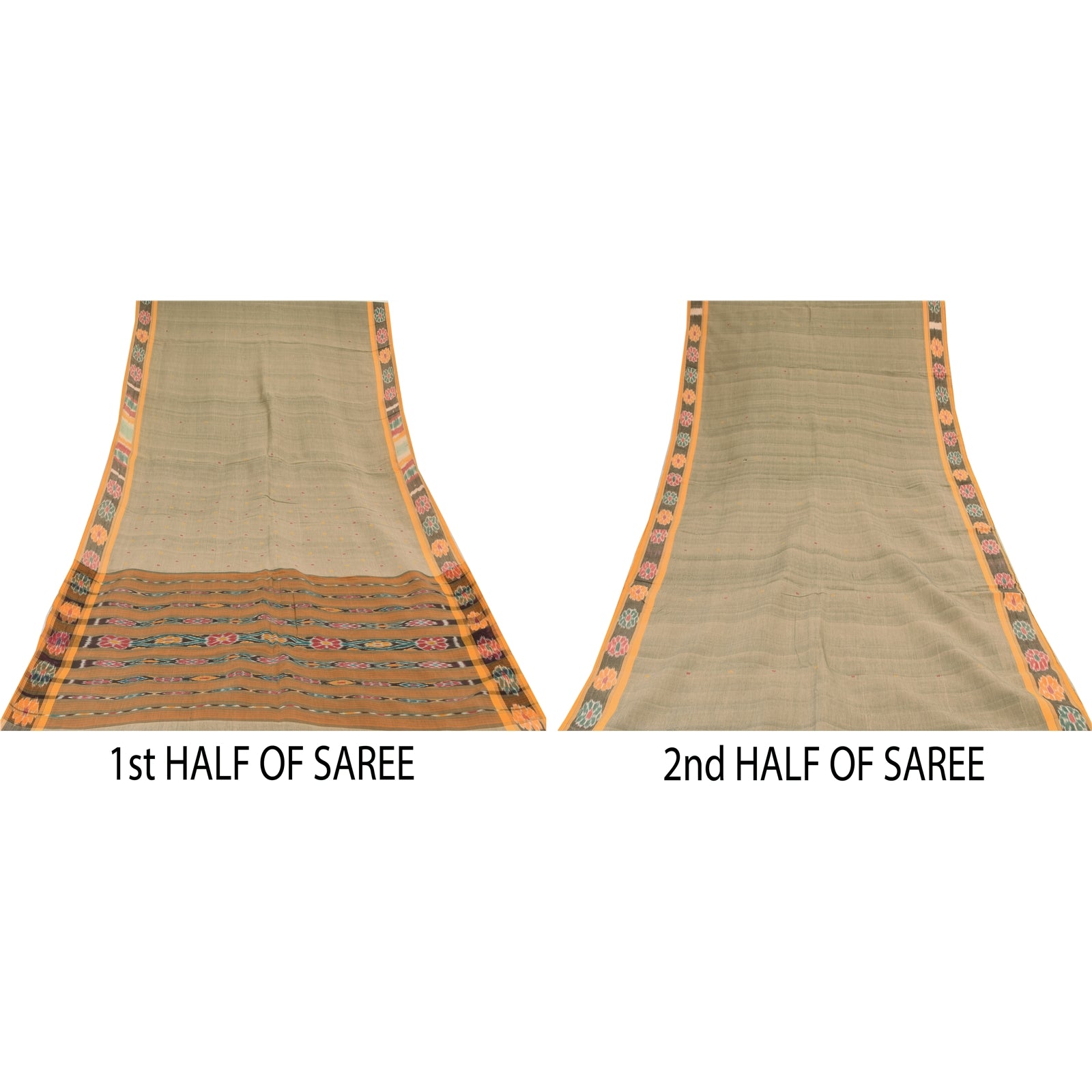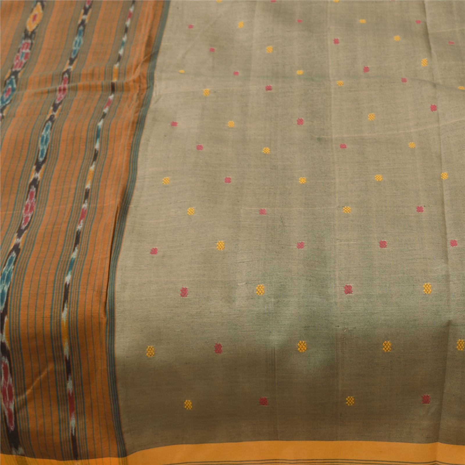 Sanskriti Vintage Sarees Gray Ikat Handwoven Odisha Pure Cotton Sari 5+yd Sustainable Fabric