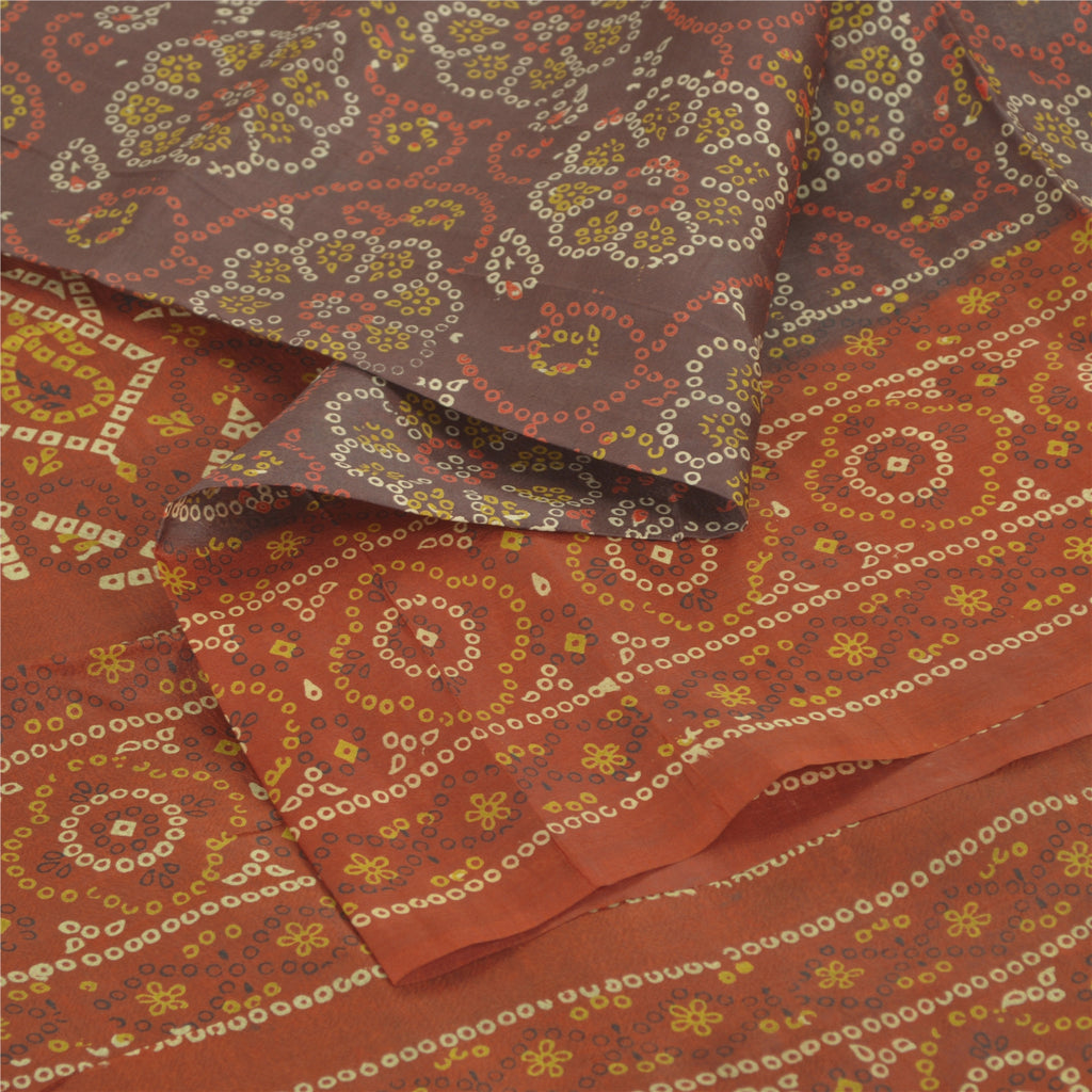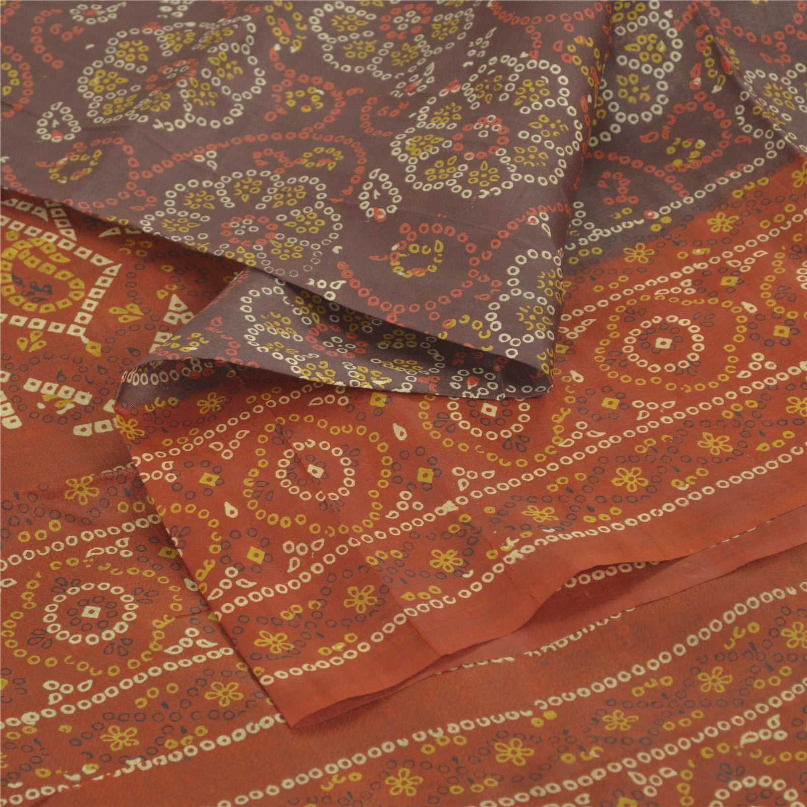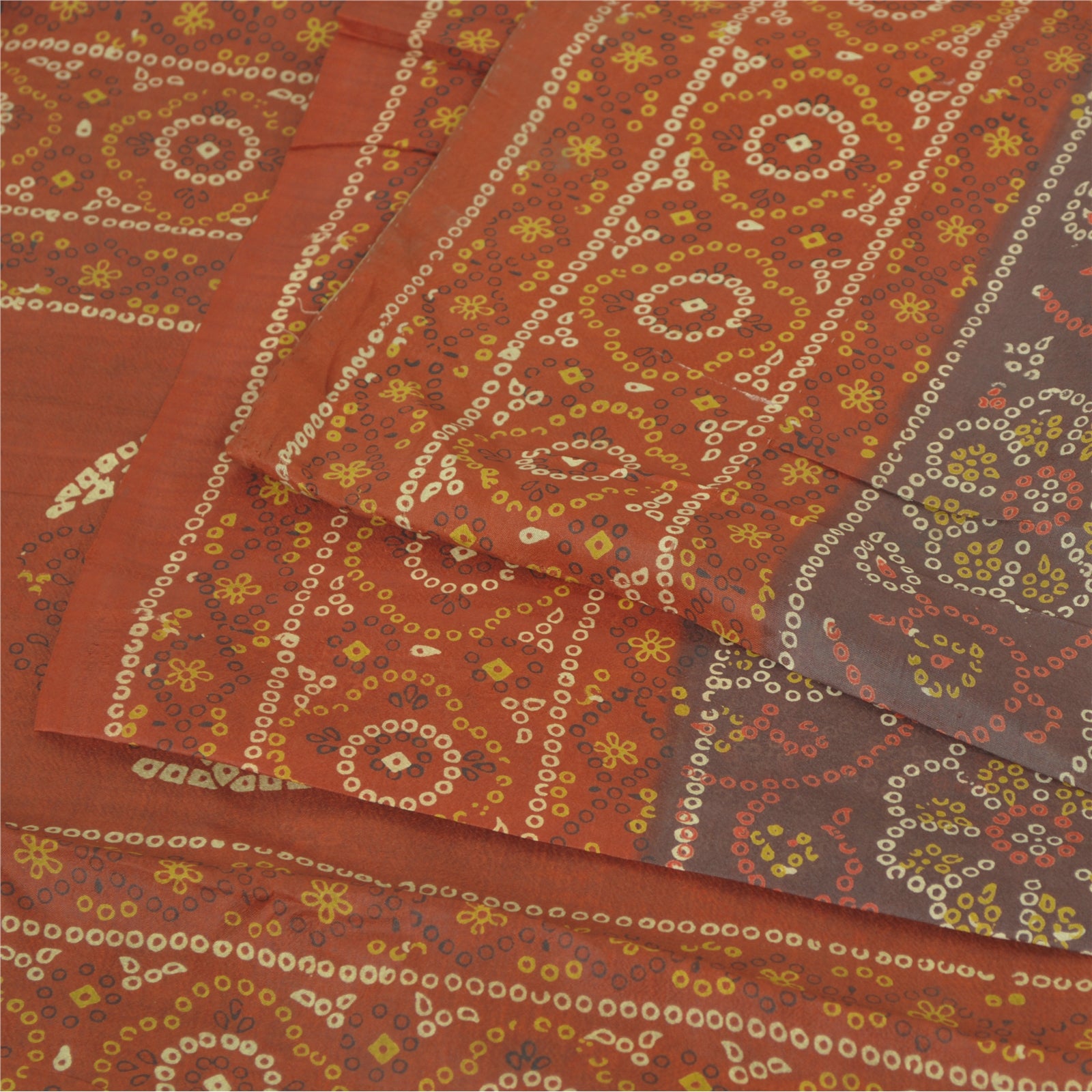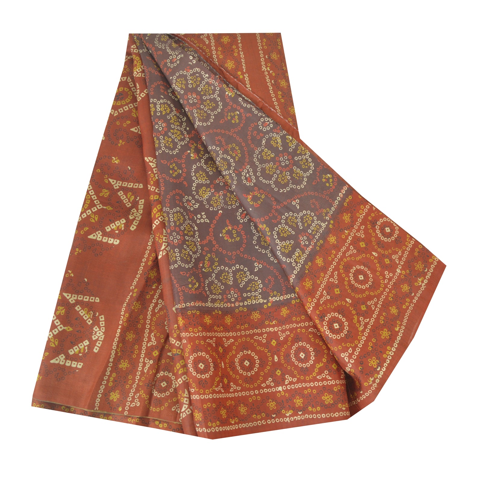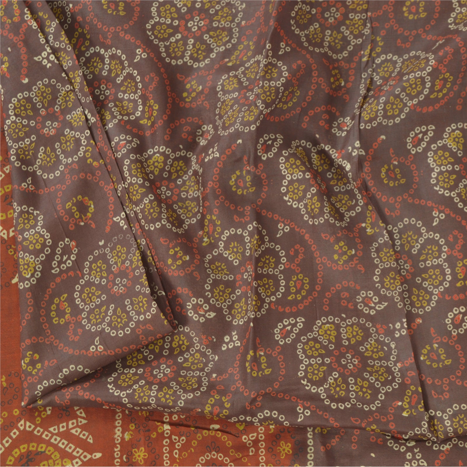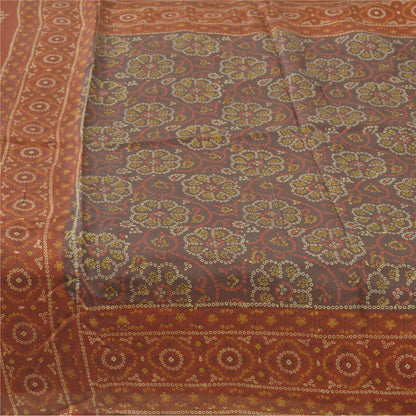 Sanskriti Vintage Sarees Gray/Orange Bandhani Pure Silk Printed Sari 5yd Sustainable Fabric