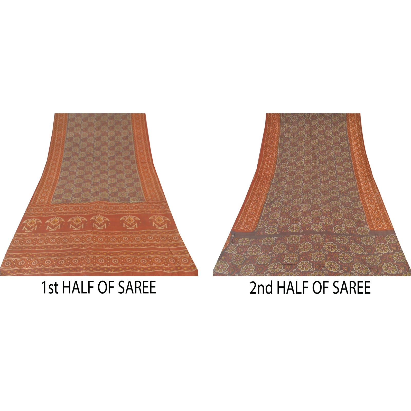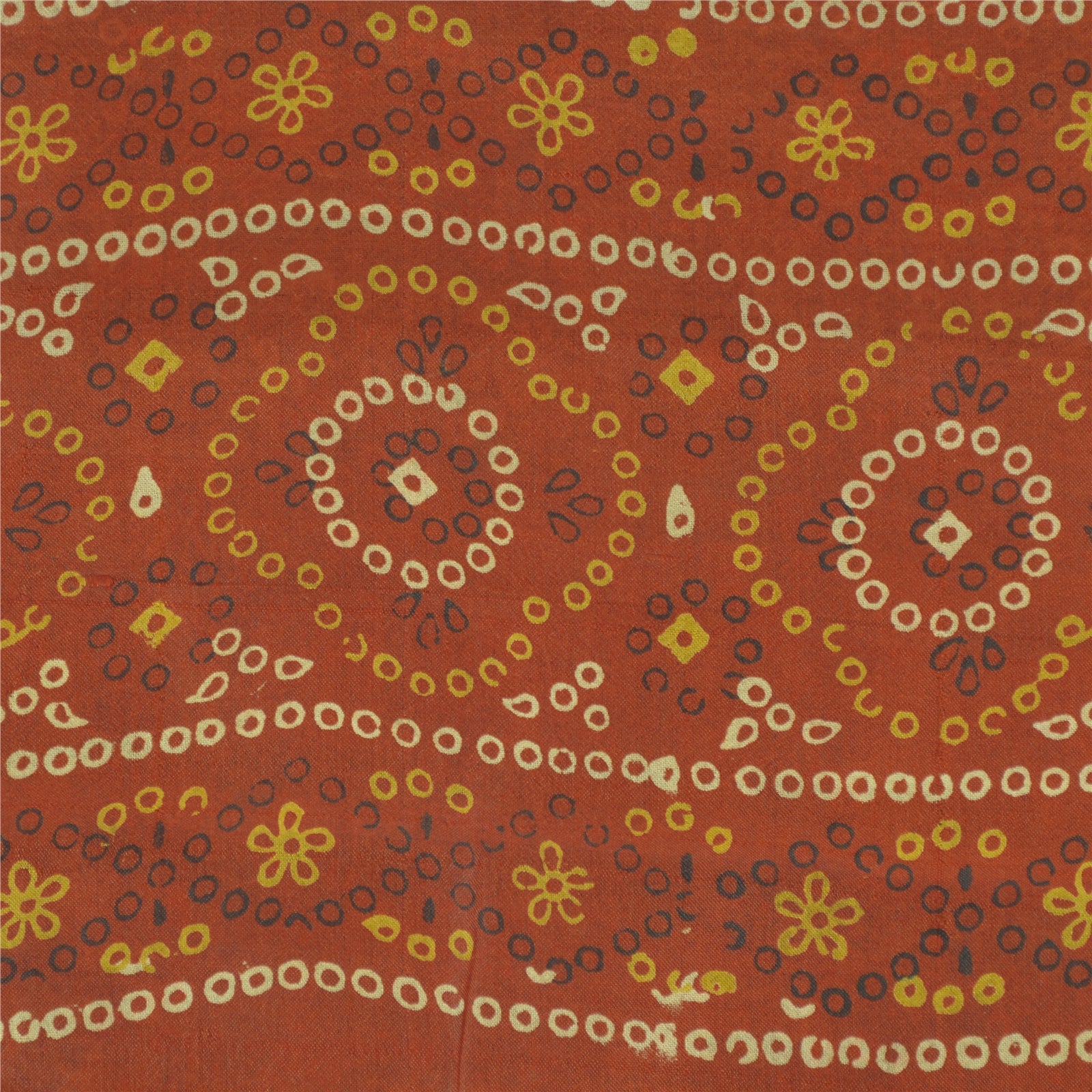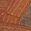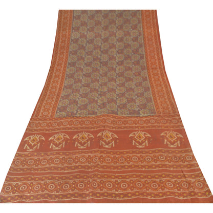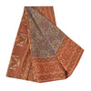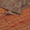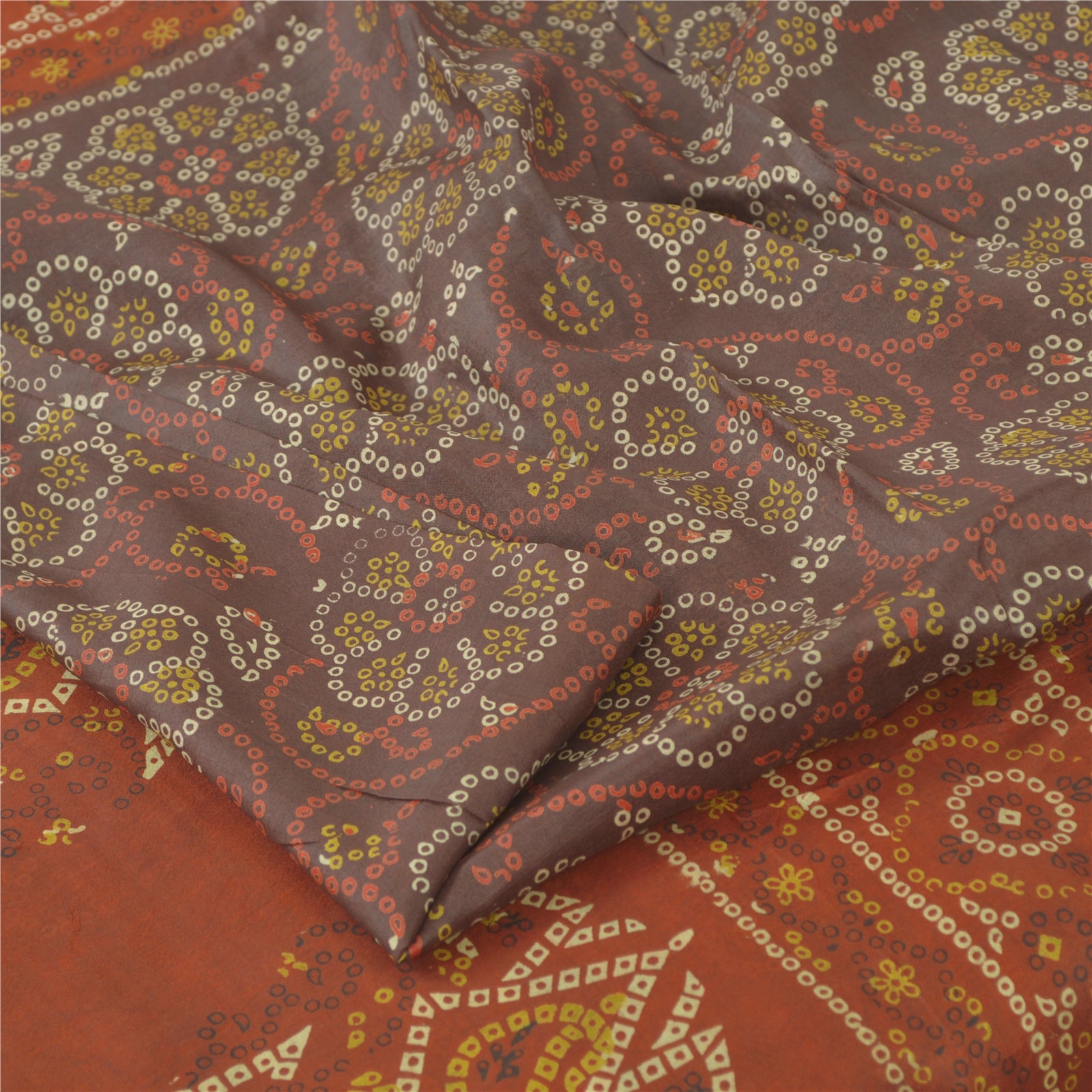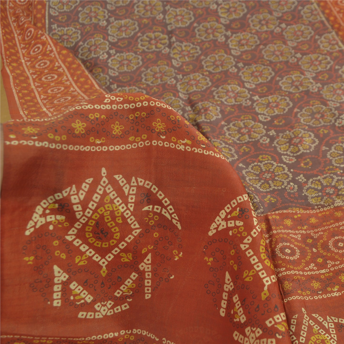 Sanskriti Vintage Sarees Gray/Orange Bandhani Pure Silk Printed Sari 5yd Sustainable Fabric