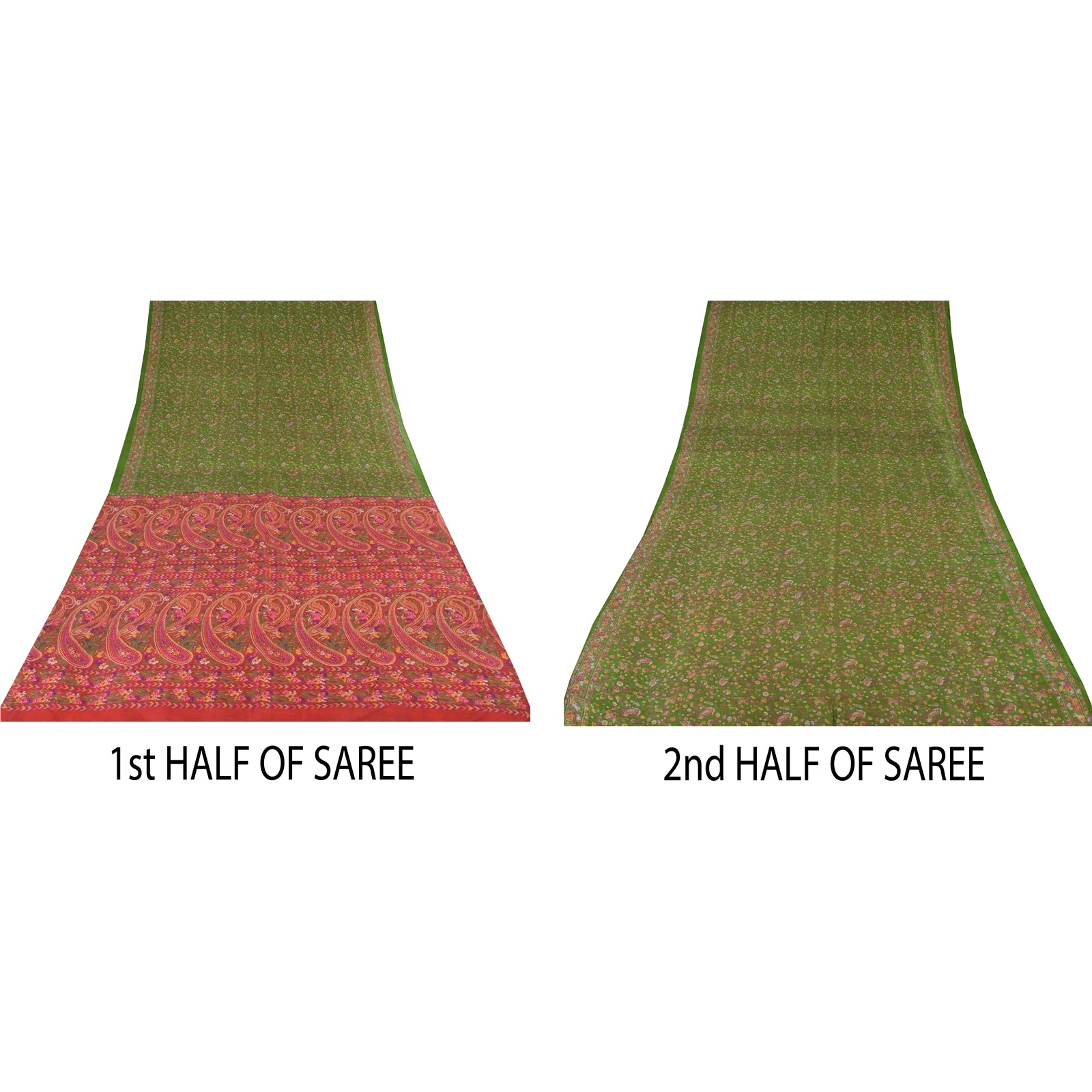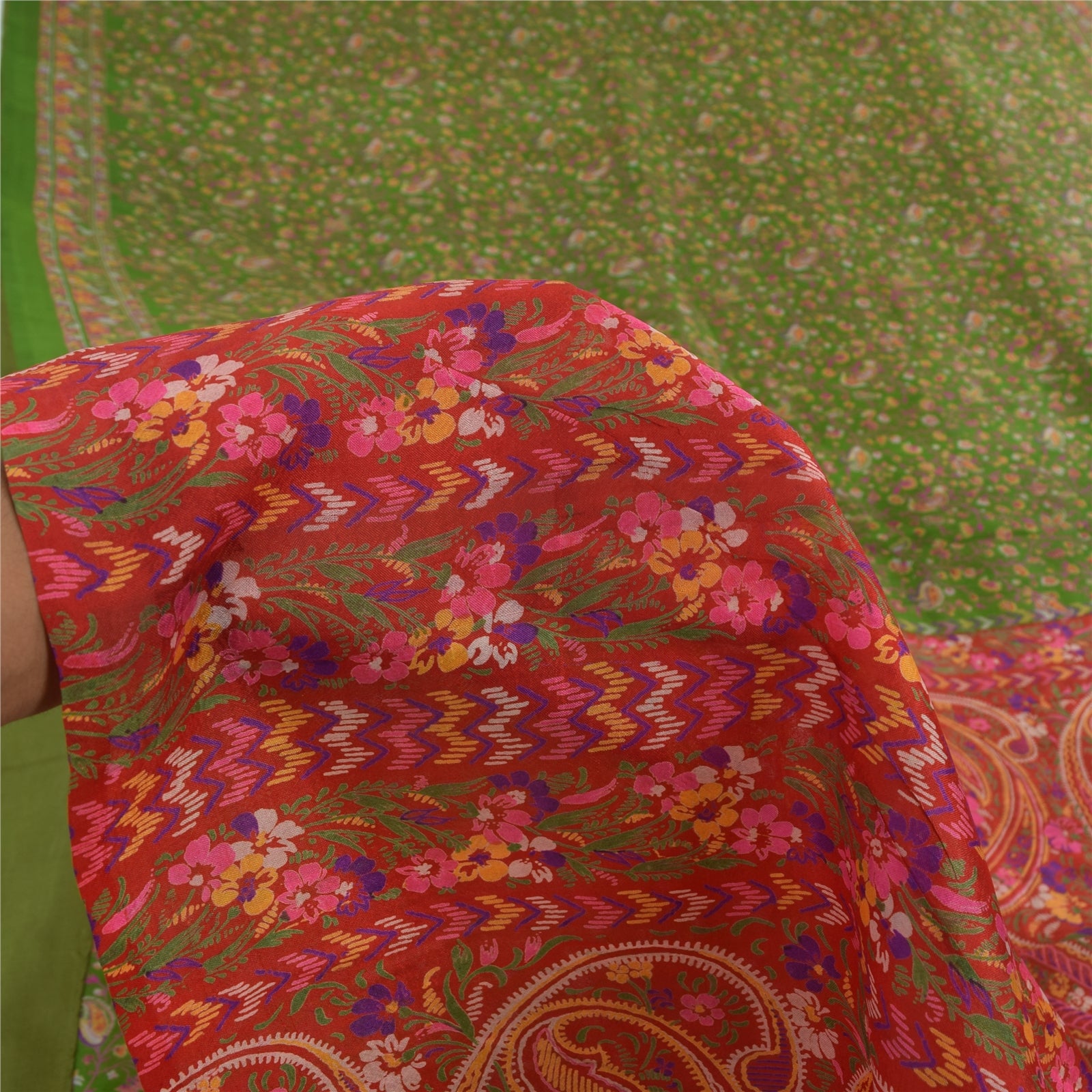 THE ITEM COLOR OR SHADE MAY BE DARKER OR LIGHTER THAN THE PICTURE.' • Beautiful green & pink colored printed pure silk saree . • Pallu & Border has printed floral & paisley design. • Similar design in center part of sari . This unique vintage saree can be used for various crafting ideas even if you don't want to use it as a sari. Design a dress, use it as a as window dressing, upholstery, sarongs, throw, dress making and table linen much more. Let your creative juices flow and use this decorated Sustainable Fabric in multiple fashion. International buyers please note: Import duties, taxes, and charges are not included in the item price or postage cost. These charges are the buyer's responsibility. Please check with your country's customs office to determine what these additional costs will be prior to bidding or buying.Buyer will pay custom duty/tax. It is calculated and charged differently by every country. As a seller I do not have any control over it. VAT or sales tax is calculated by the platform at the time of checkout. Customs charge is payable at the time of delivery.