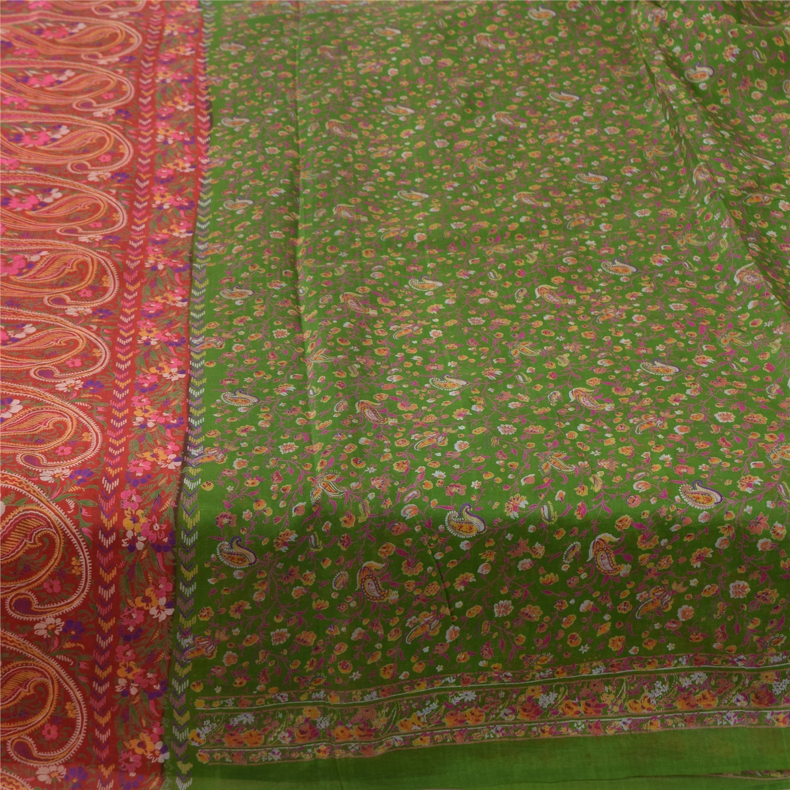 Sanskriti Vintage Sarees Green/Pink Pure Silk Printed Sari 5yd Craft Sustainable Fabric