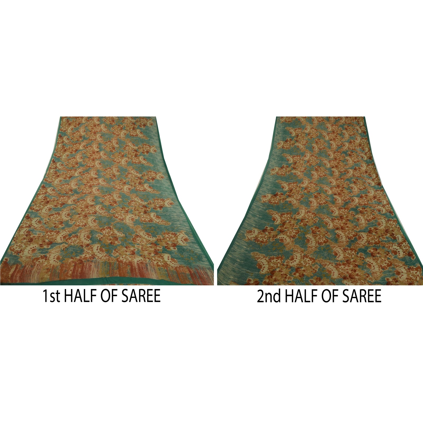 THE ITEM COLOR OR SHADE MAY BE DARKER OR LIGHTER THAN THE PICTURE.' Beautiful green colored pure georgette silk printed saree. Pallu & border has printed floral design. Printed floral design in center part of saree. Saree has mild stain on it. What is special about this saree? Brilliant design on soft Sustainable Fabric is really enhancing the beauty of the saree. This unique vintage saree can be used for various crafting ideas even if you don't want to use it as a sari. Design a dress, use it as a as window dressing, upholstery, sarongs, throw, dress making and table linen much more. Let your creative juices flow and use this decorated Sustainable Fabric in multiple fashion. International buyers please note: Import duties, taxes, and charges are not included in the item price or postage cost. These charges are the buyer's responsibility. Please check with your country's customs office to determine what these additional costs will be prior to bidding or buying.Buyer will pay custom duty/tax. It is calculated and charged differently by every country. As a seller I do not have any control over it. VAT or sales tax is calculated by the platform at the time of checkout. Customs charge is payable at the time of delivery.
