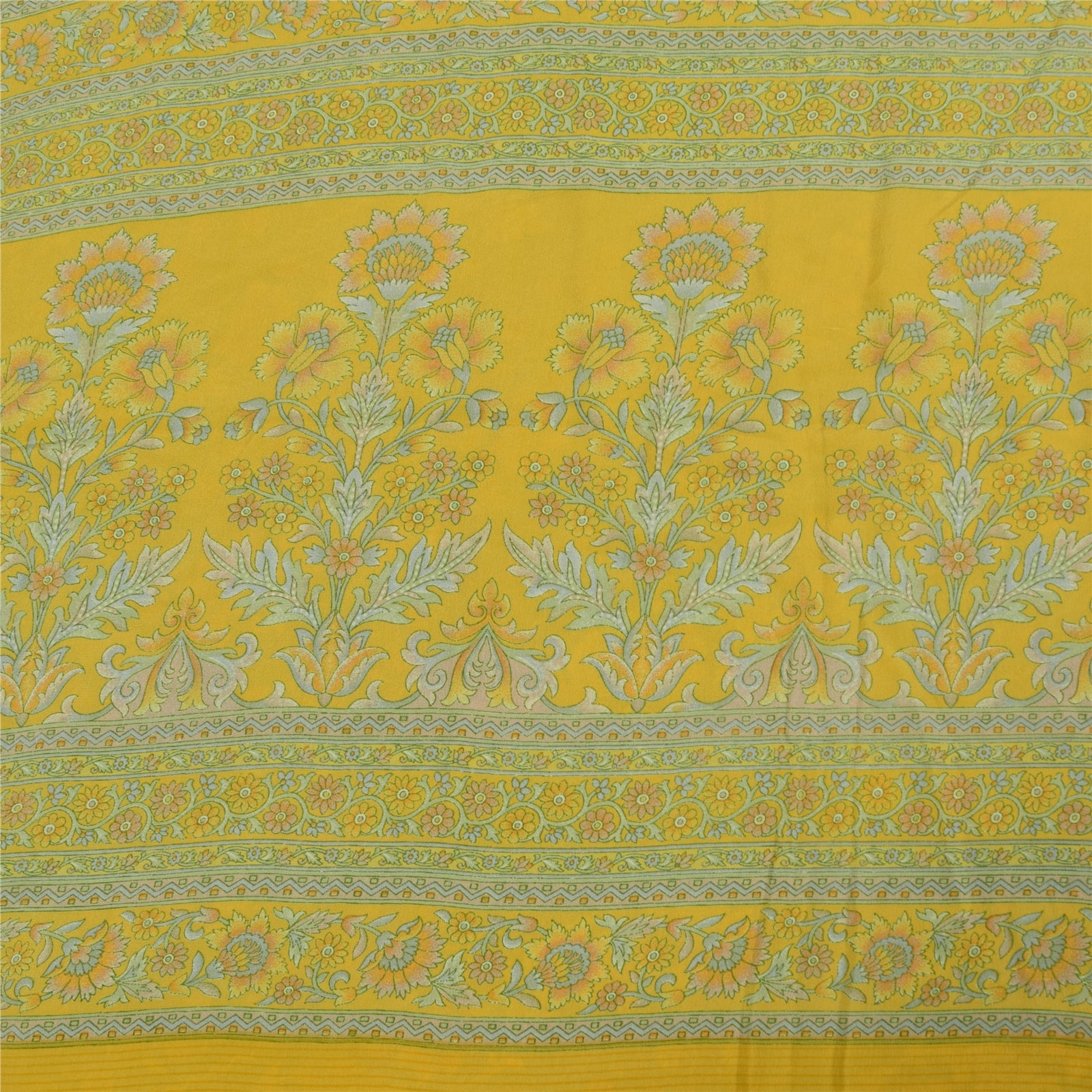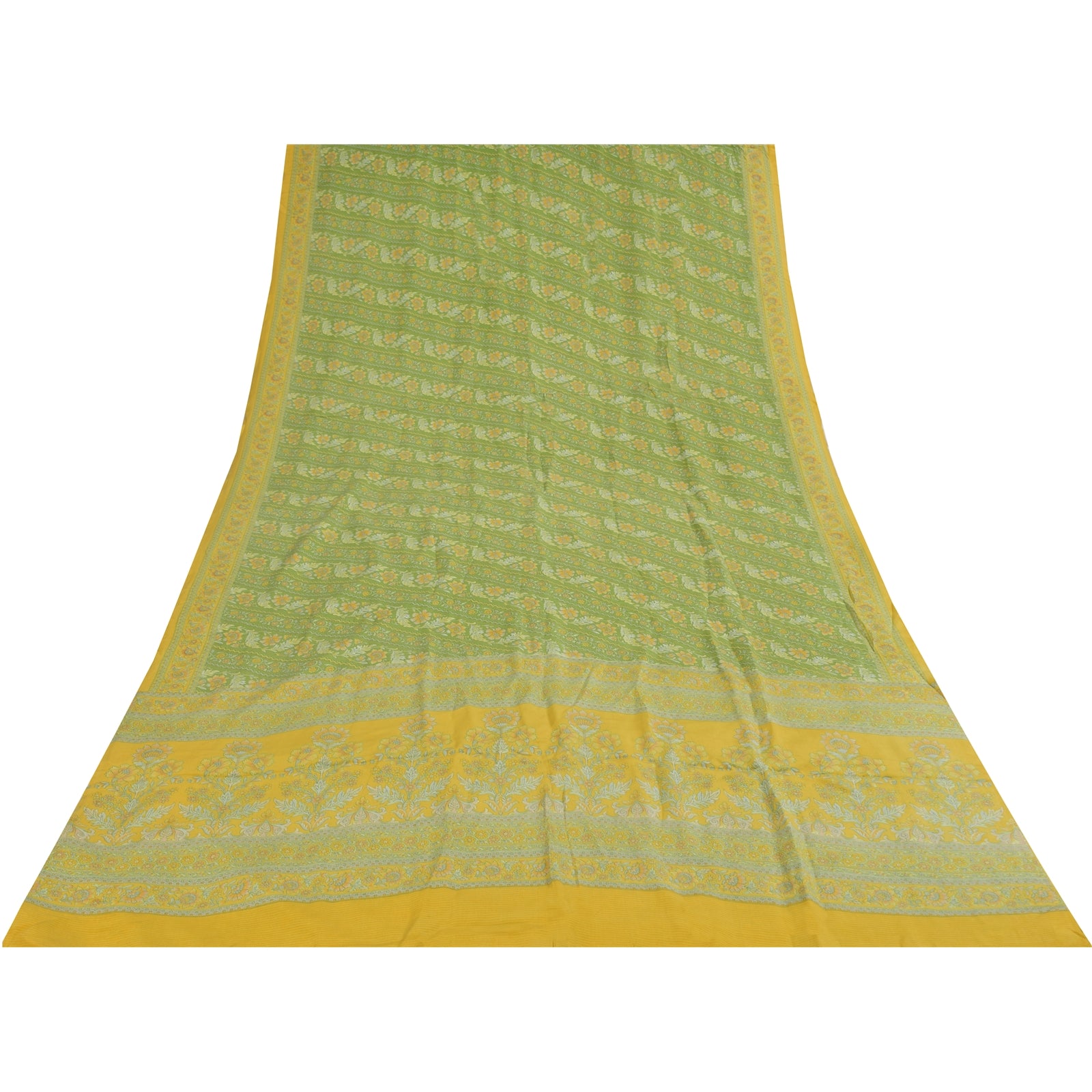 Sanskriti Vintage Sarees Green Pure Crepe Silk Printed Sari 6yd Craft Sustainable Fabric