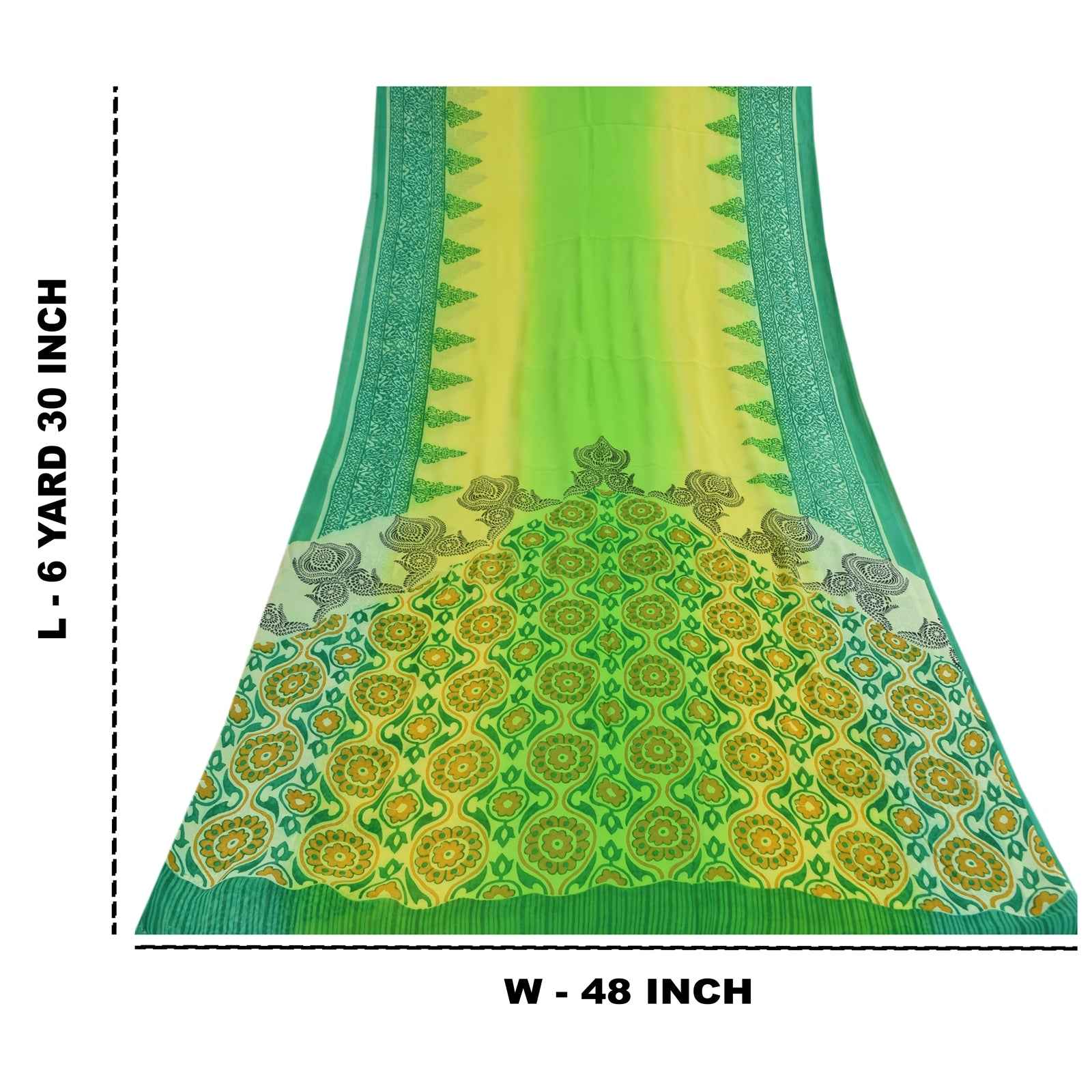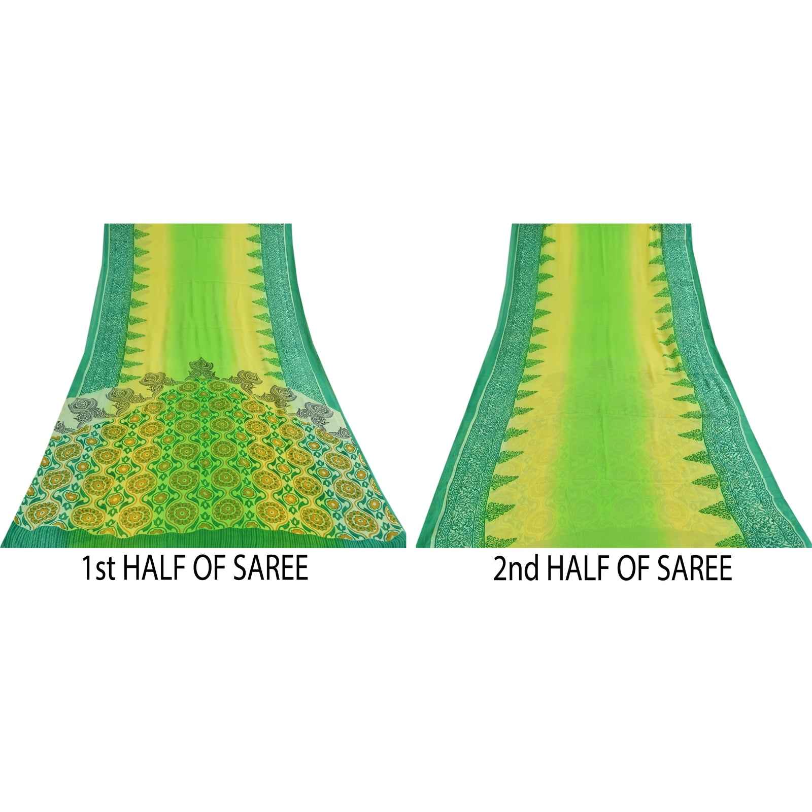 THE ITEM COLOR OR SHADE MAY BE DARKER OR LIGHTER THAN THE PICTURE.' Beautiful green colored pure georgette silk printed saree. Pallu & Border has printed floral design. Solid color in center part of saree. What is special about this saree? Brilliant design on soft Sustainable Fabric is really enhancing the beauty of the saree. This unique vintage saree can be used for various crafting ideas even if you don't want to use it as a sari. Design a dress, use it as a as window dressing, upholstery, sarongs, throw, dress making and table linen much more. Let your creative juices flow and use this decorated Sustainable Fabric in multiple fashion. International buyers please note: Import duties, taxes, and charges are not included in the item price or postage cost. These charges are the buyer's responsibility. Please check with your country's customs office to determine what these additional costs will be prior to bidding or buying.Buyer will pay custom duty/tax. It is calculated and charged differently by every country. As a seller I do not have any control over it. VAT or sales tax is calculated by the platform at the time of checkout. Customs charge is payable at the time of delivery. PRG-14592