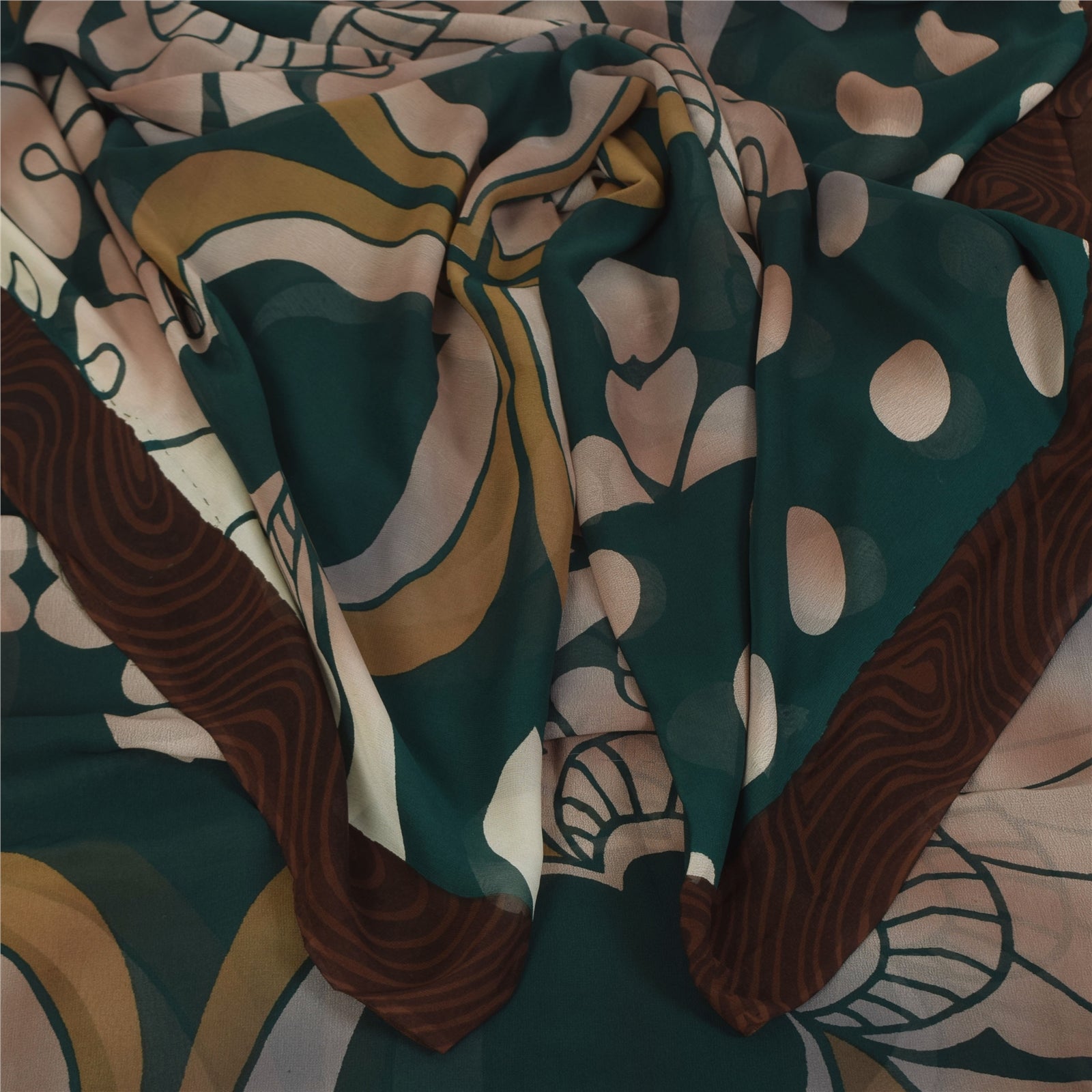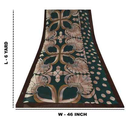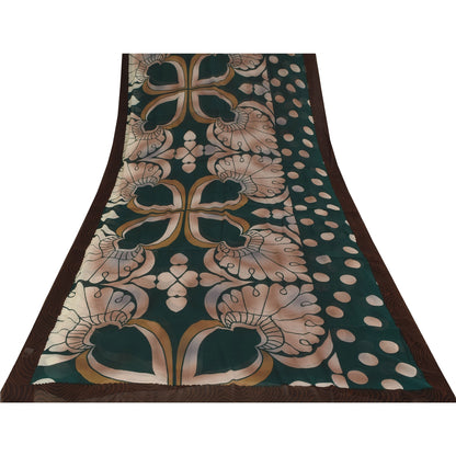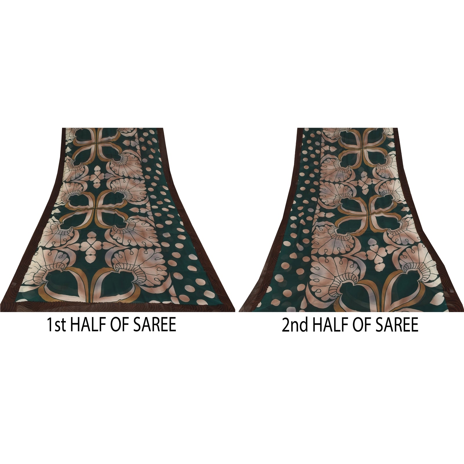 Sanskriti Vintage Sarees Green Pure Georgette Silk Print Sari 6yd Craft Sustainable Fabric