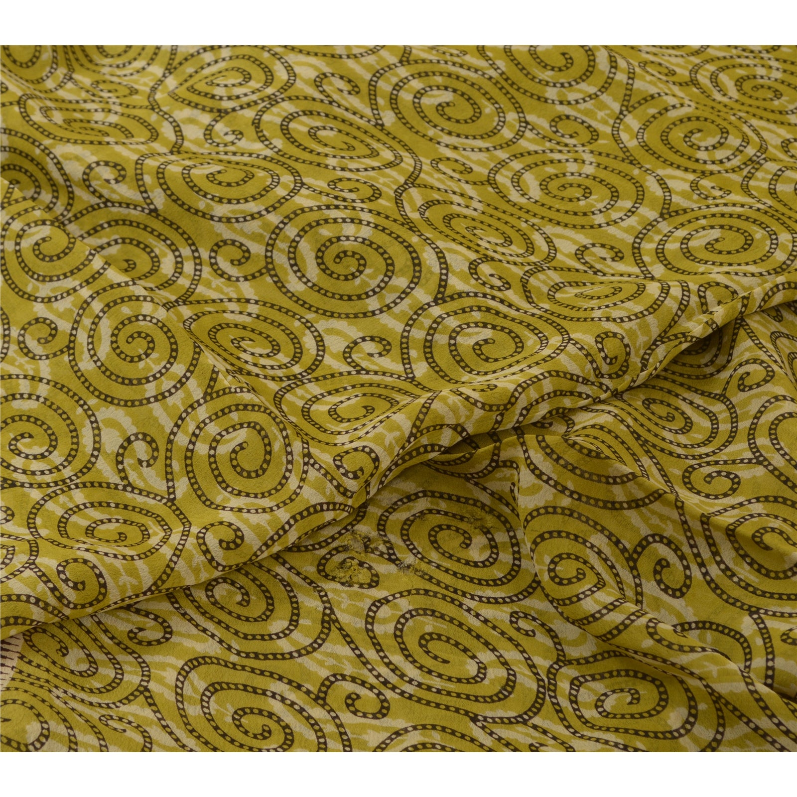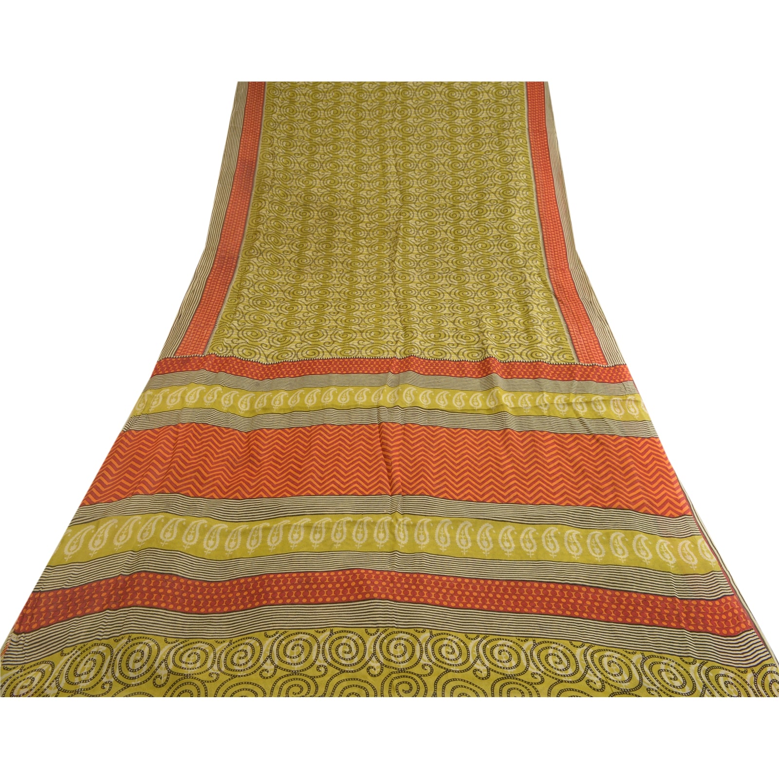 Sanskriti Vintage Sarees Green Pure Georgette Silk Printed Sari 5yd Craft Sustainable Fabric