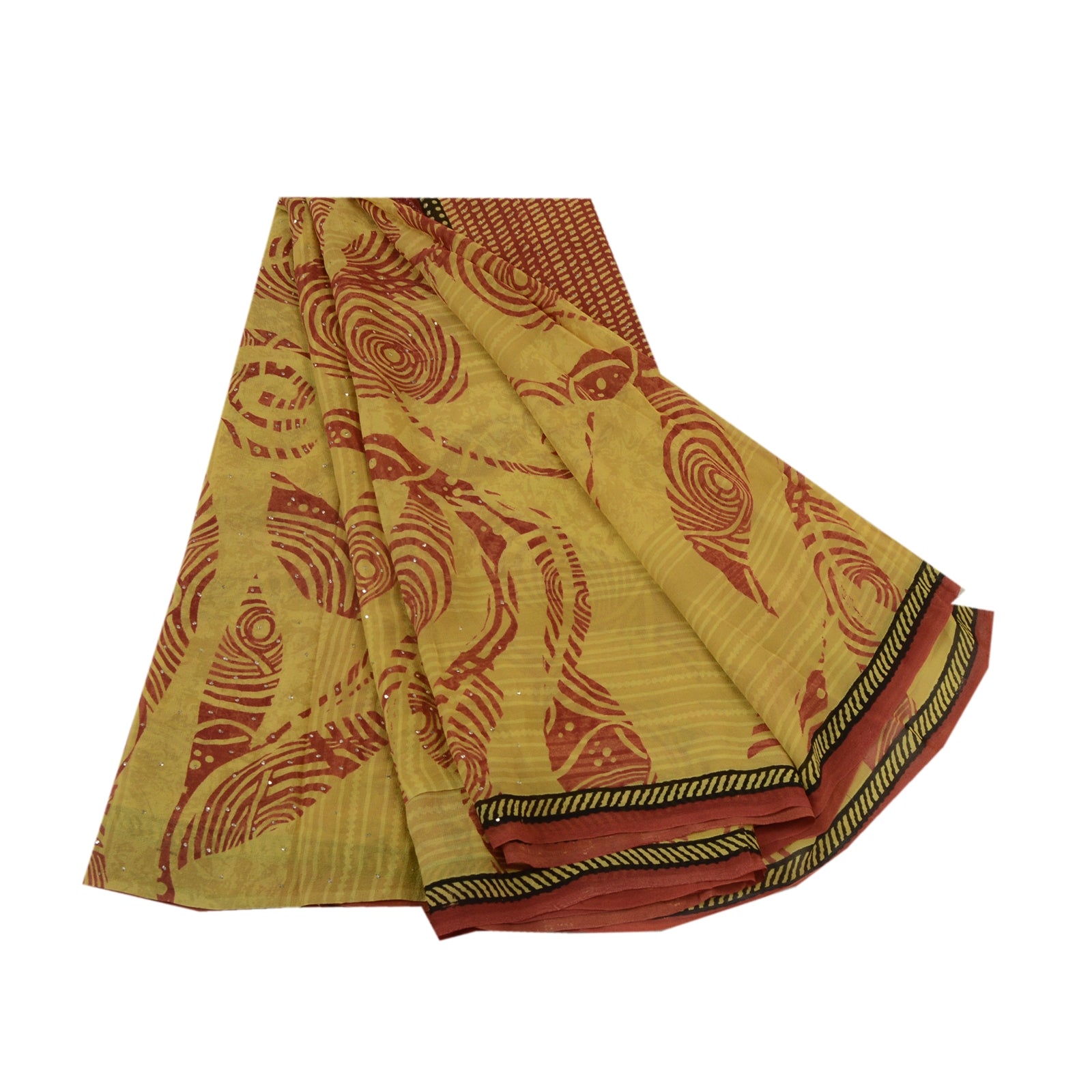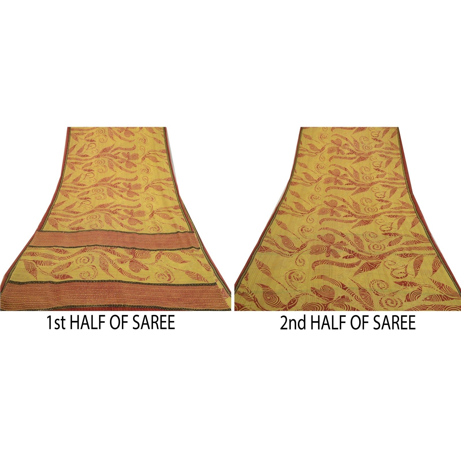 Sanskriti Vintage Sarees Green-Red Mukesh Pure Georgette Silk Print Sari Sustainable Fabric