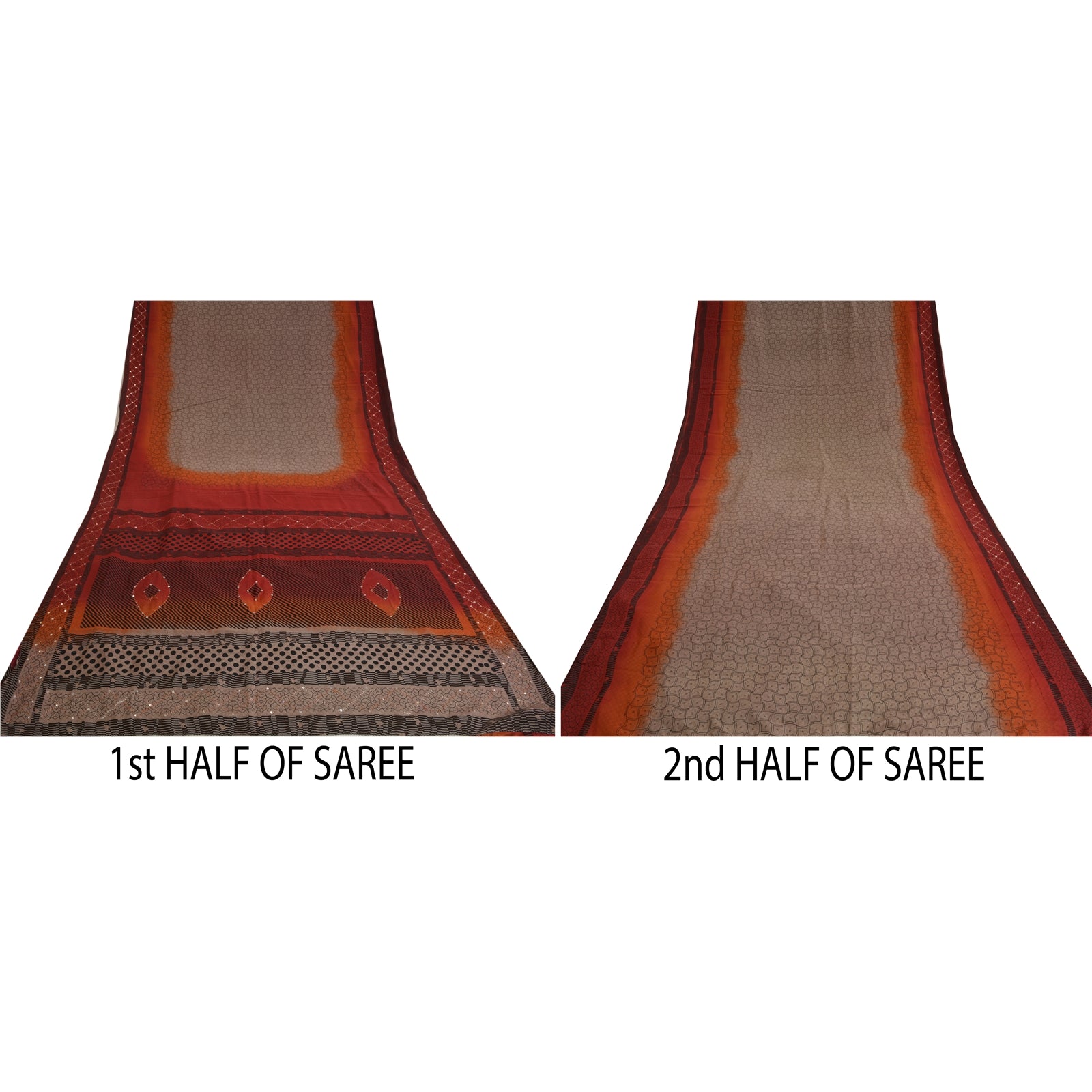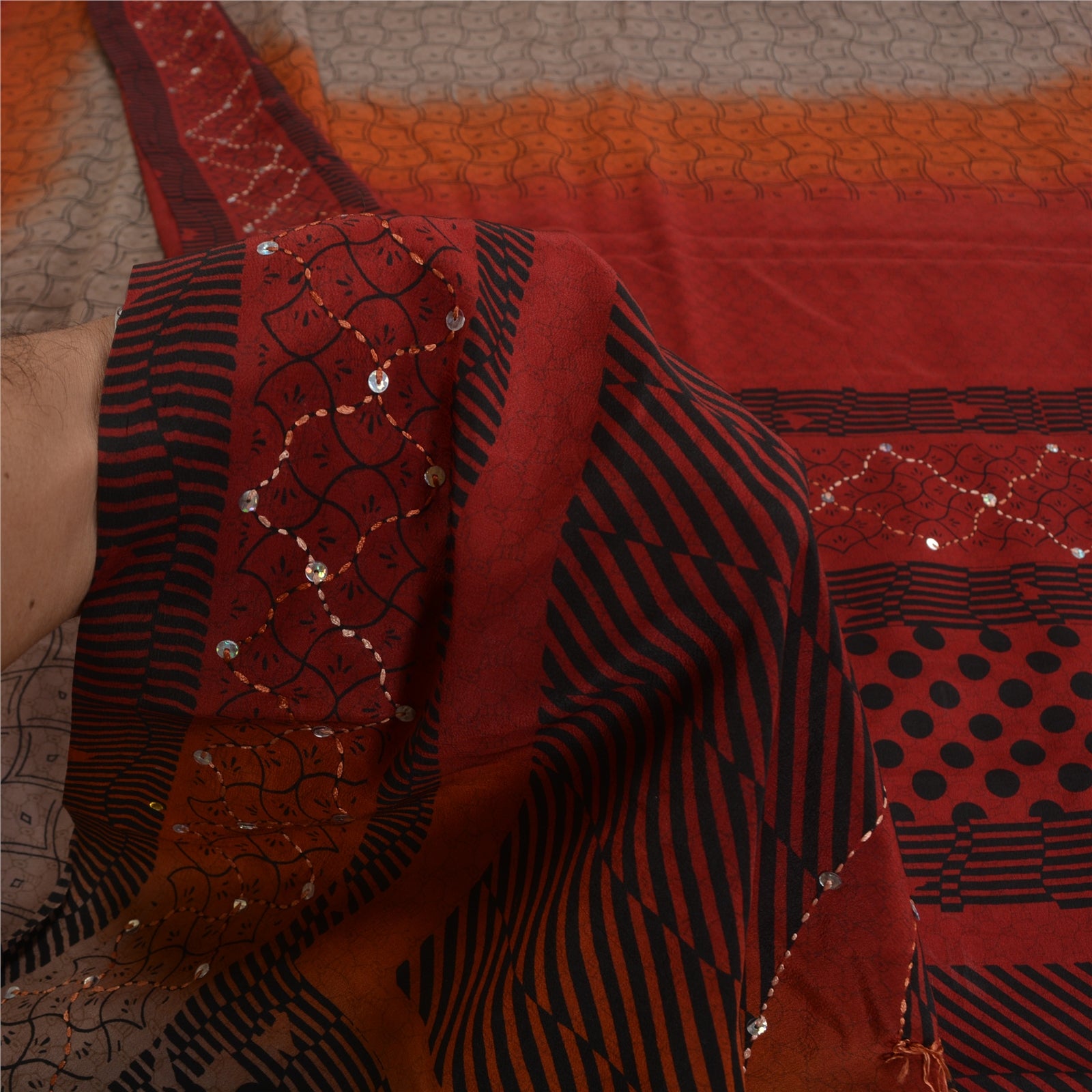 Sanskriti Vintage Sarees Hand Beaded Kantha Pure Crepe Silk Printed Sari Sustainable Fabric