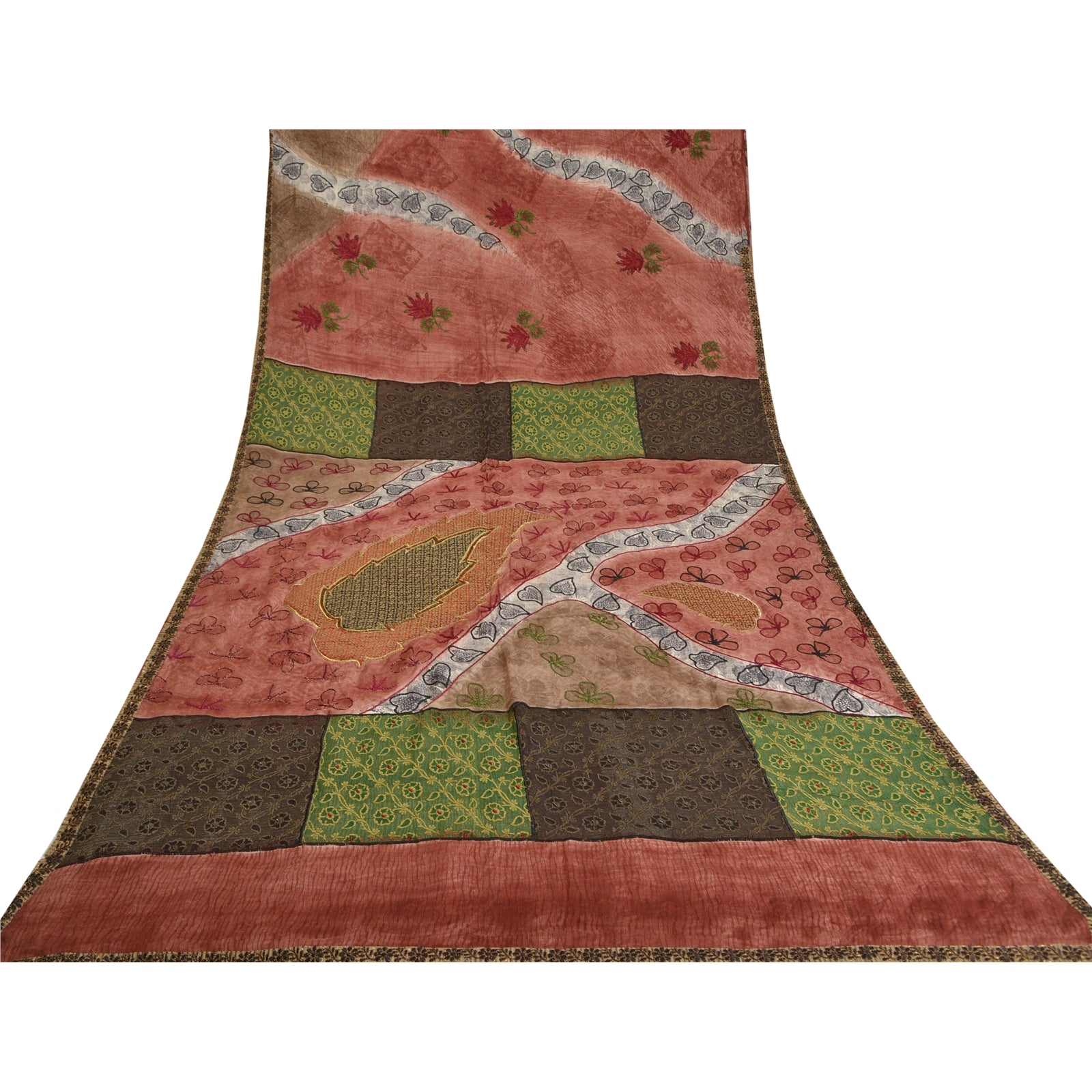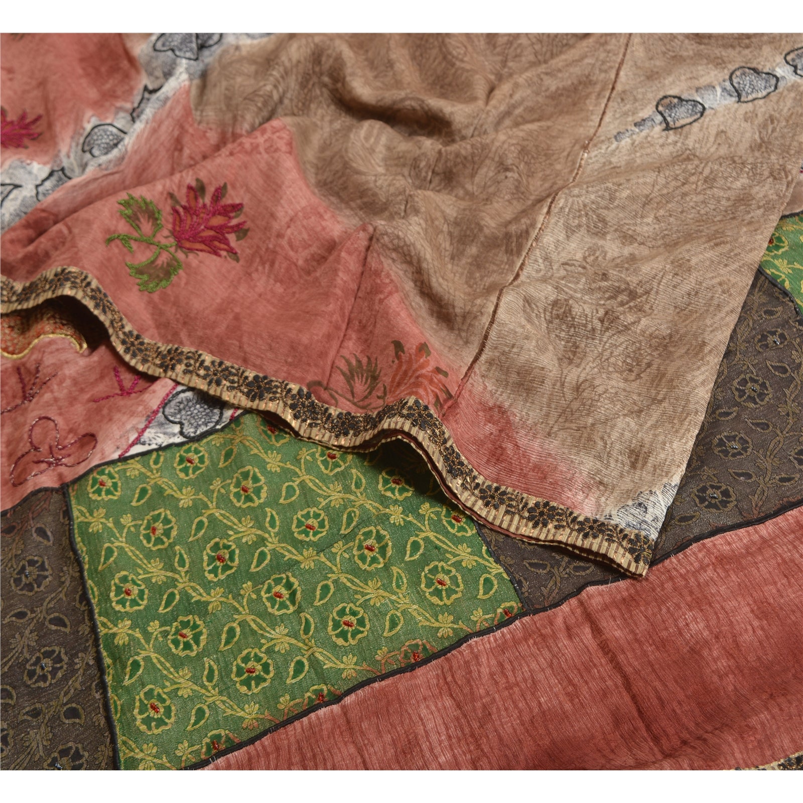 Sanskriti Vintage Sarees Hand Beaded Printed Woven Pure Crepe Sari Craft Sustainable Fabric