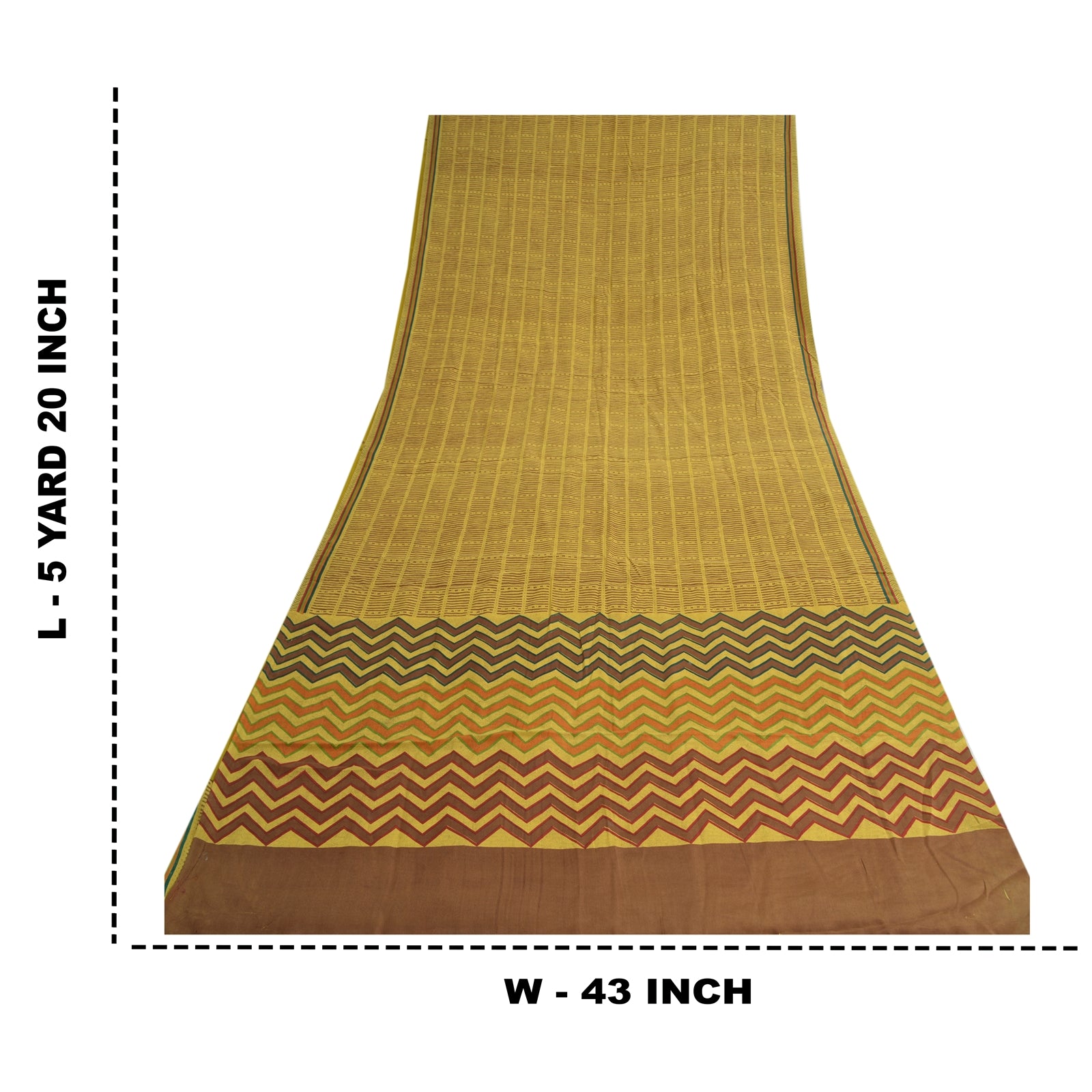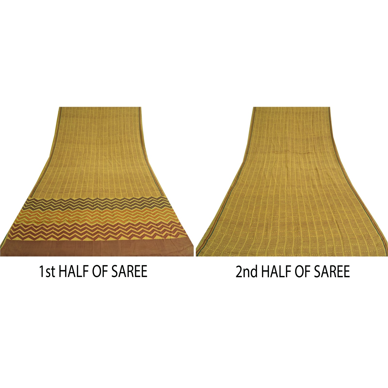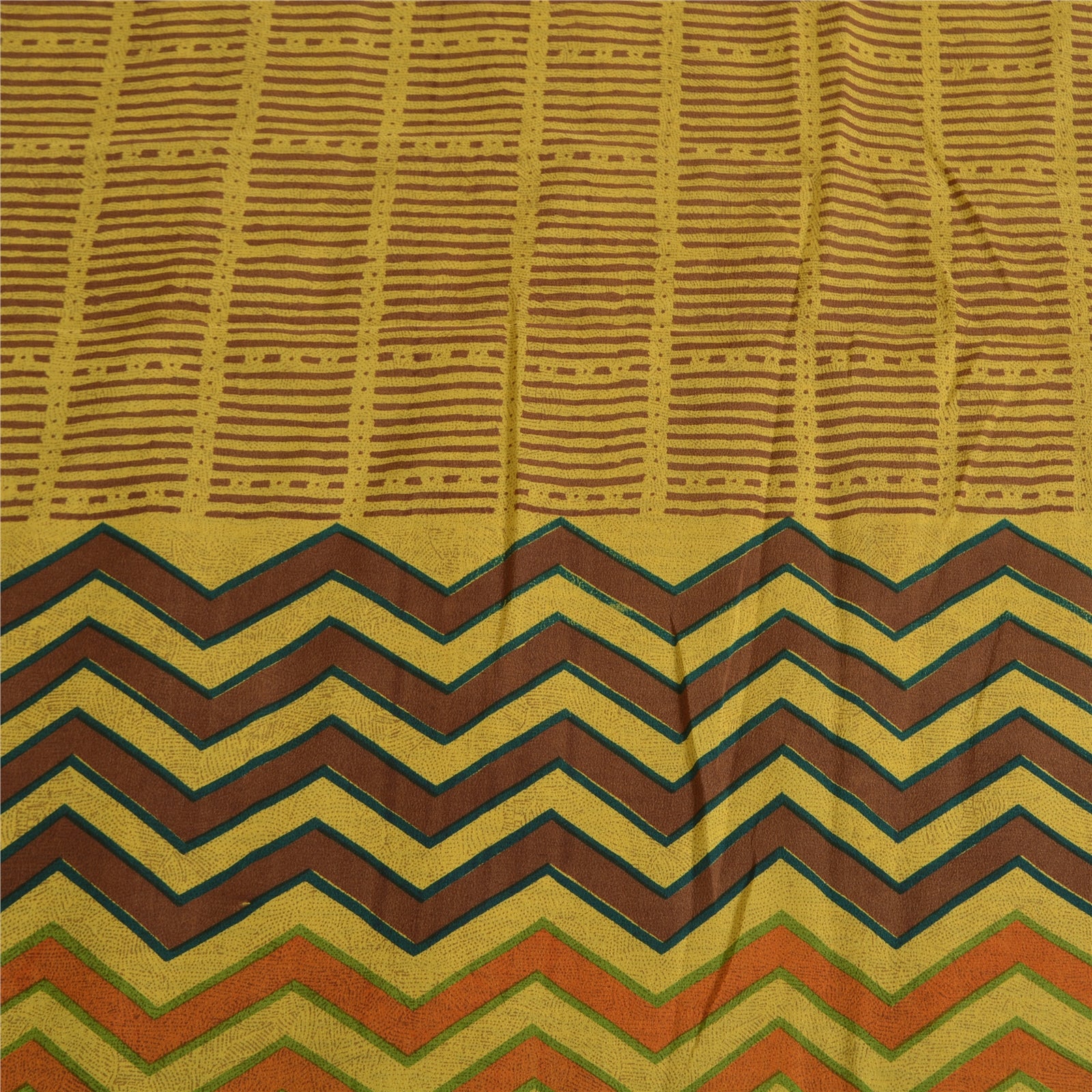 Sanskriti Vintage Sarees Heena-Green Pure Crepe Silk Print Sari 5yd Craft Sustainable Fabric