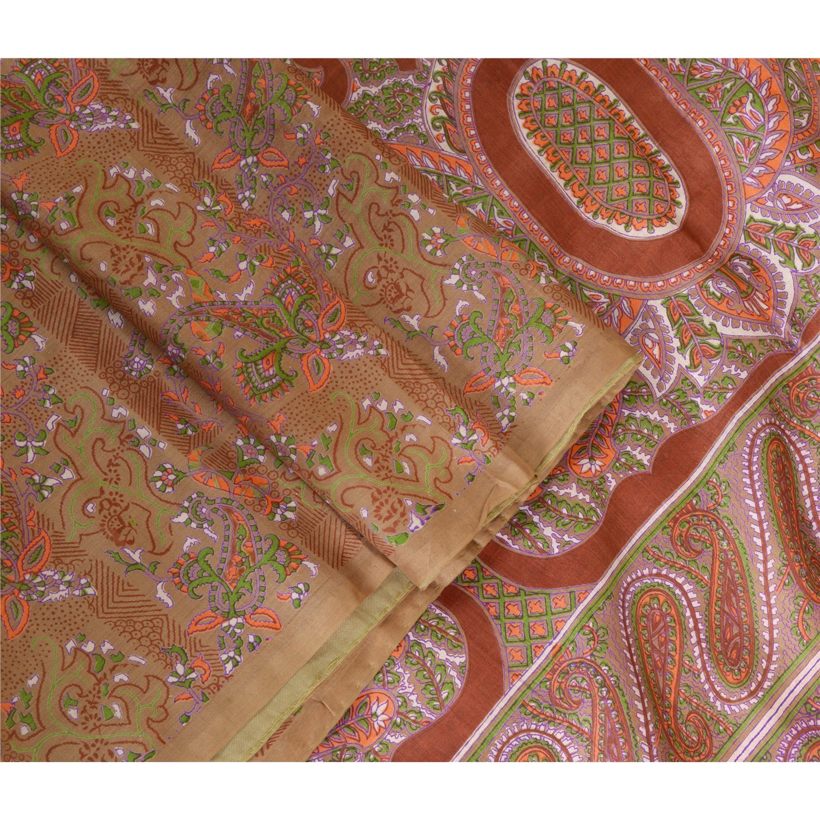 Sanskriti Vintage Sarees Heena-Green Pure Silk Printed Sari Floral Craft Sustainable Fabric