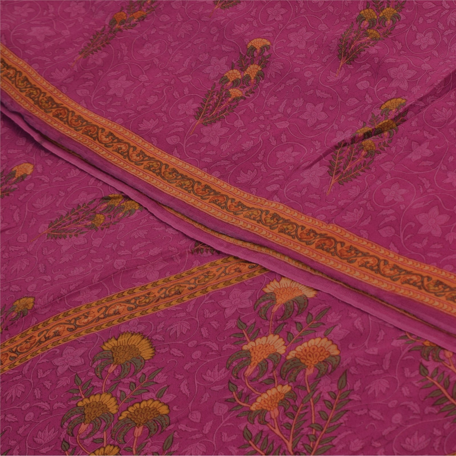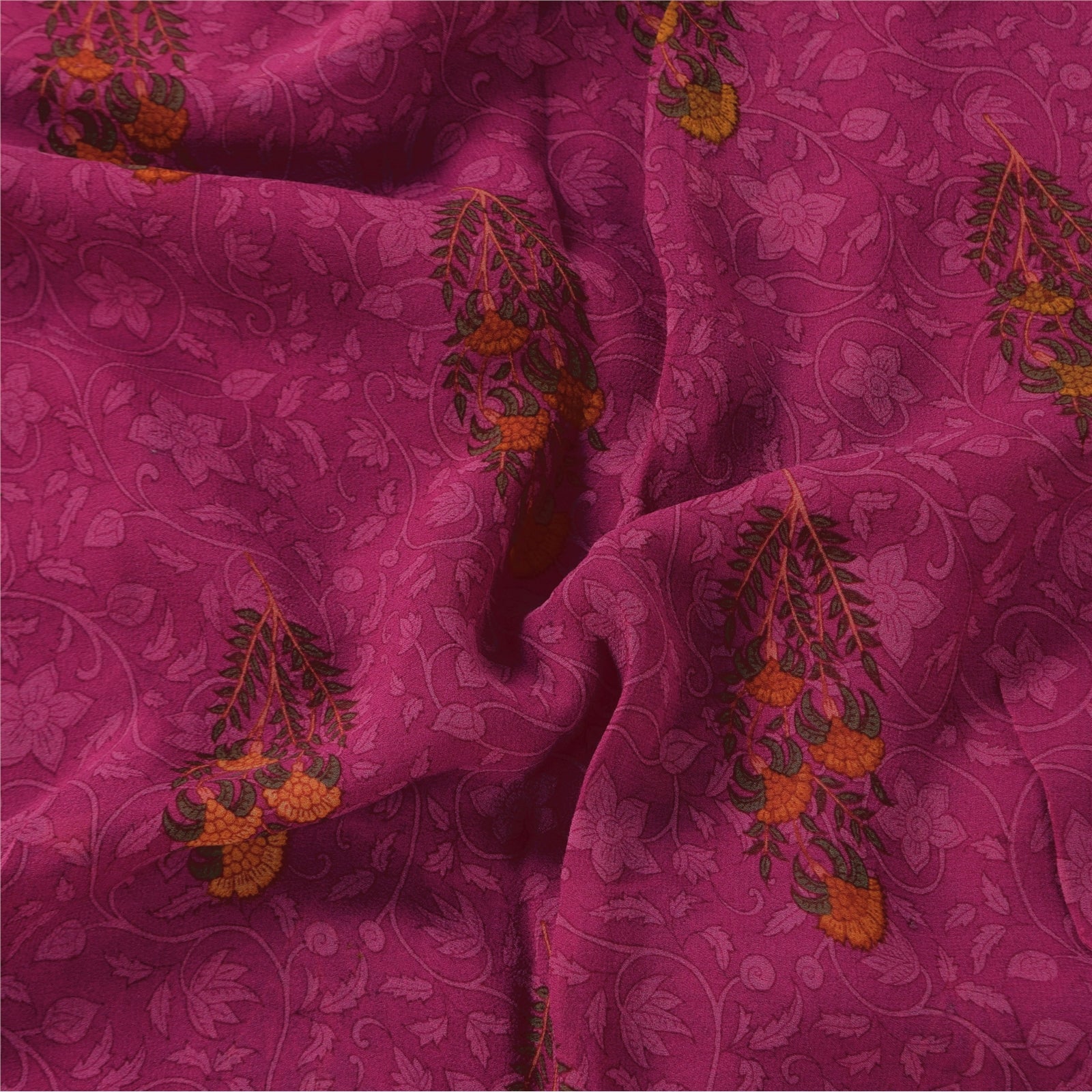 Sanskriti Vintage Sarees Hot Pink Pure Georgette Printed Sari 6yd Craft Sustainable Fabric