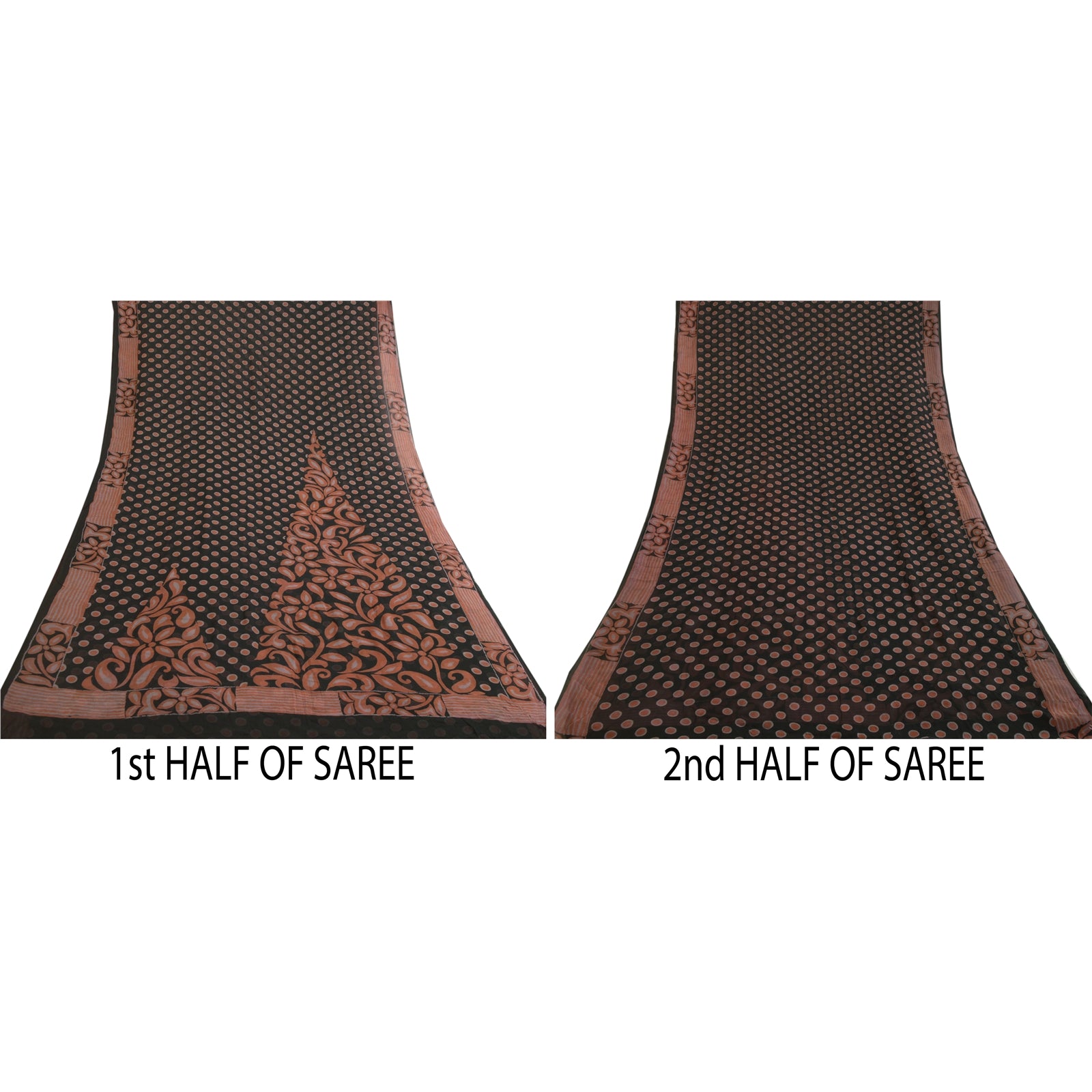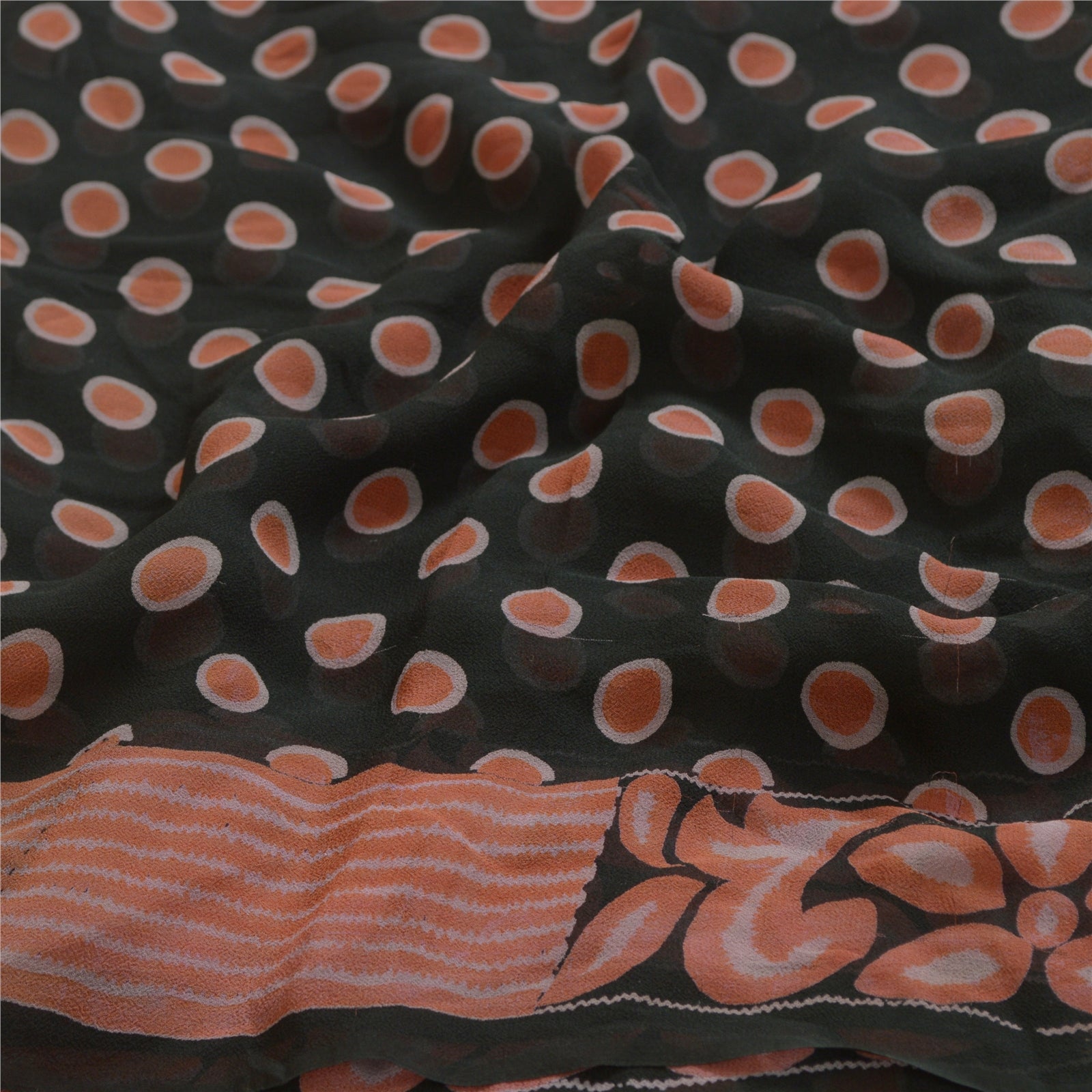 Sanskriti Vintage Sarees Indian Black Blend Georgette Printed Sari Craft Sustainable Fabric