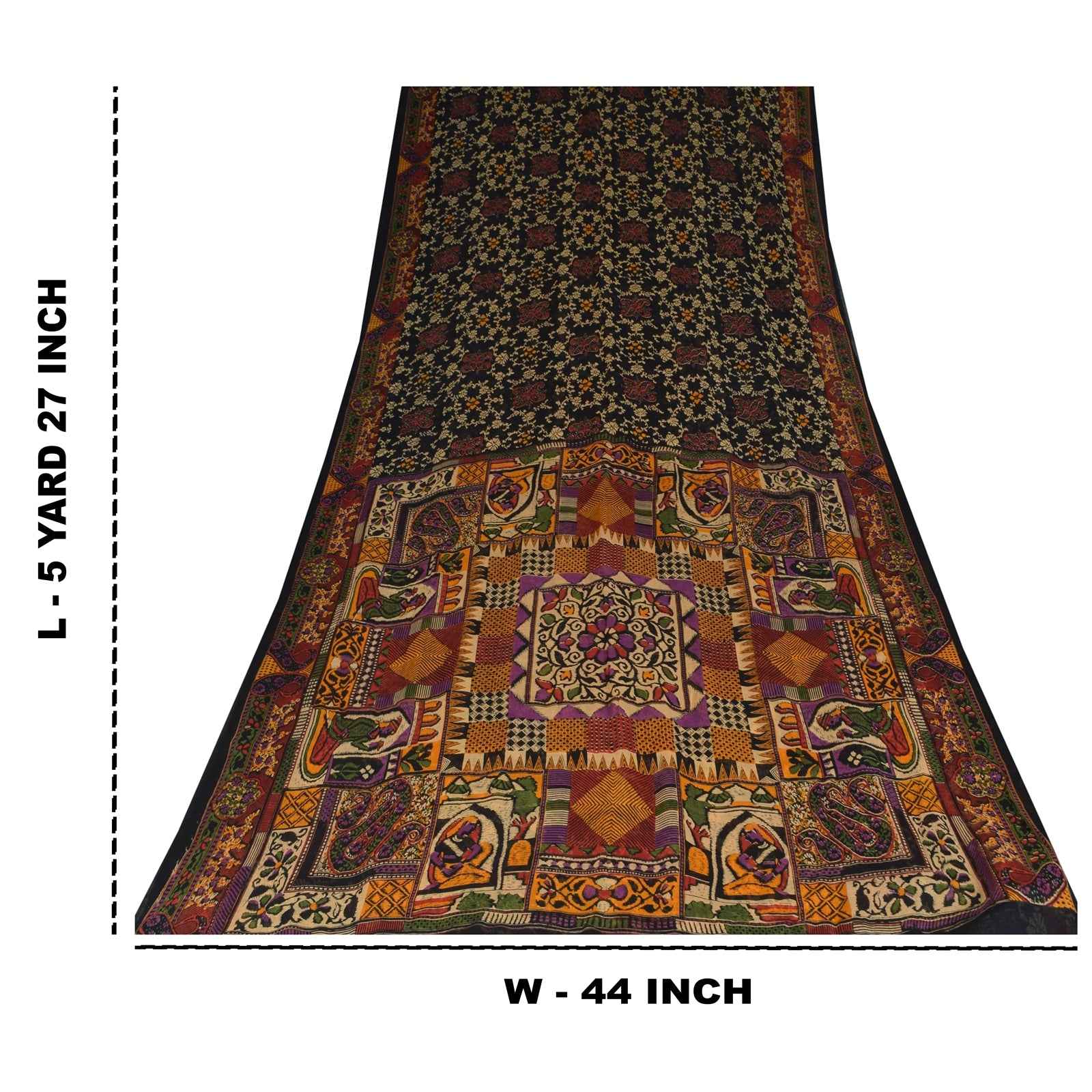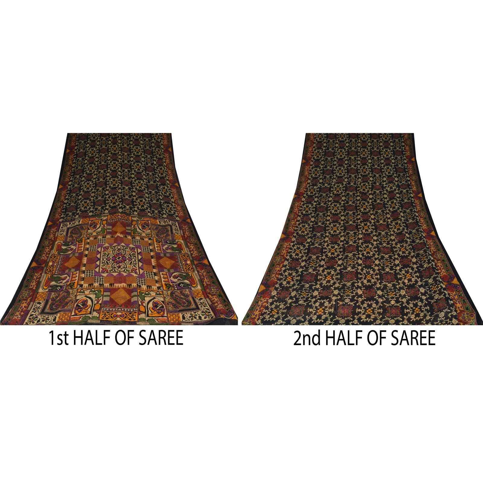 THE ITEM COLOR OR SHADE MAY BE DARKER OR LIGHTER THAN THE PICTURE. Attractive black colored pure cotton printed sari. Pallu & Border has printed floral, paisley & human design. Similar design in center part of saree.. This unique vintage saree can be used for various crafting ideas even if you don't want to use it as a sari. Design a dress, use it as a as window dressing, upholstery, sarongs, throw, dress making and table linen much more. Let your creative juices flow and use this decorated Sustainable Fabric in multiple fashion. Shipping Note: 'International buyers please note: Import duties, taxes, and charges are not included in the item price or postage cost. These charges are the buyer's responsibility. Please check with your country's customs office to determine what these additional costs will be prior to bidding or buying. Buyer will pay custom duty/tax. It is calculated and charged differently by every country. As a seller I do not have any control over it. VAT or sales tax is calculated by the platform at the time of checkout. Customs charge is payable at the time of delivery.' PCS-6802