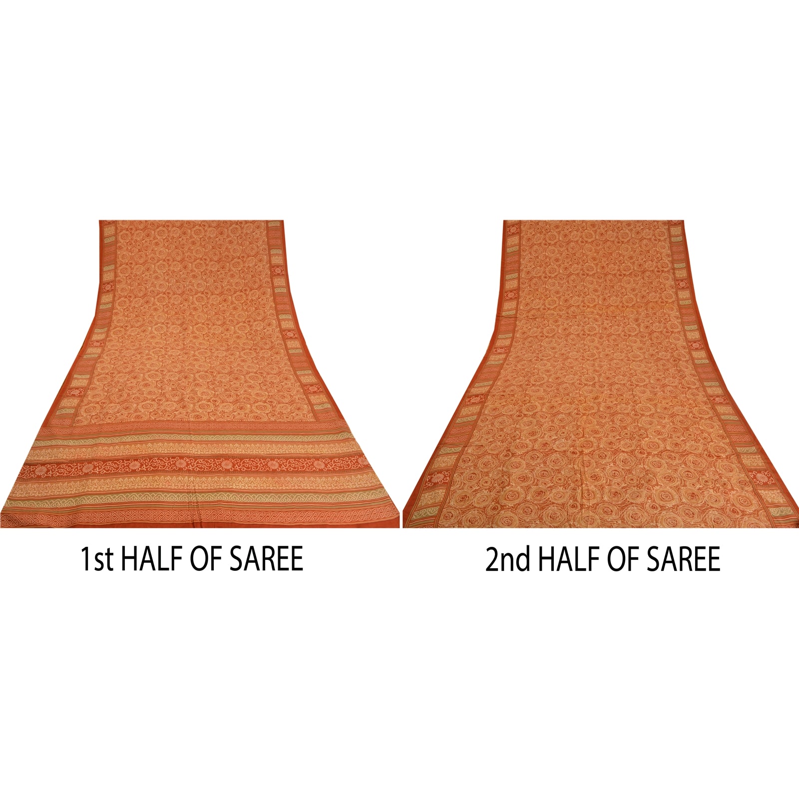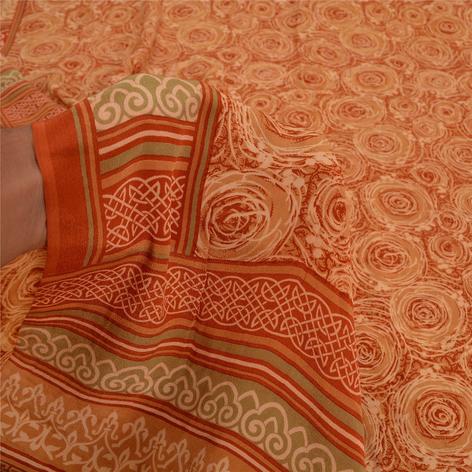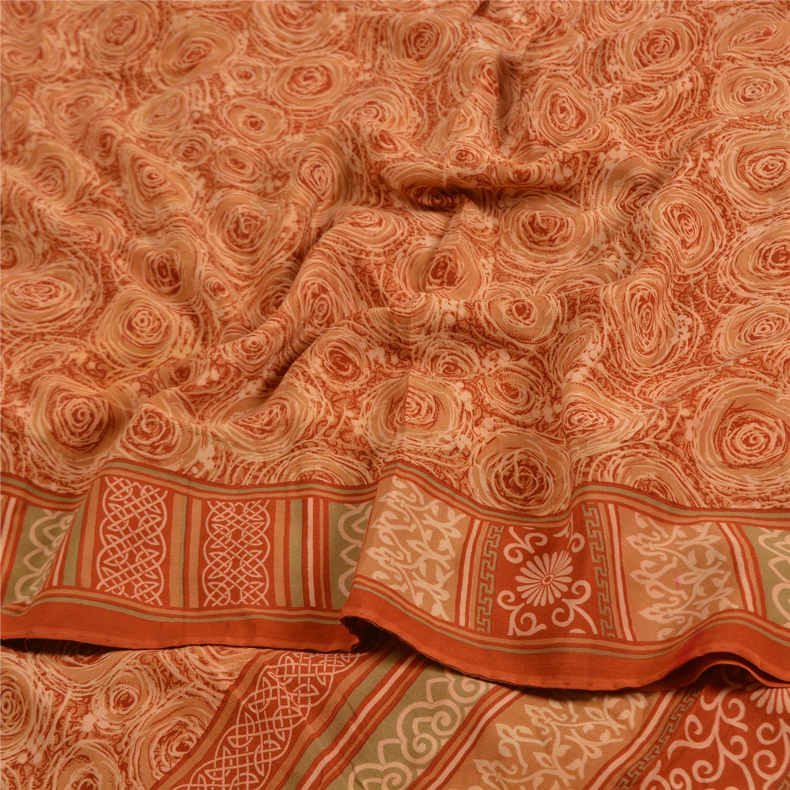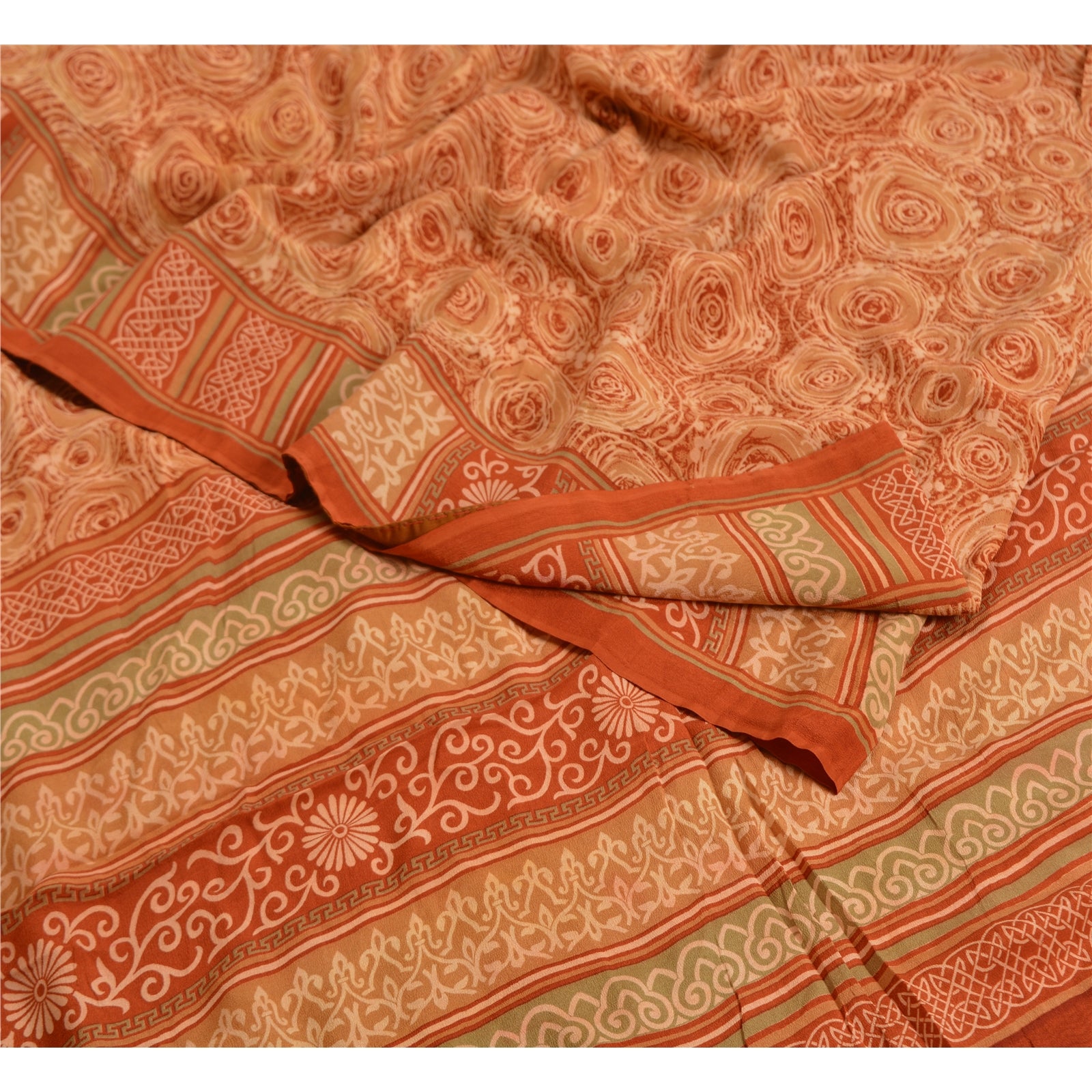 Sanskriti Vintage Sarees Indian Brown Pure Crepe Silk Printed Sari Craft Sustainable Fabric