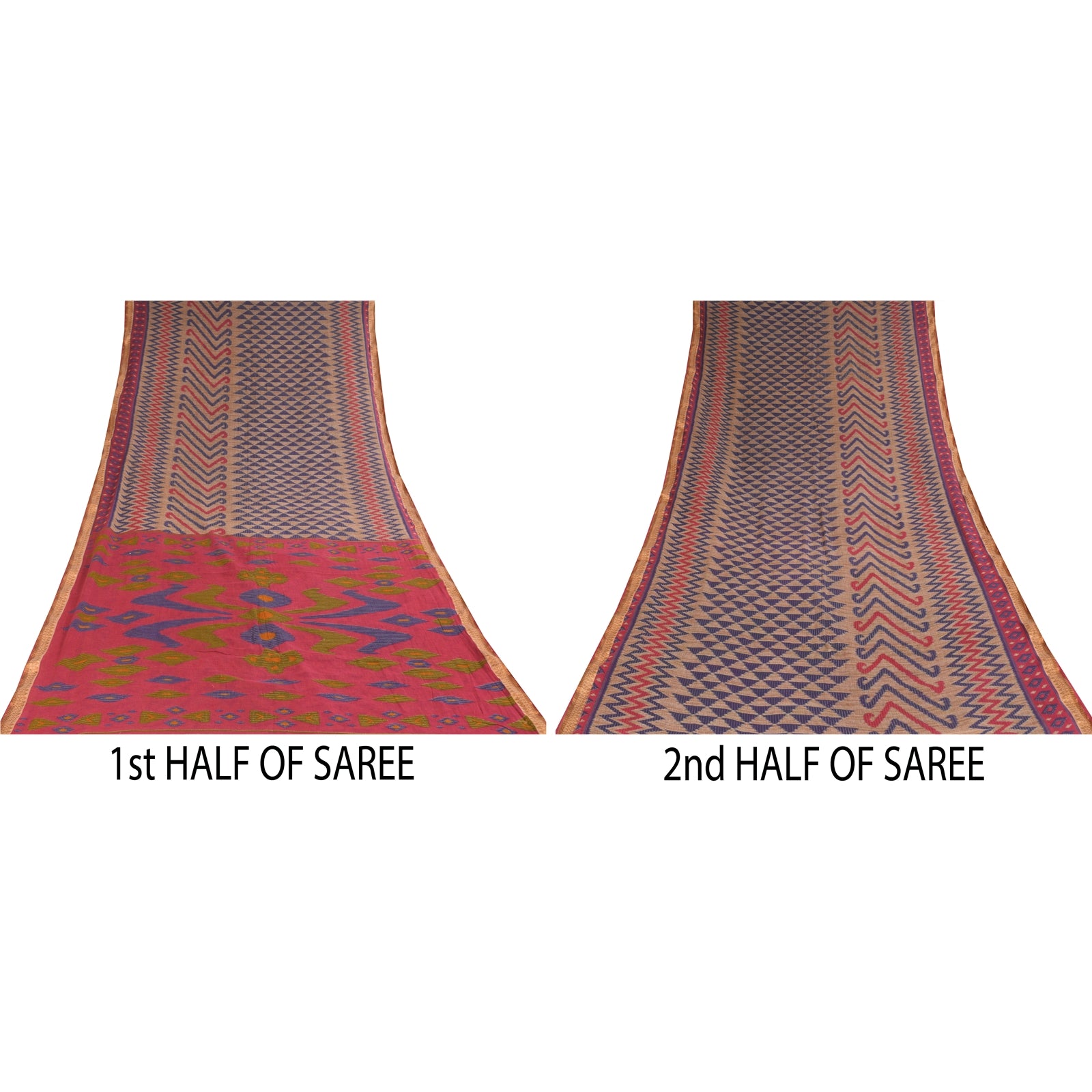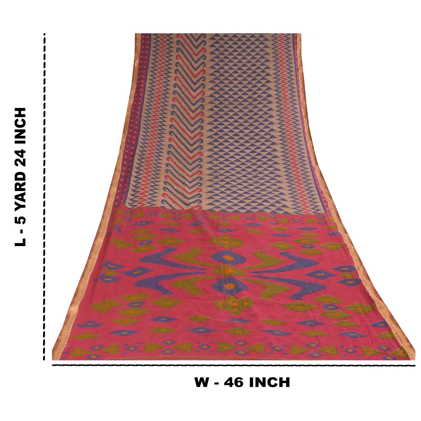 Sanskriti Vintage Sarees Indian Cream Pure Cotton Printed Sari 5+yd Craft Fabric