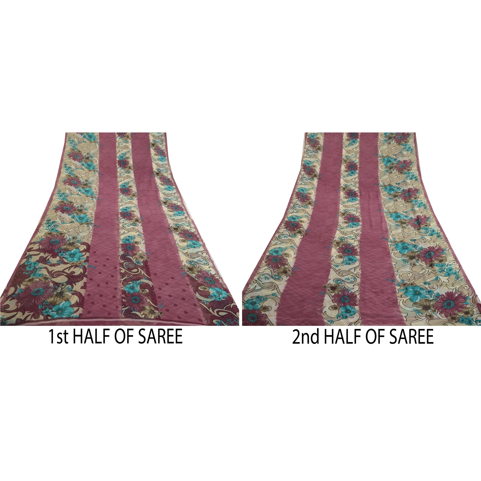 THE ITEM COLOR OR SHADE MAY BE DARKER OR LIGHTER THAN THE PICTURE.' Beautiful cream & purple colored poly georgette printed saree. Pallu & Border has printed floral design. Similar design in center part of saree. Saree has mild stain on it. What is special about this saree? Brilliant design on soft Sustainable Fabric is really enhancing the beauty of the saree. This unique vintage saree can be used for various crafting ideas even if you don't want to use it as a sari. Design a dress, use it as a as window dressing, upholstery, sarongs, throw, dress making and table linen much more. Let your creative juices flow and use this decorated Sustainable Fabric in multiple fashion. International buyers please note: Import duties, taxes, and charges are not included in the item price or postage cost. These charges are the buyer's responsibility. Please check with your country's customs office to determine what these additional costs will be prior to bidding or buying.Buyer will pay custom duty/tax. It is calculated and charged differently by every country. As a seller I do not have any control over it. VAT or sales tax is calculated by the platform at the time of checkout. Customs charge is payable at the time of delivery.
