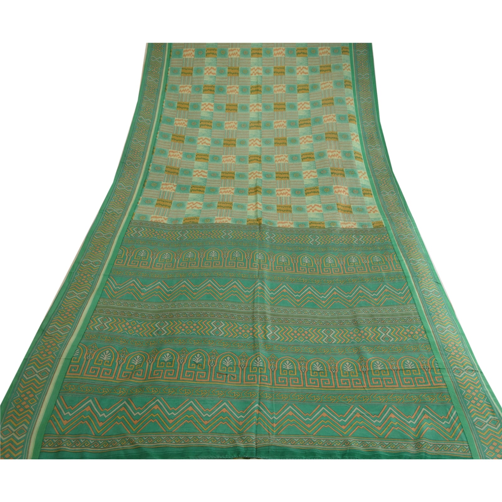 Sanskriti Vintage Sarees Indian Green 100% Pure Silk Printed Sari Craft Sustainable Fabric