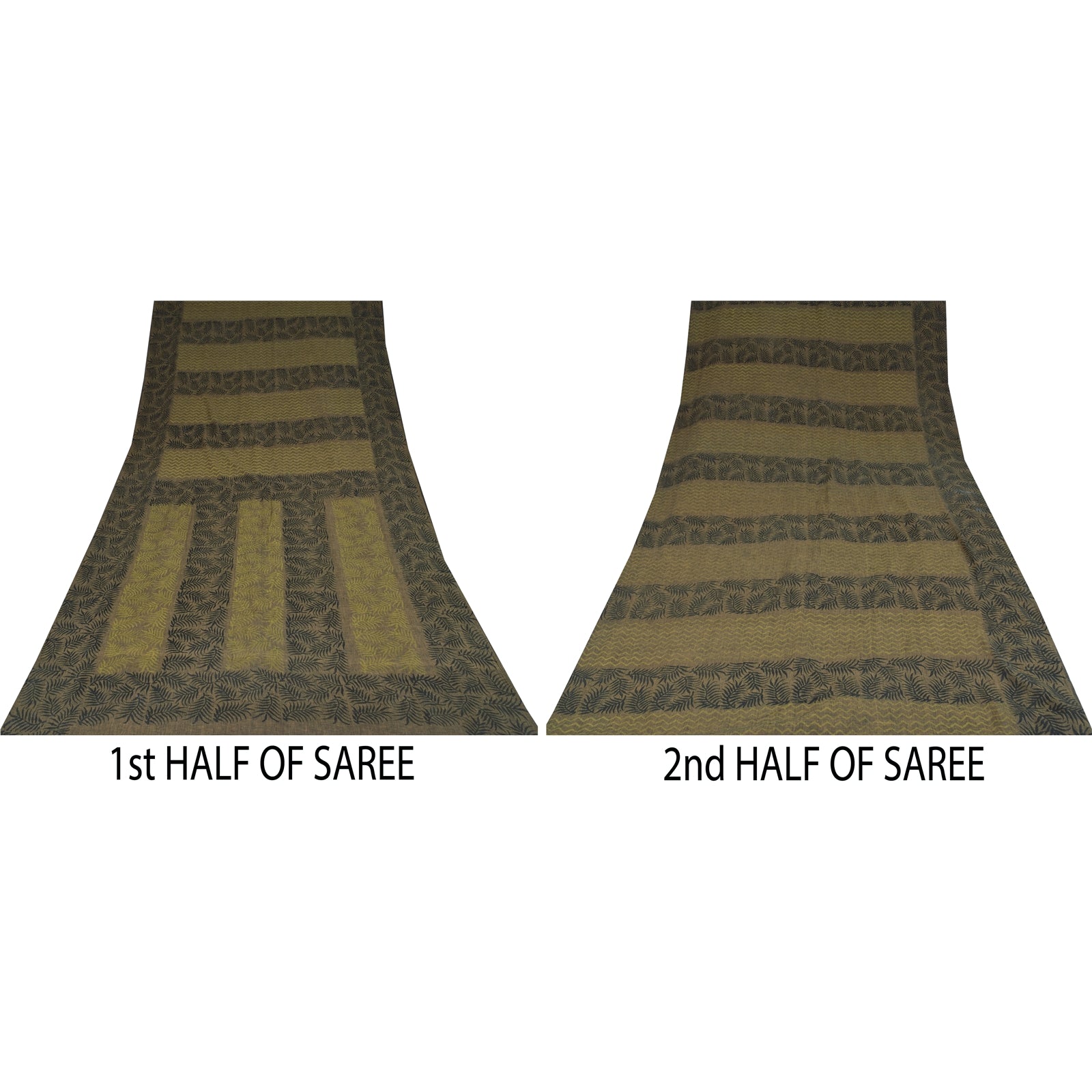 Sanskriti Vintage Sarees Indian Green Pure Cotton Printed Sari 5+yd Craft Fabric