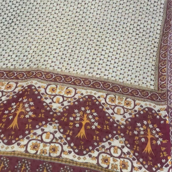 Sanskriti Vintage Sarees Indian Ivory Pure Cotton Printed Sari 5+yd Craft Fabric
