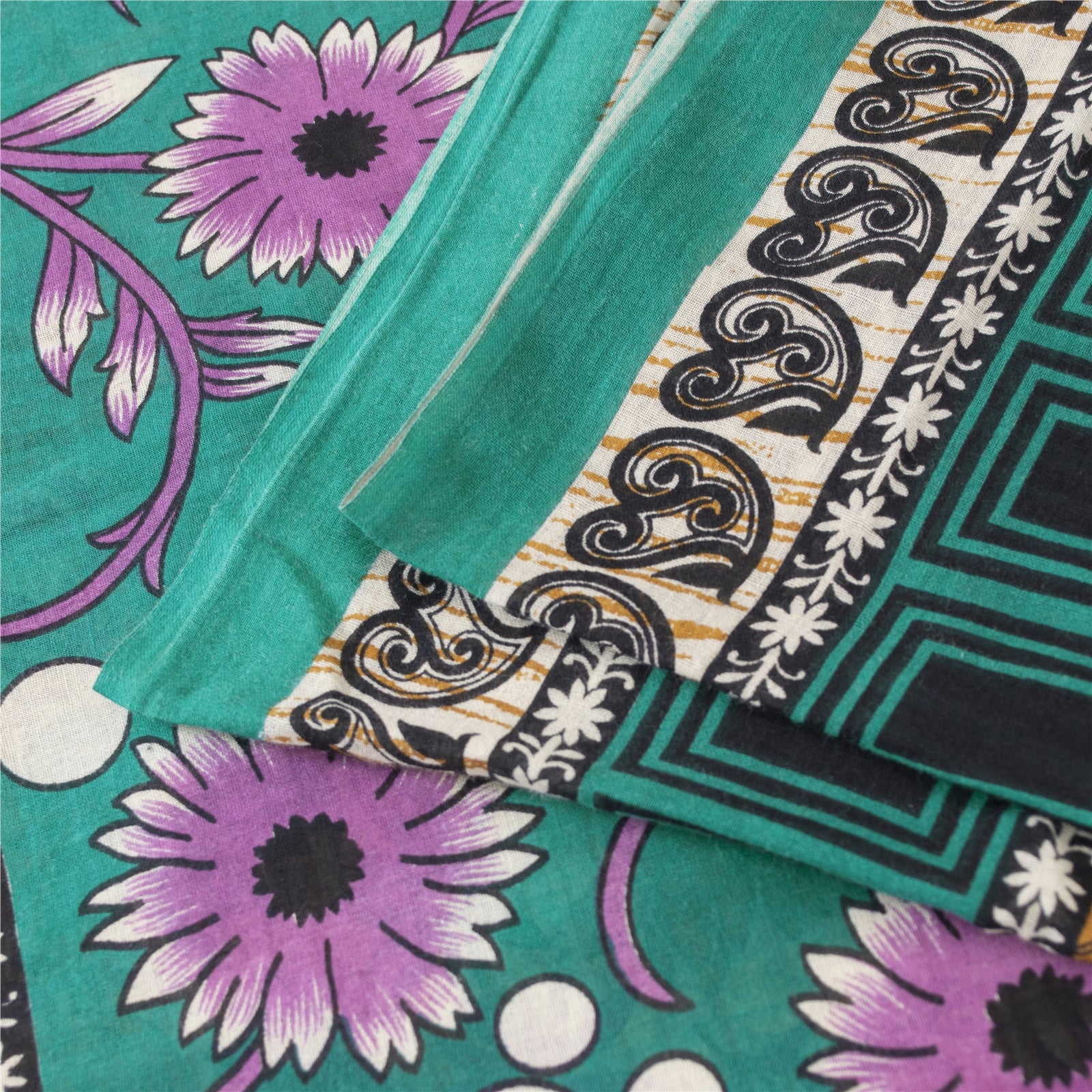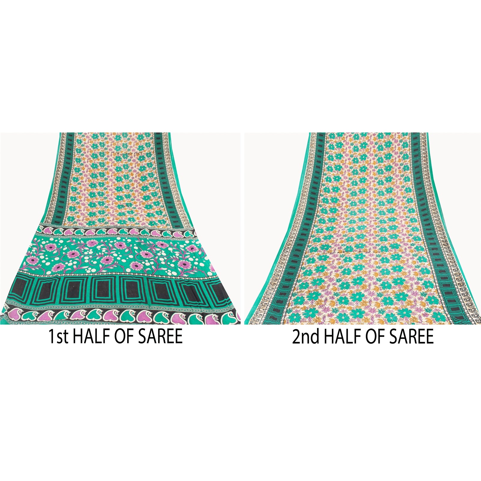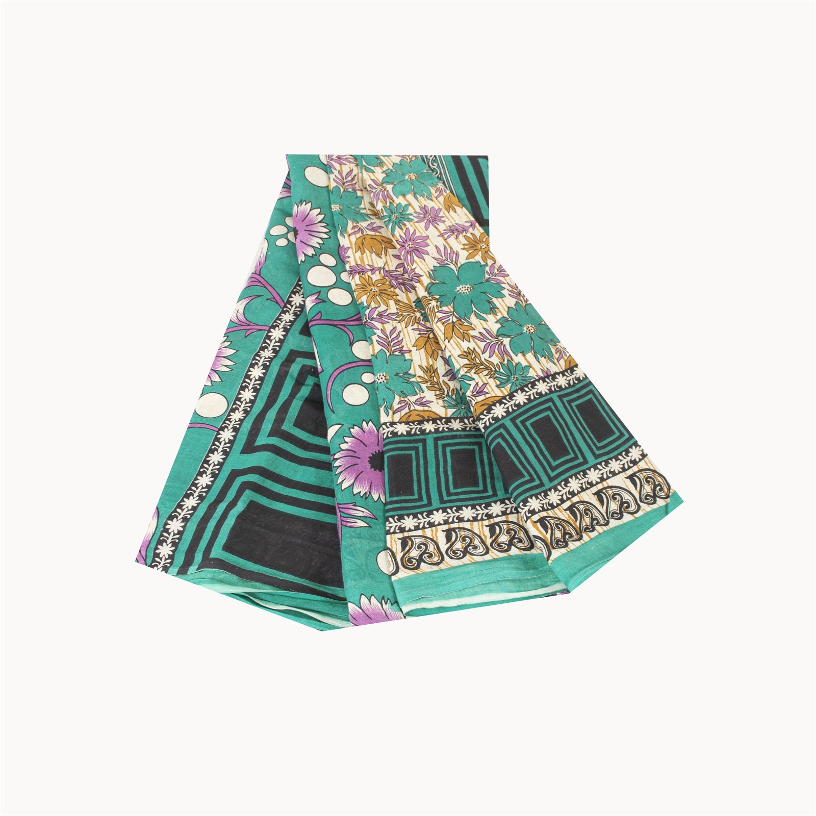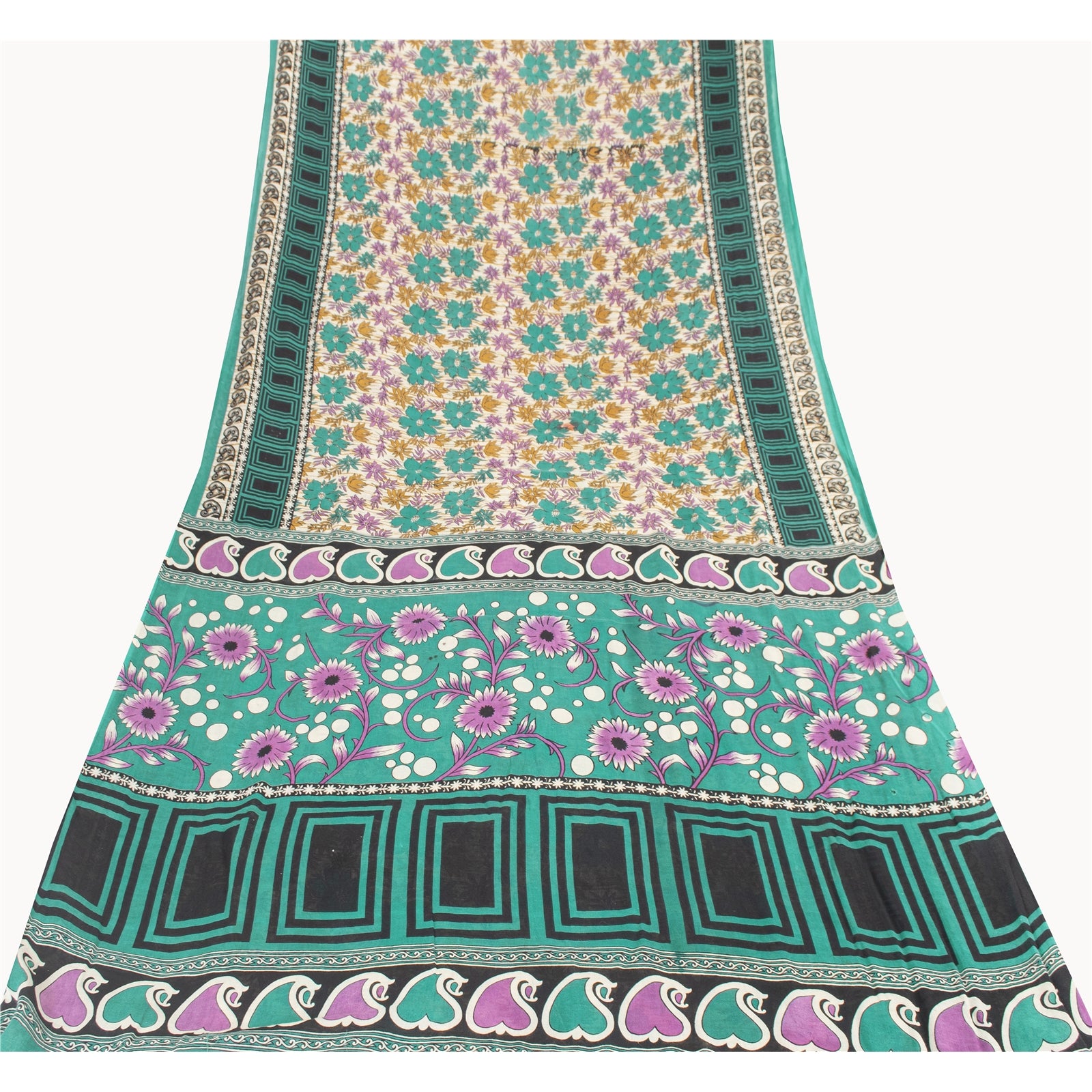 THE ITEM COLOR OR SHADE MAY BE DARKER OR LIGHTER THAN THE PICTURE. Attractive ivory colored pure cotton printed sari. Pallu & Border has printed floral & geometric design. Floral design in center part of saree.. This unique vintage saree can be used for various crafting ideas even if you don't want to use it as a sari. Design a dress, use it as a as window dressing, upholstery, sarongs, throw, dress making and table linen much more. Let your creative juices flow and use this decorated fabric in multiple fashion. Shipping Note: 'International buyers please note: Import duties, taxes, and charges are not included in the item price or postage cost. These charges are the buyer's responsibility. Please check with your country's customs office to determine what these additional costs will be prior to bidding or buying. Buyer will pay custom duty/tax. It is calculated and charged differently by every country. As a seller I do not have any control over it. VAT or sales tax is calculated by the platform at the time of checkout. Customs charge is payable at the time of delivery.' PCS-7195