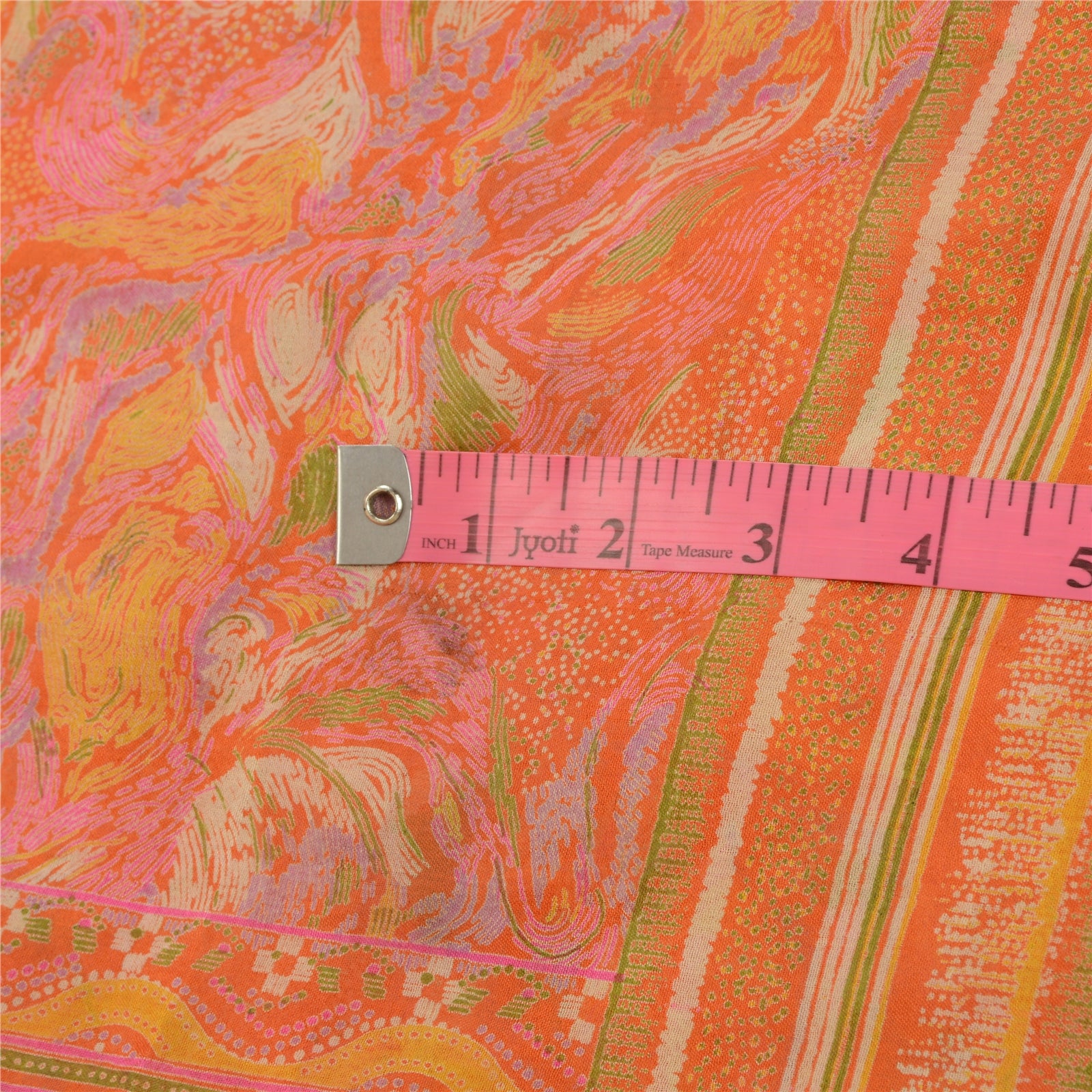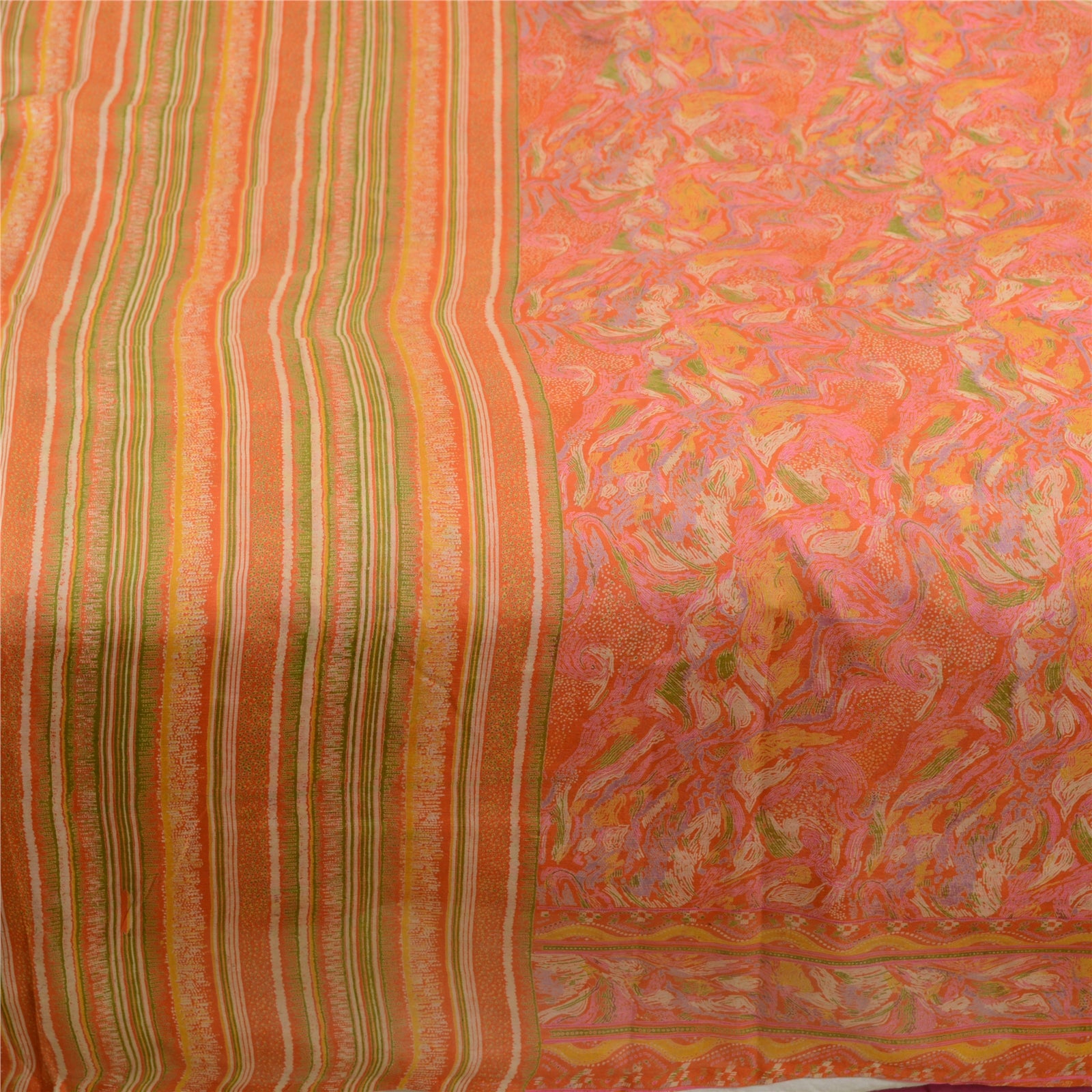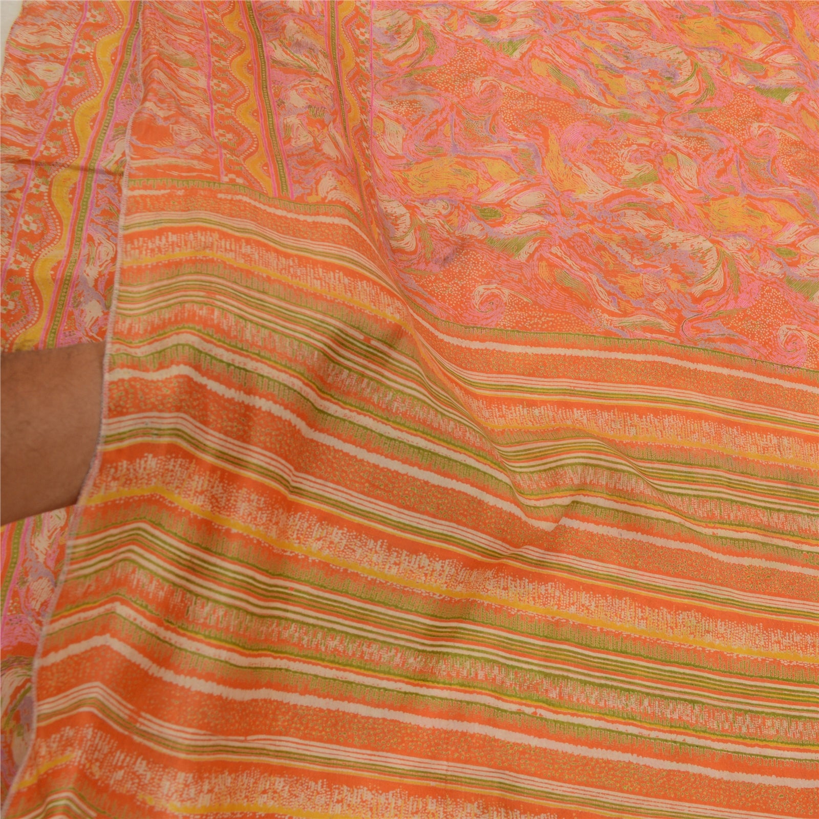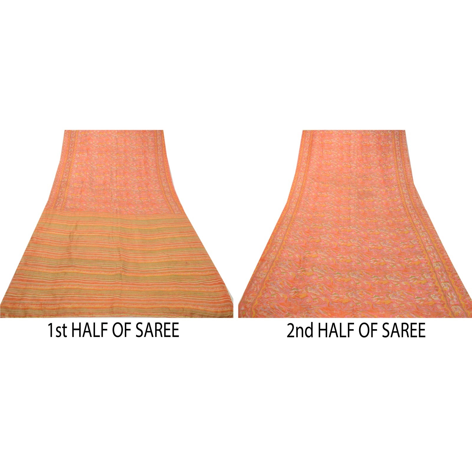 Sanskriti Vintage Sarees Indian Orange 100% Pure Silk Printed Sari Craft Sustainable Fabric