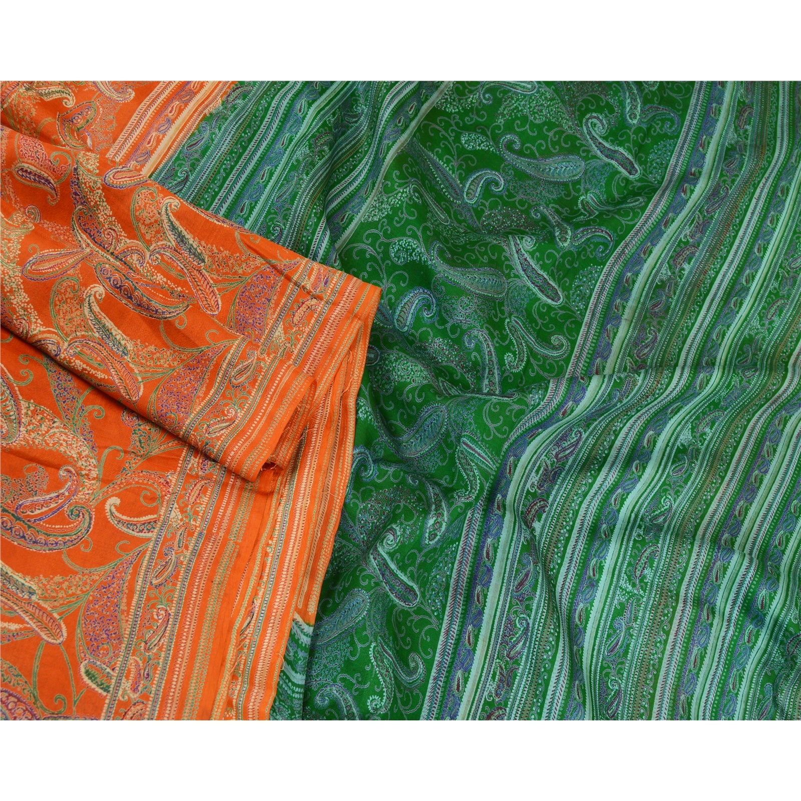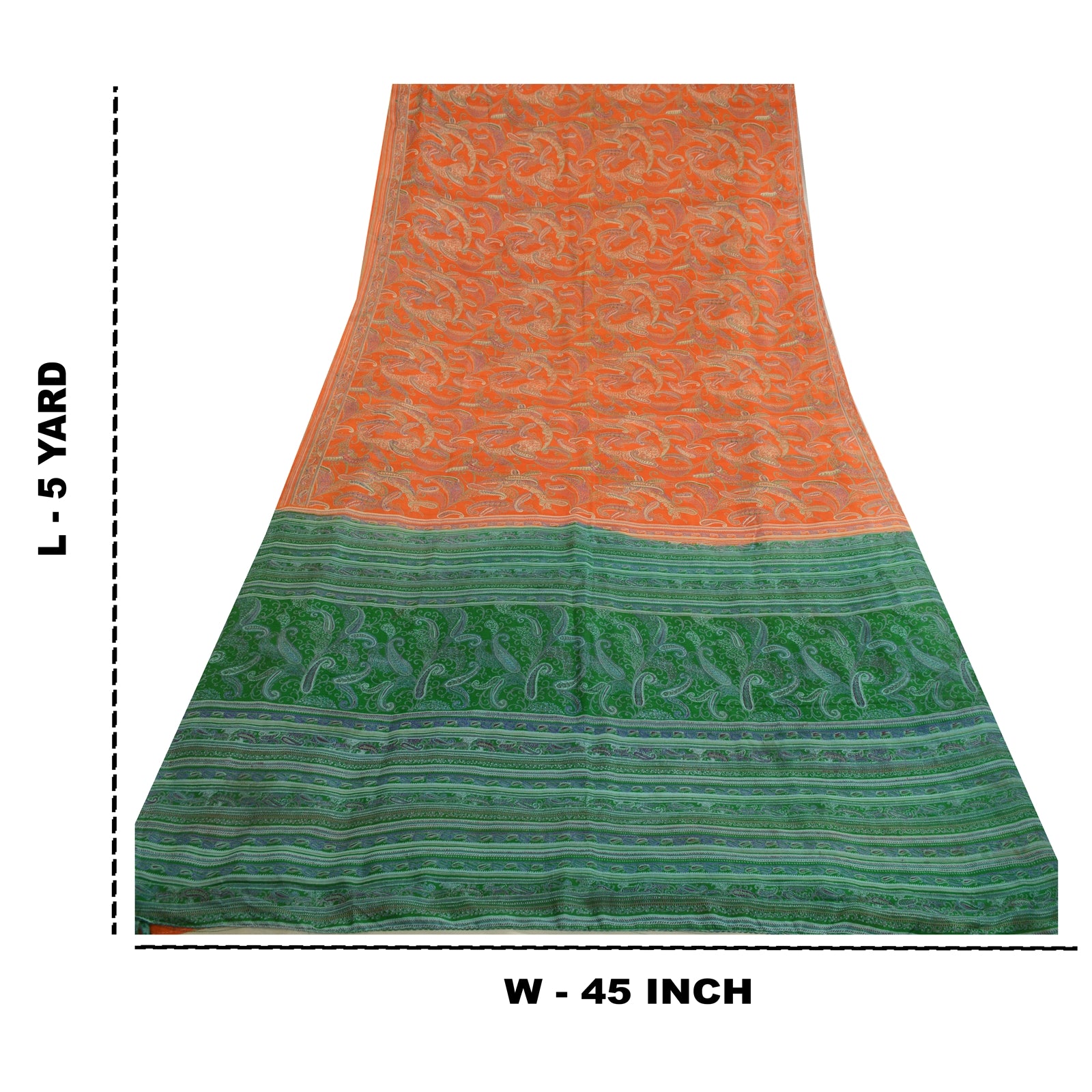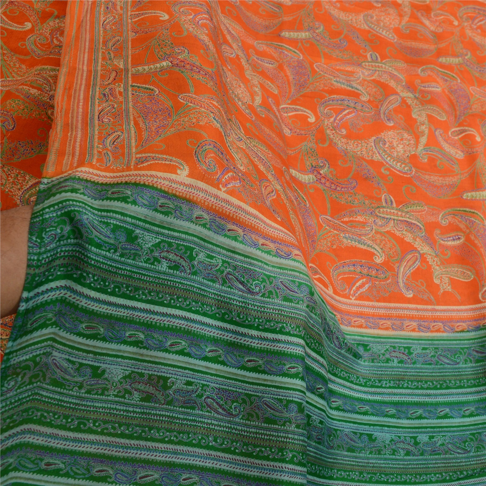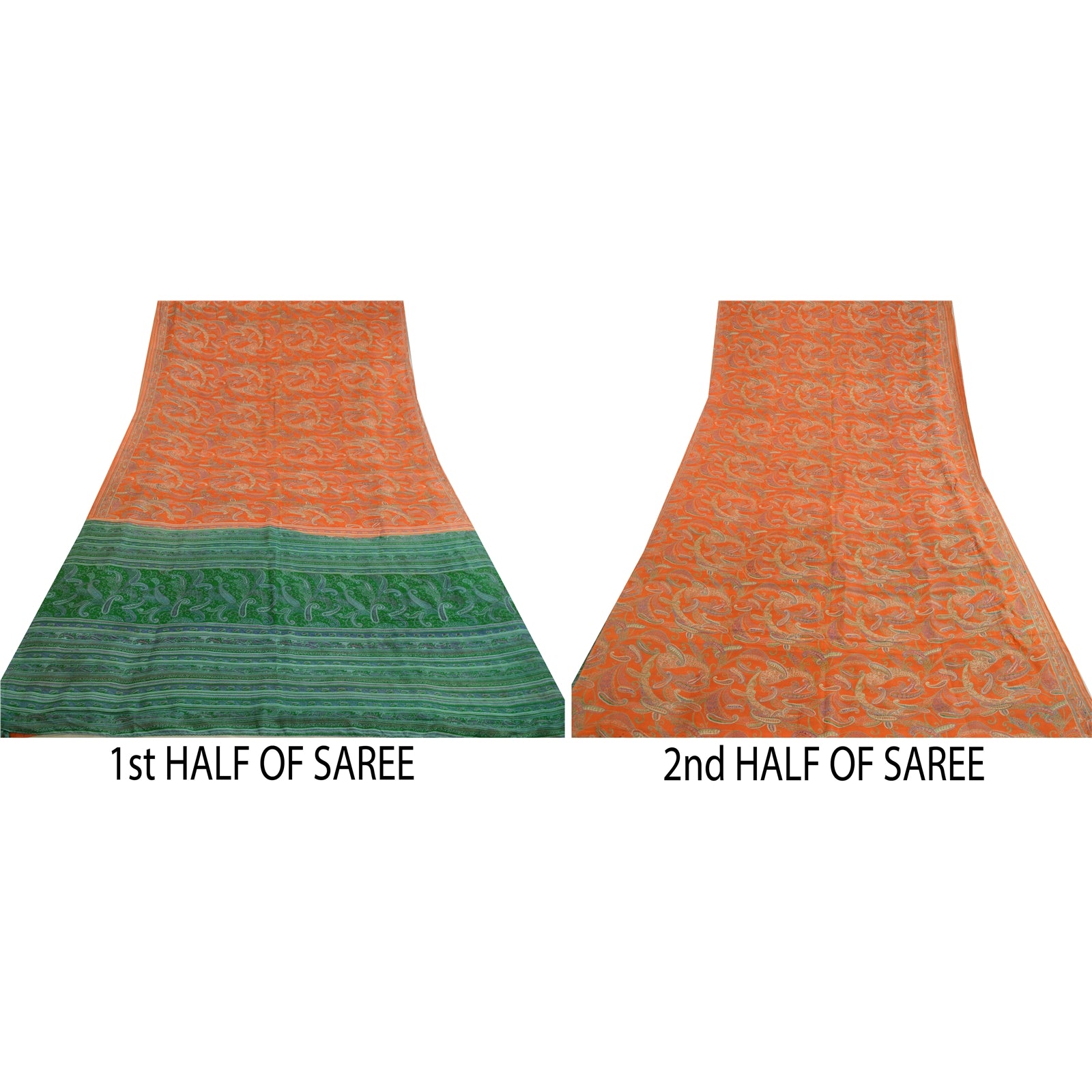 Sanskriti Vintage Sarees Indian Orange 100% Pure Silk Printed Sari Craft Sustainable Fabric