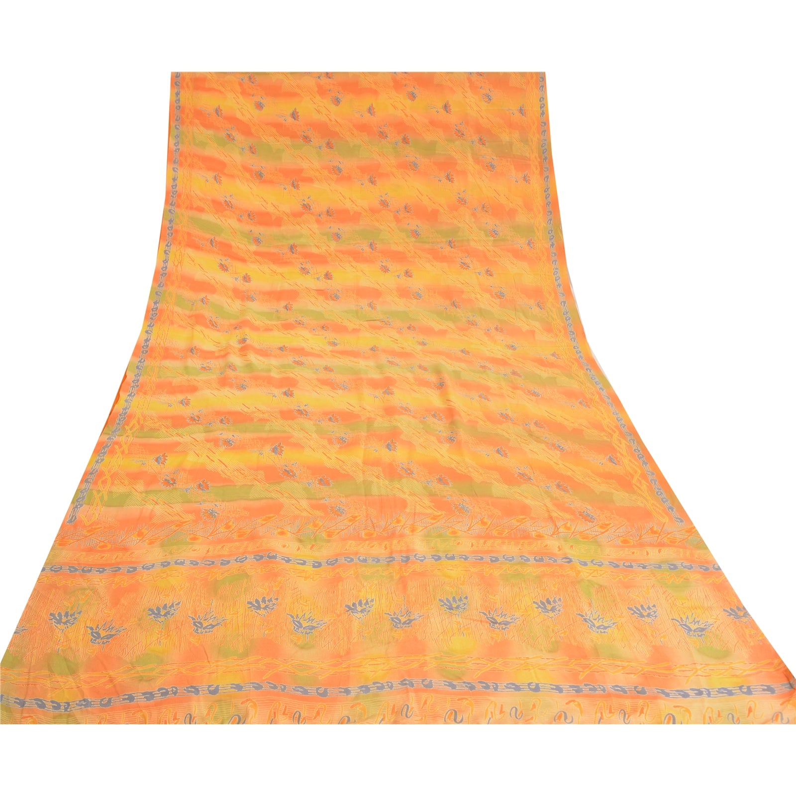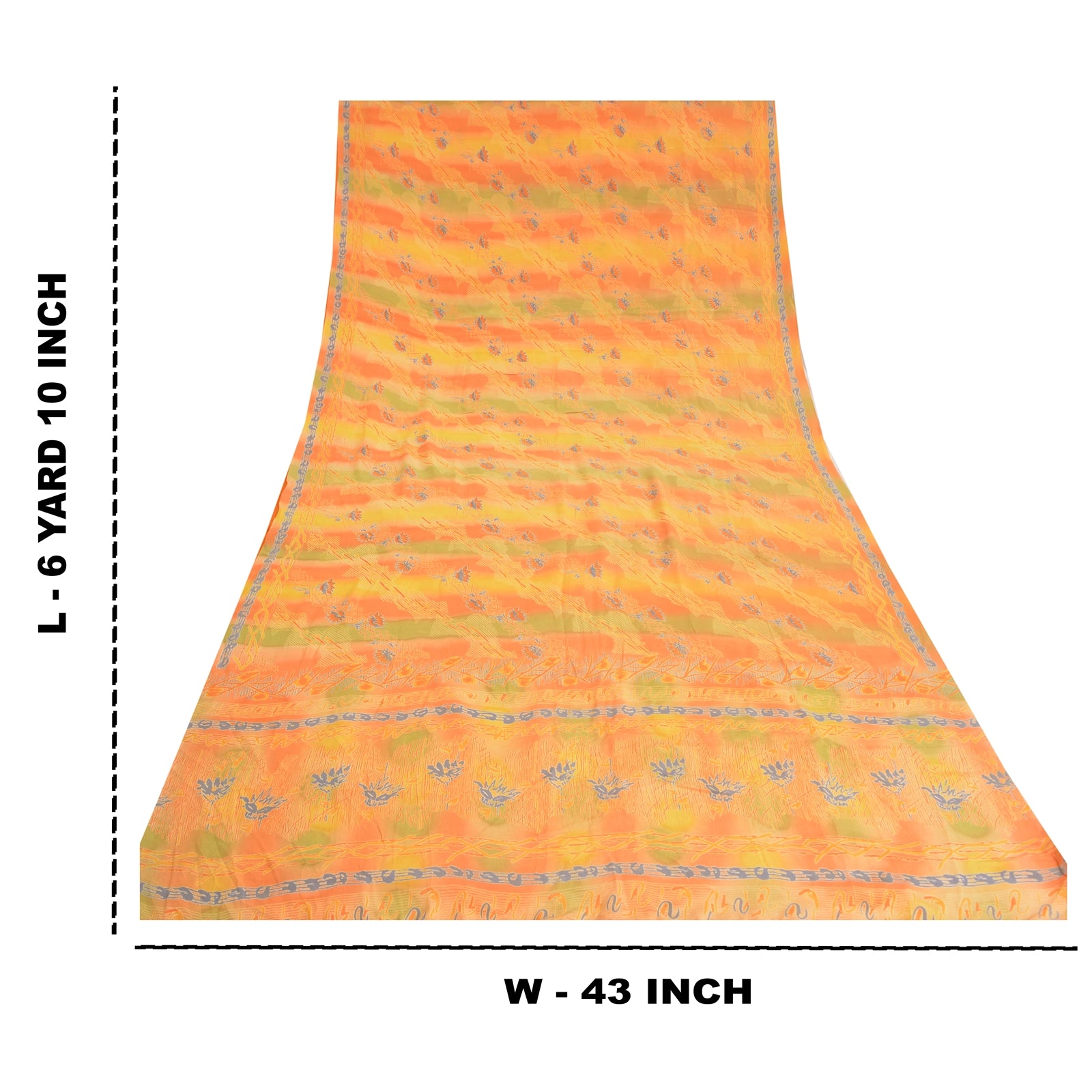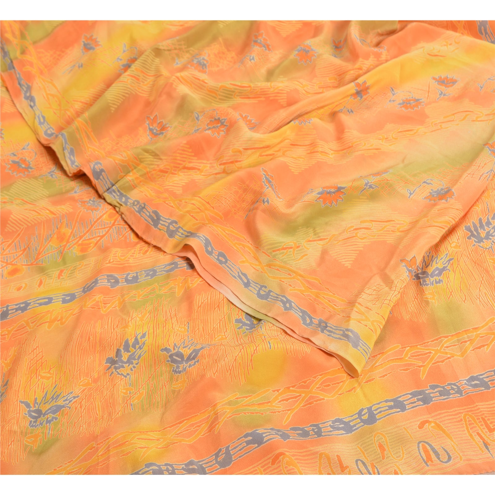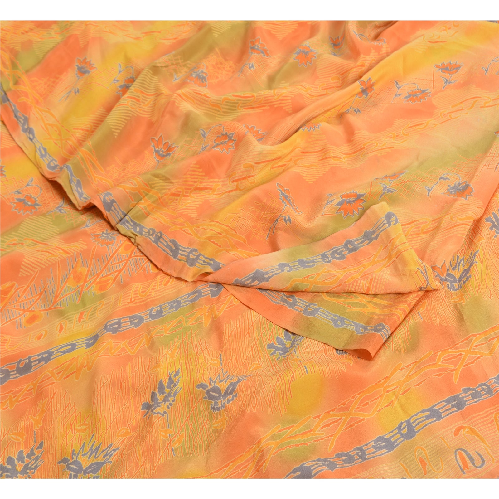 Sanskriti Vintage Sarees Indian Orange Printed Pure Crepe Silk Sari Craft Sustainable Fabric