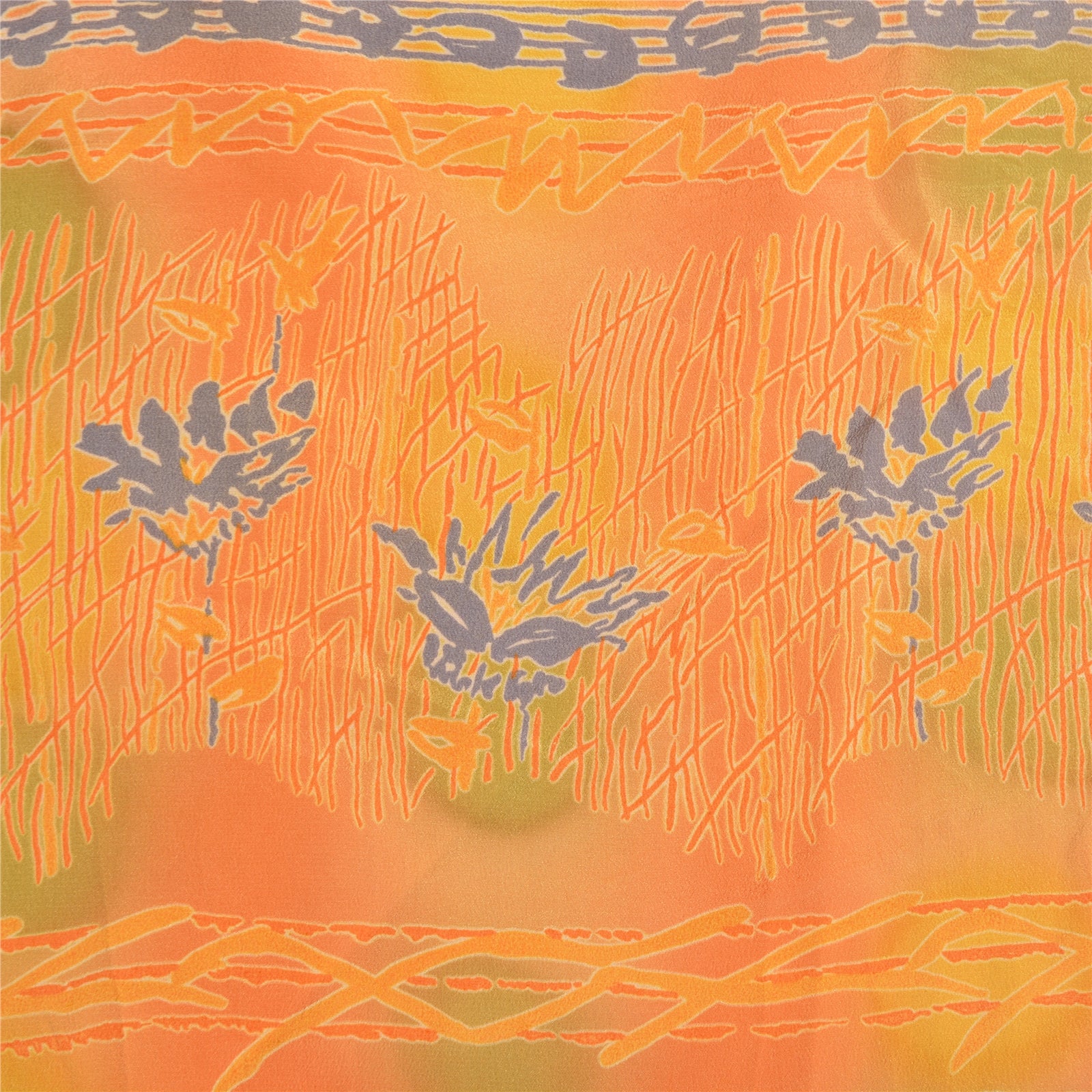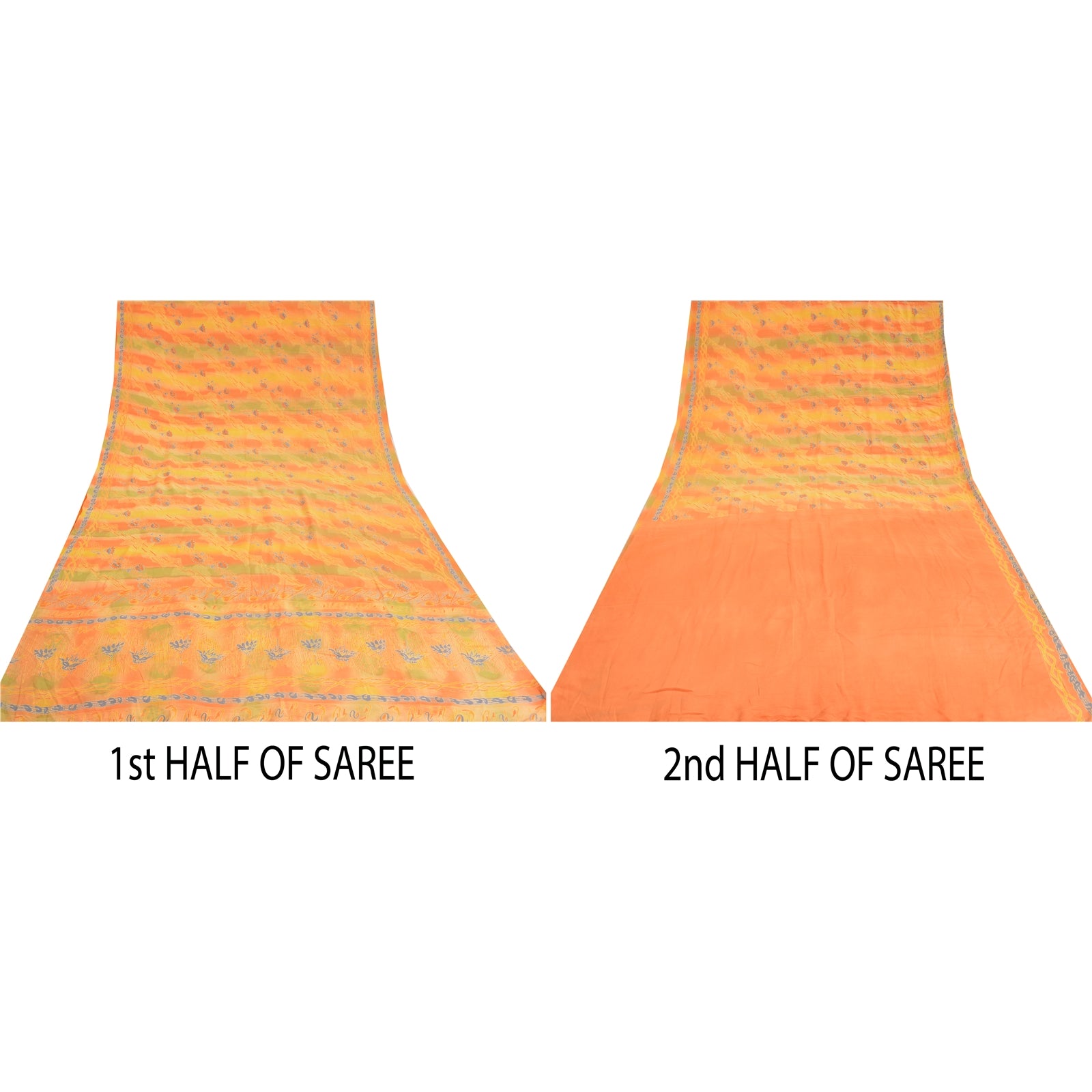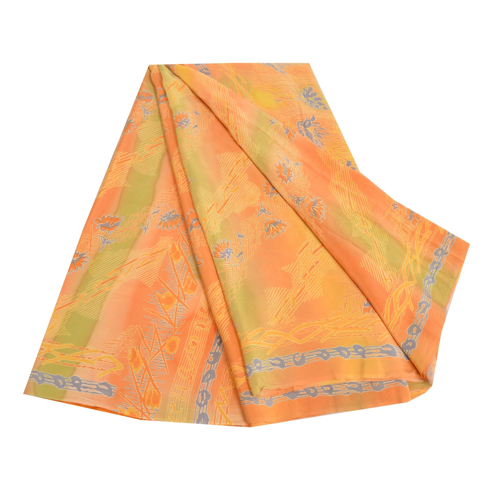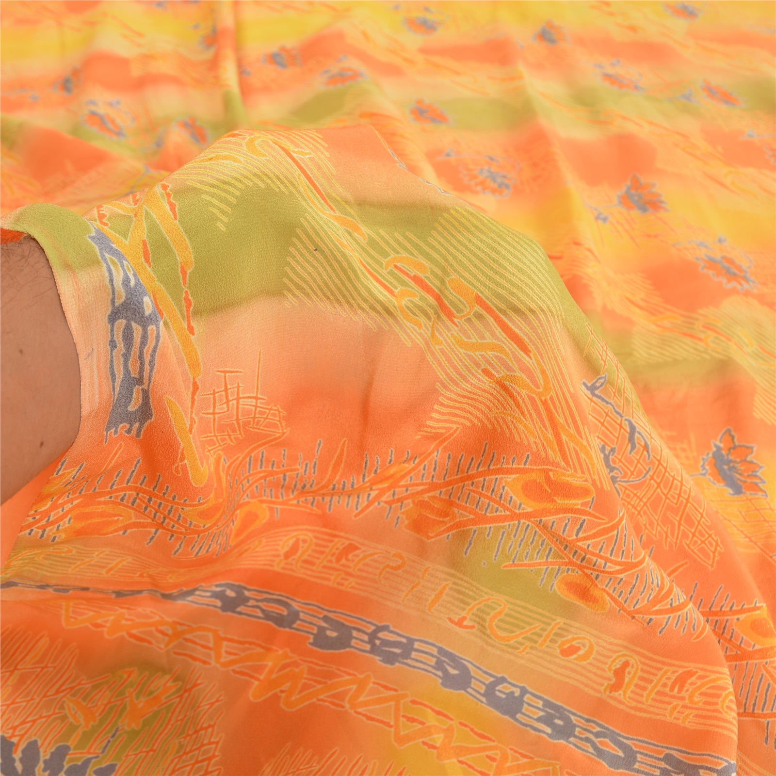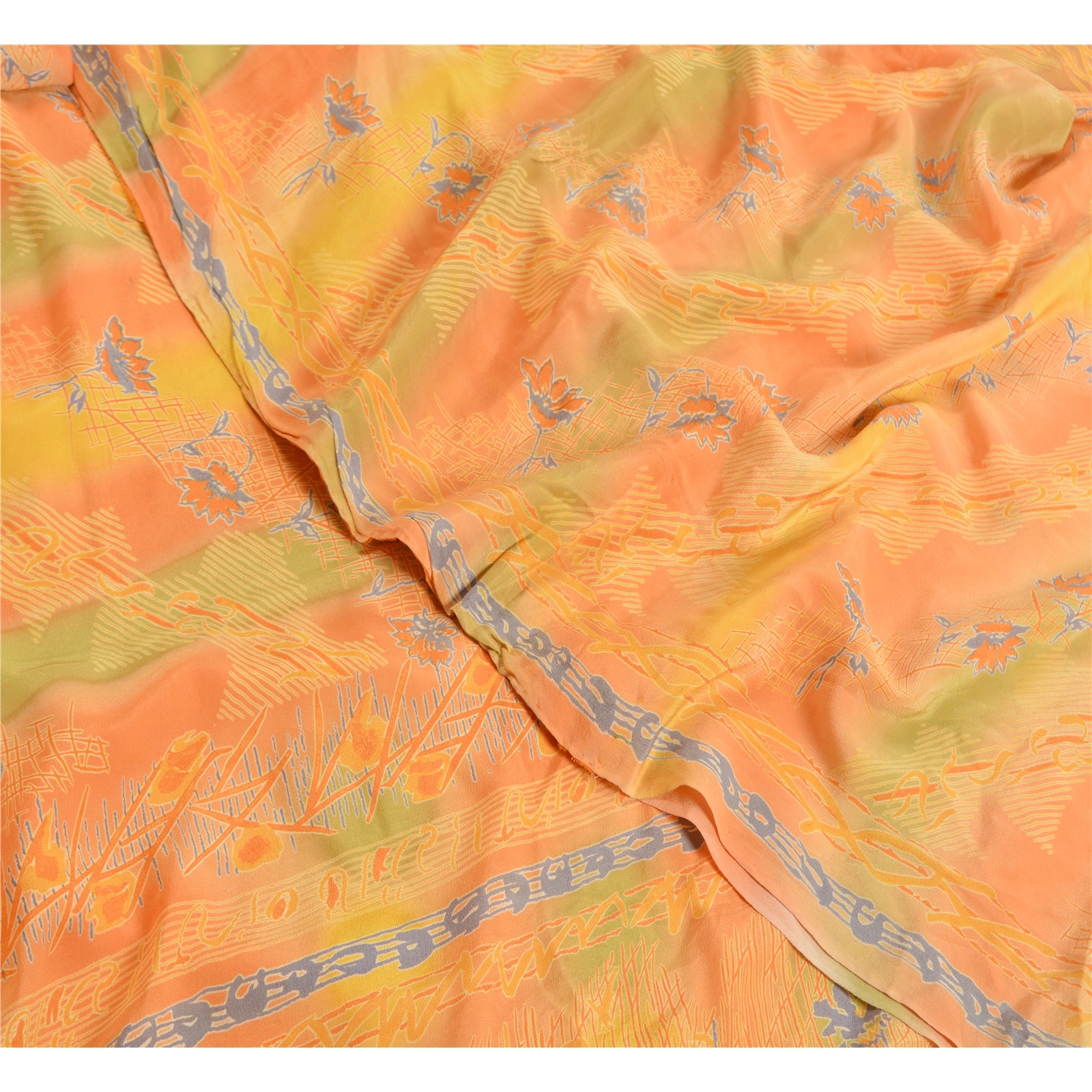 Sanskriti Vintage Sarees Indian Orange Printed Pure Crepe Silk Sari Craft Sustainable Fabric