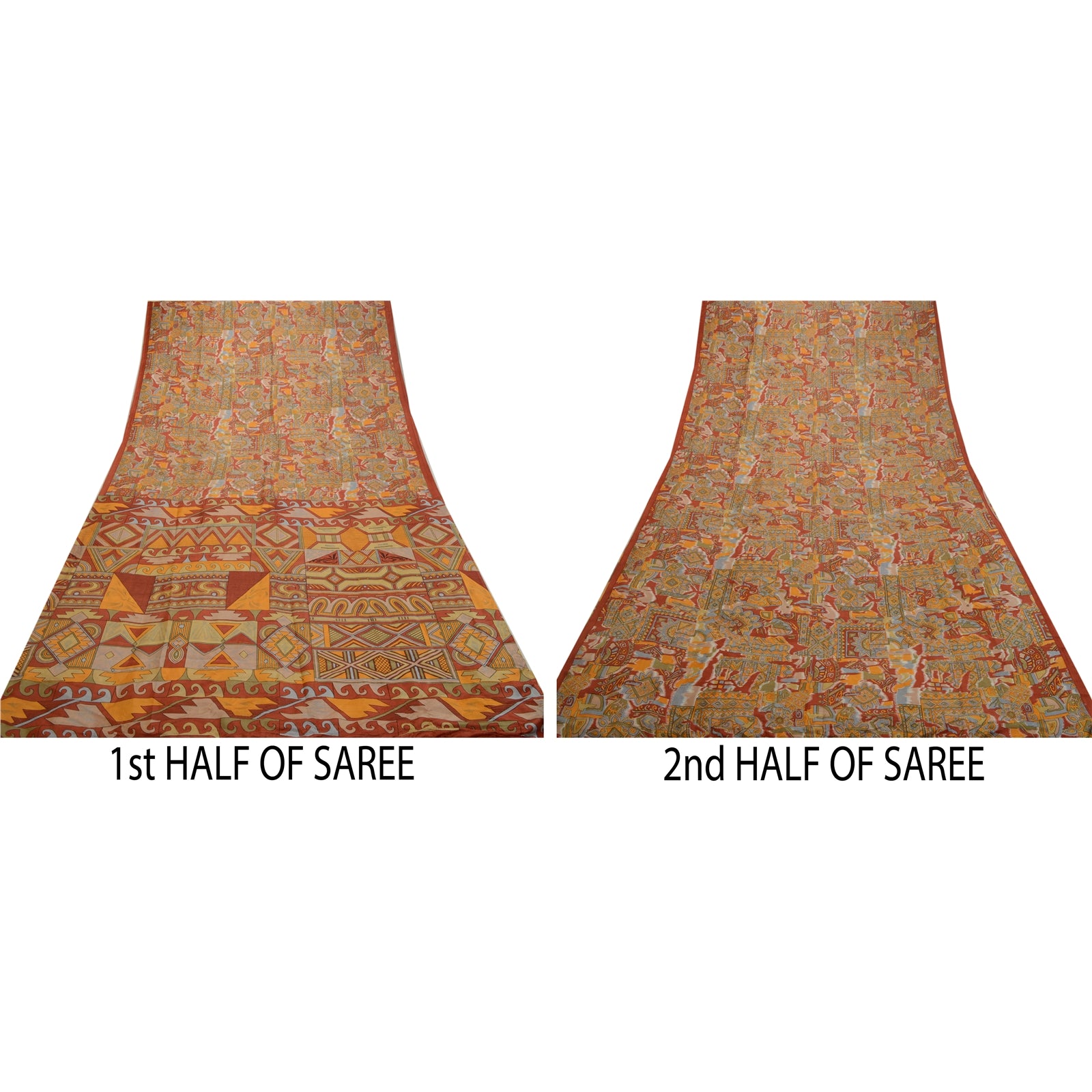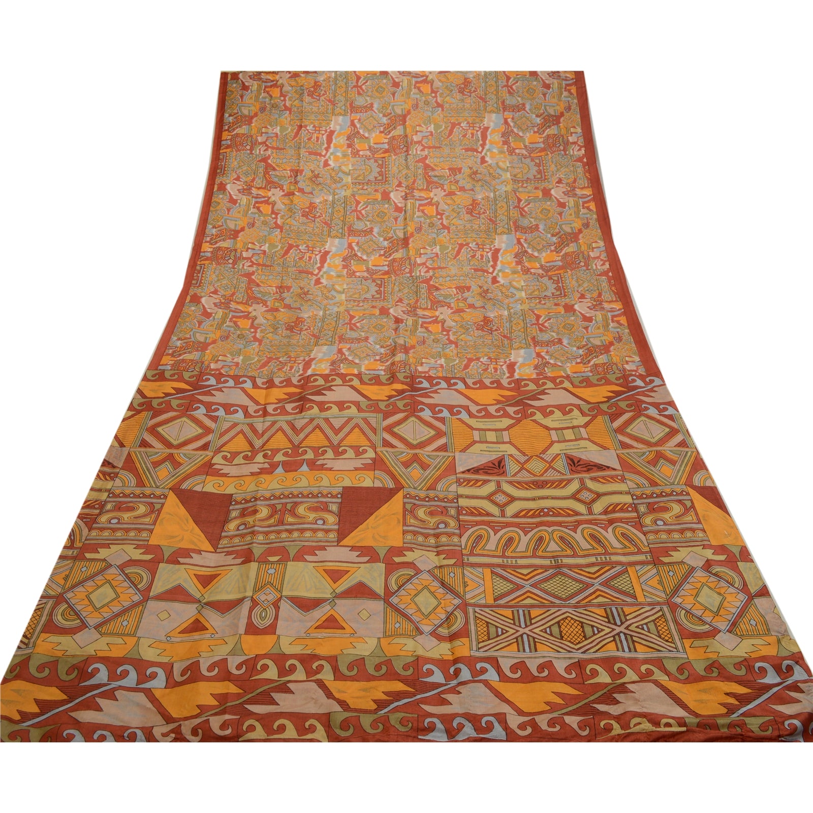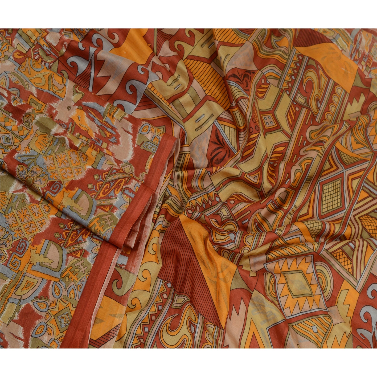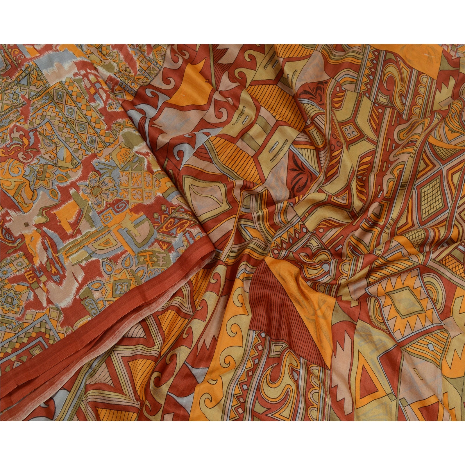 Sanskriti Vintage Sarees Indian Orange Printed Pure Silk Sari Soft Craft Sustainable Fabric