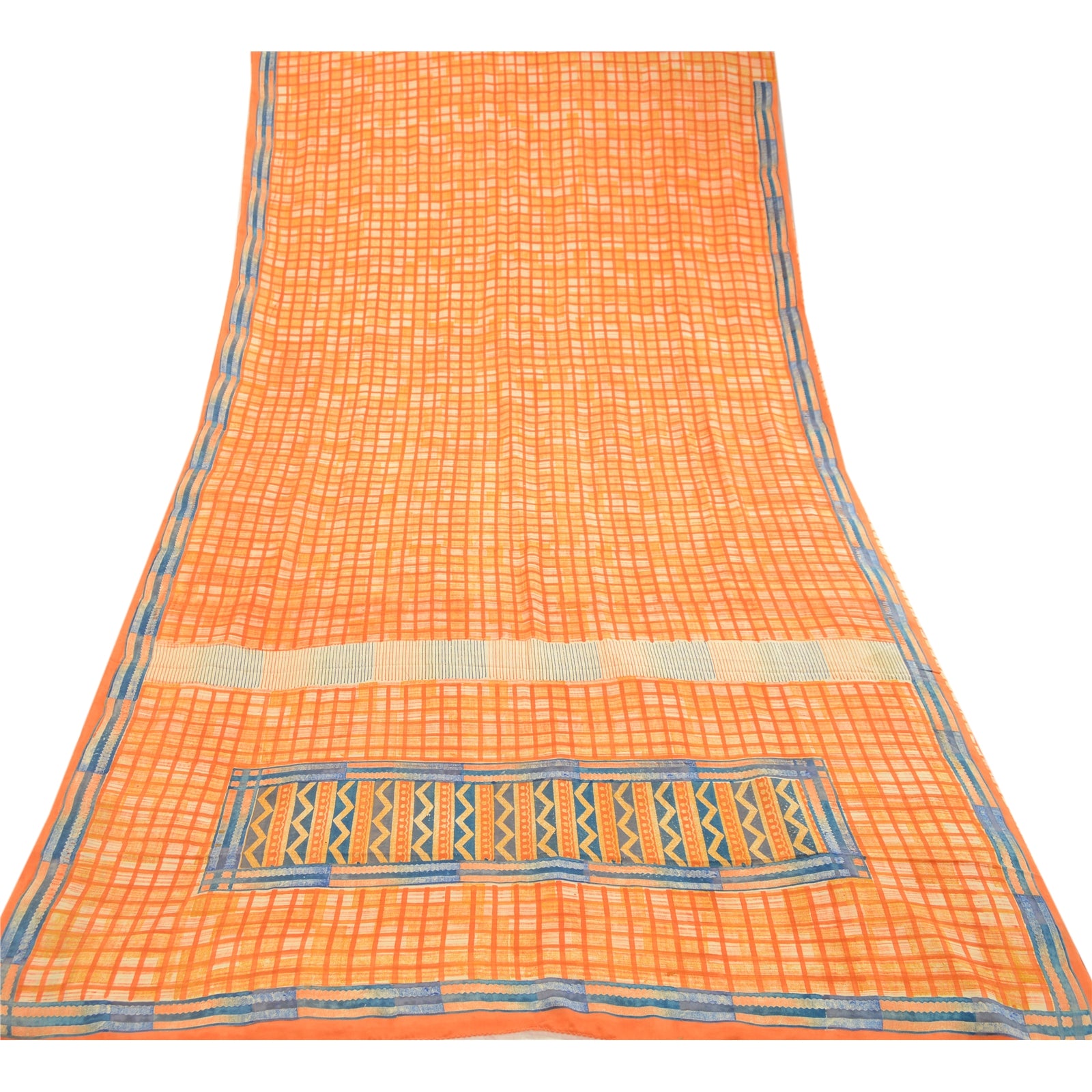 Sanskriti Vintage Sarees Indian Orange Pure Crepe Silk Printed Sari Craft Sustainable Fabric