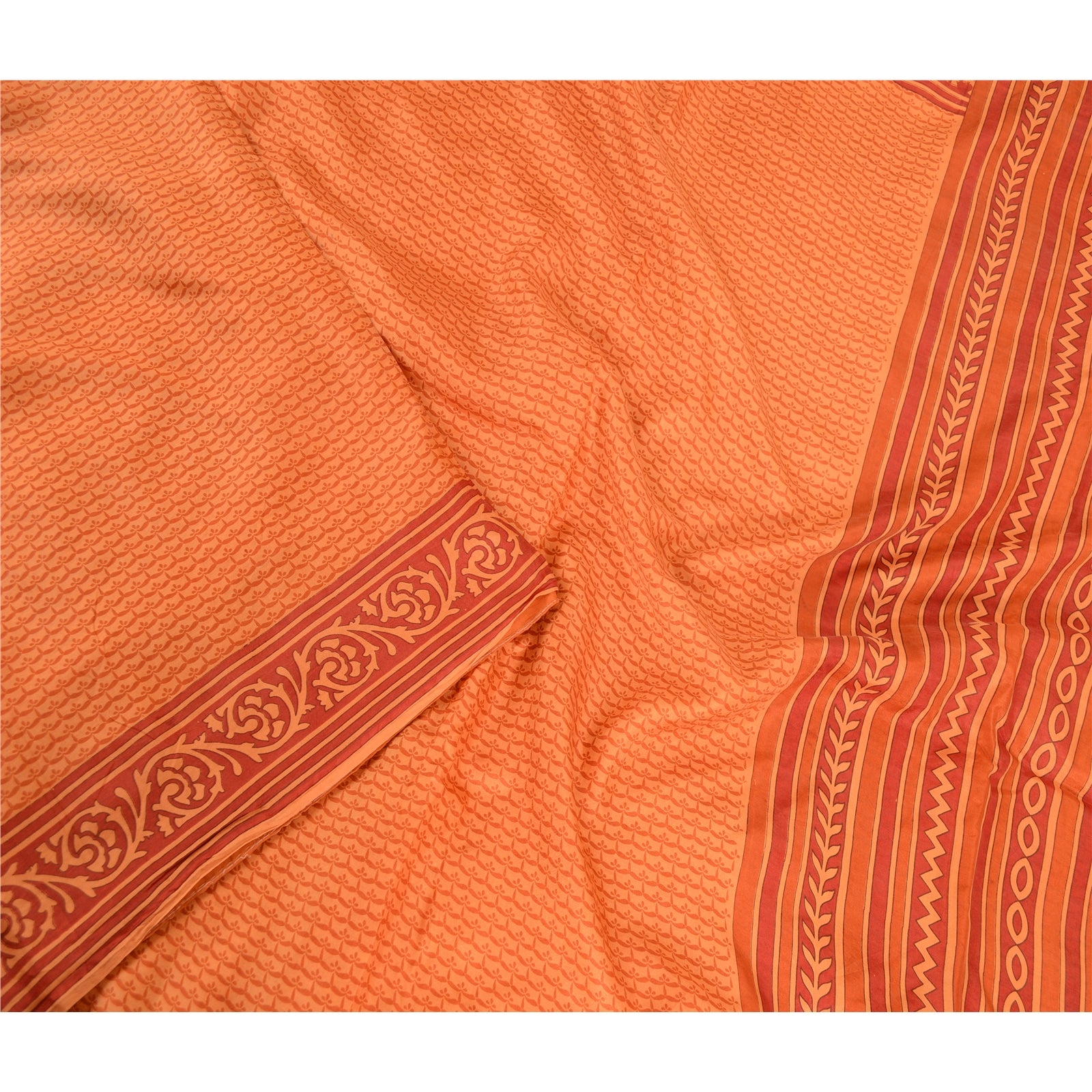Sanskriti Vintage Sarees Indian Orange Pure Silk Printed Sari 5yd Craft Sustainable Fabric