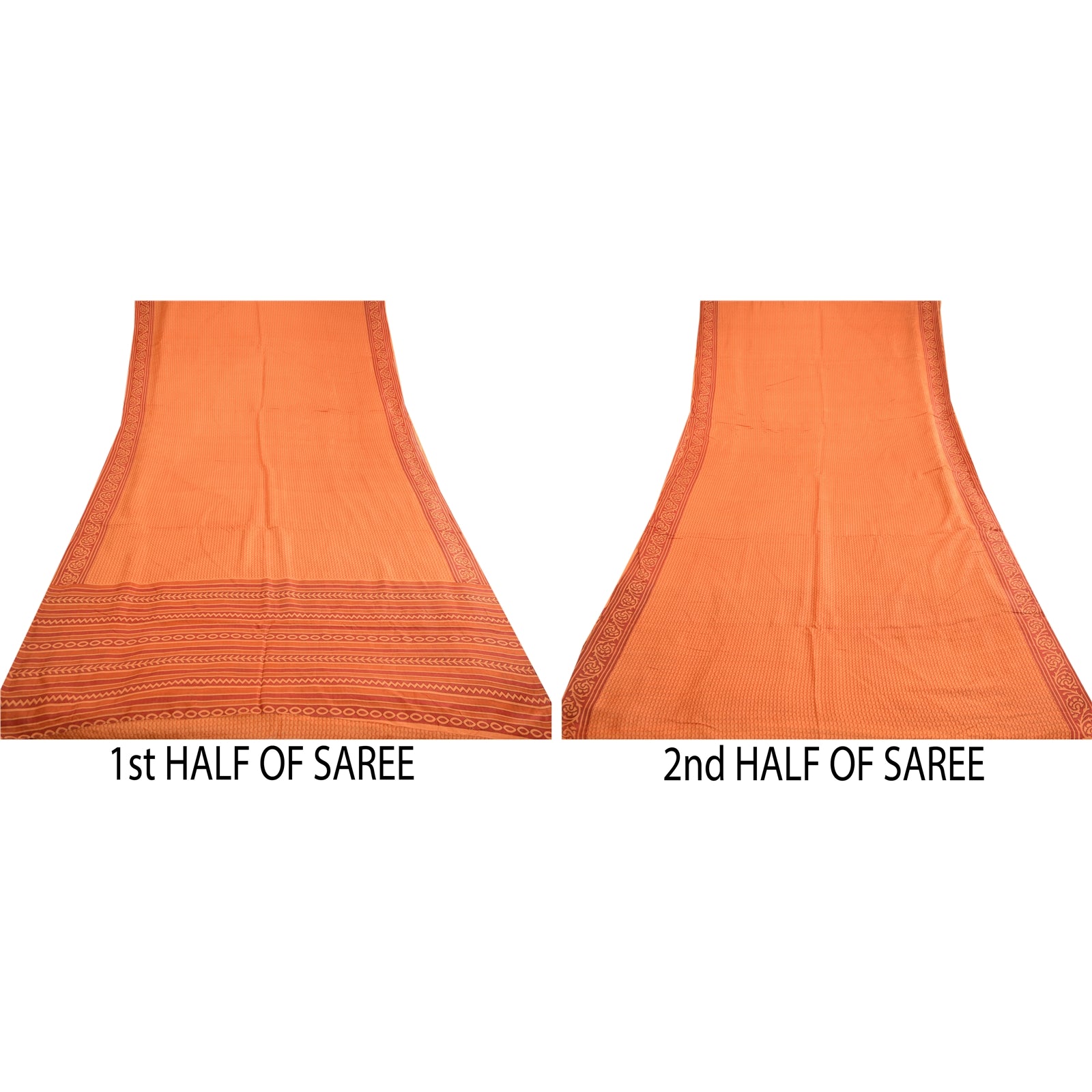 THE ITEM COLOR OR SHADE MAY BE DARKER OR LIGHTER THAN THE PICTURE.' Beautiful orange colored pure silk printed saree. Pallu & Border sari has printed zig-zag design. Floral design in center part of saree. What is special about this saree? Fabulous design is really enhancing the beauty of the saree.This unique vintage saree can be used for various crafting ideas even if you don't want to use it as a sari. Design a dress, use it as window,dressing, upholstery, sarongs, throw, dress making and table linen much more. Let your creative juices flow and use this decorated Sustainable Fabric in multiple fashion. International buyers please note: Import duties, taxes, and charges are not included in the item price or postage cost. These charges are the buyer's responsibility. Please check with your country's customs office to determine what these additional costs will be prior to bidding or buying. Buyer will pay custom duty/tax. It is calculated and charged differently by every country. As a seller I do not have any control over it. VAT or sales tax is calculated by the platform at the time of checkout. Customs charge is payable at the time of delivery.'