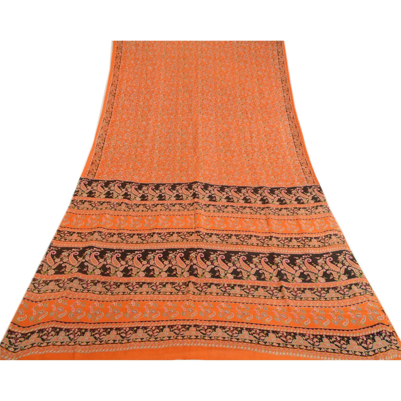 Sanskriti Vintage Sarees Indian Orange Pure Silk Printed Sari 5yd Craft Sustainable Fabric