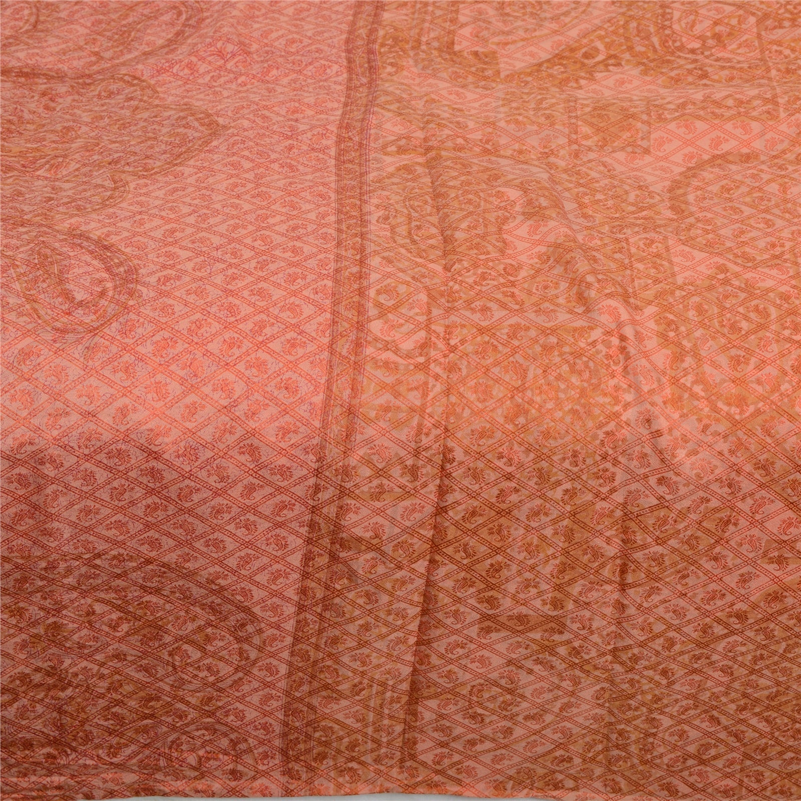 Sanskriti Vintage Sarees Indian Pastel-Red Pure Silk Printed Sari Craft Sustainable Fabric