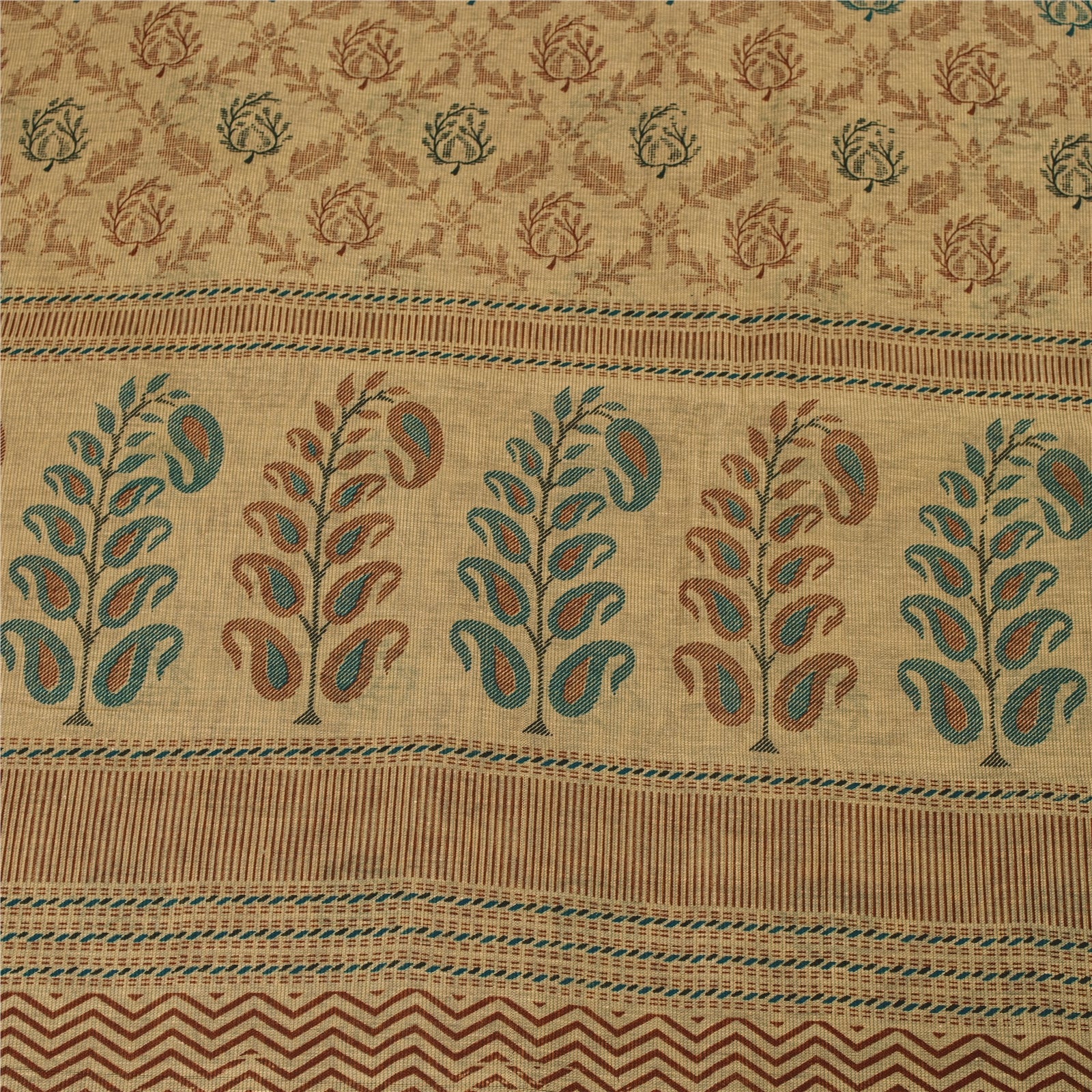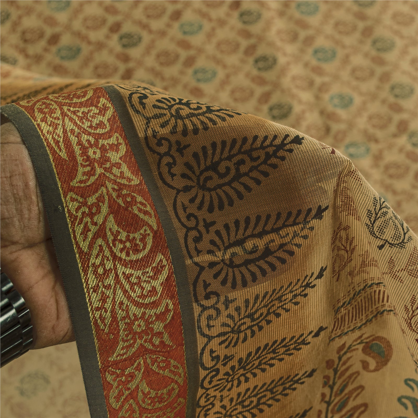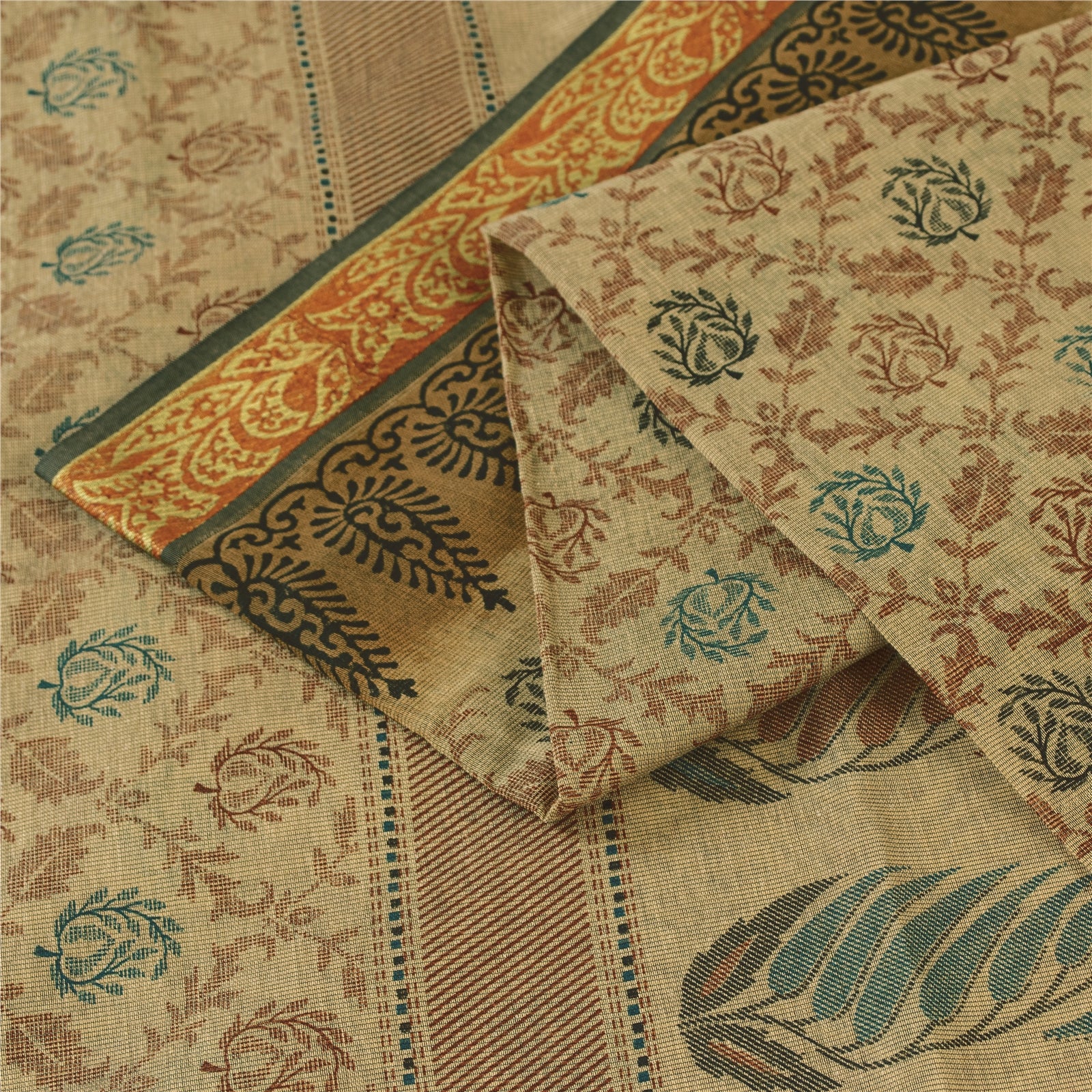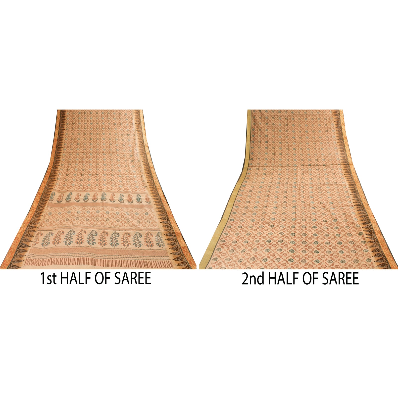 Sanskriti Vintage Sarees Indian Peach Pure Cotton Printed Sari 5+yd Craft Fabric
