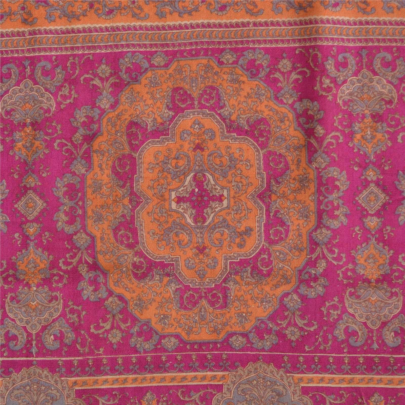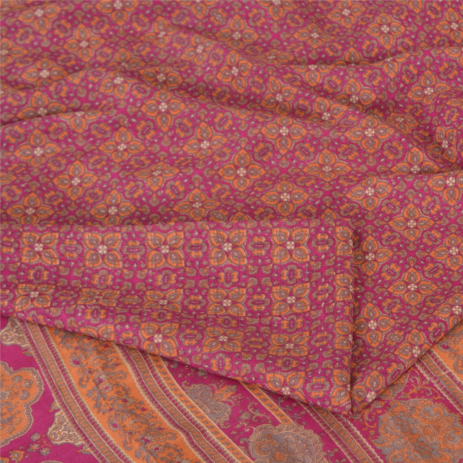 Sanskriti Vintage Sarees Indian Purple Pure Silk Printed Sari 5yd Craft Sustainable Fabric