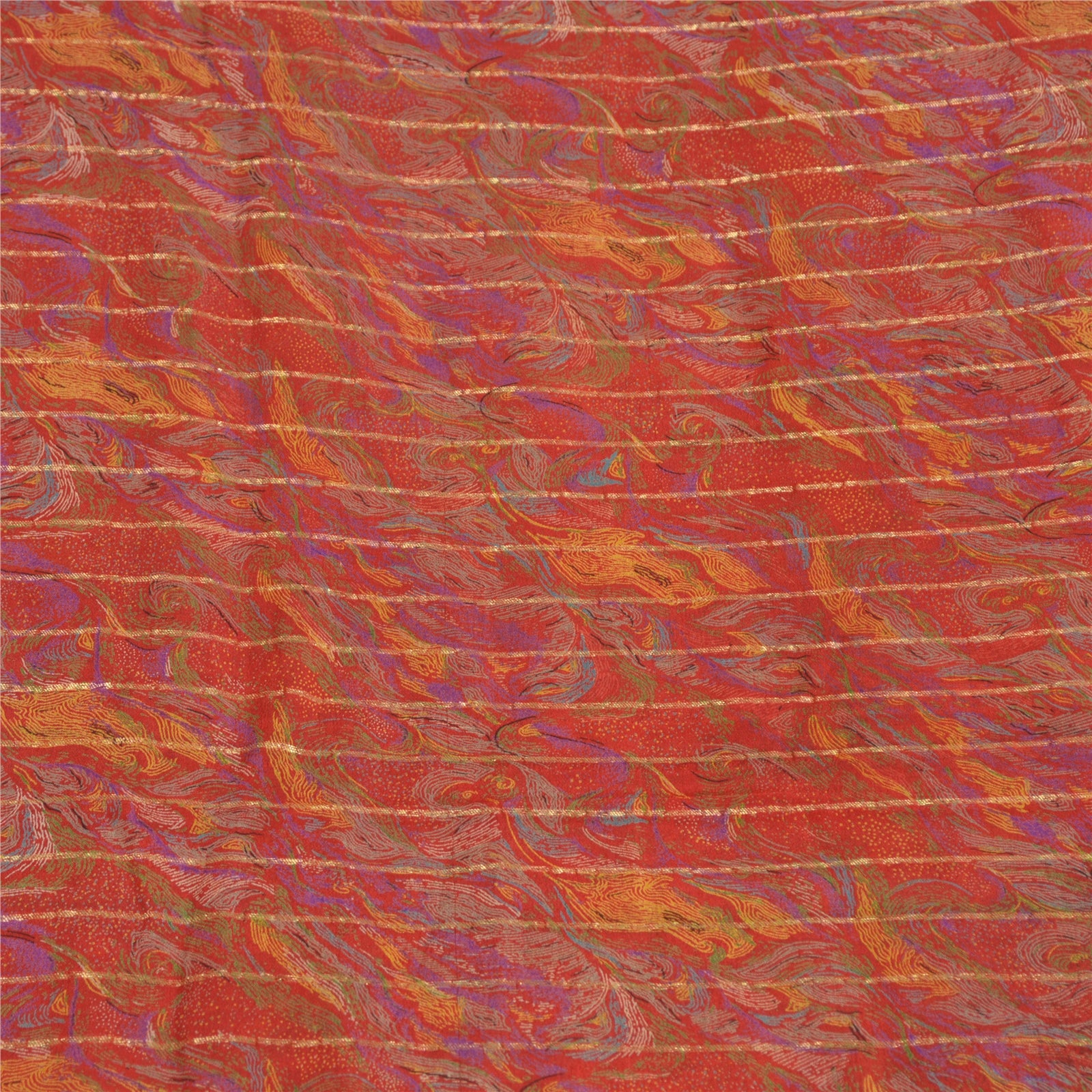 Sanskriti Vintage Sarees Indian Red 100% Pure Silk Printed Sari 5yd Craft Sustainable Fabric