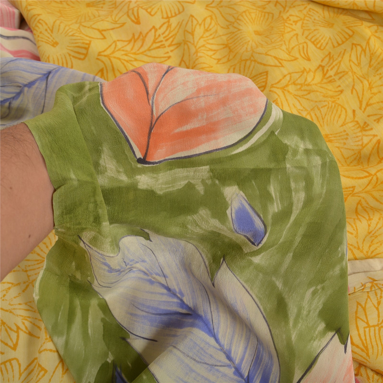 Sanskriti Vintage Sarees Indian Yellow Pure Crepe Silk Printed Sari Craft Sustainable Fabric
