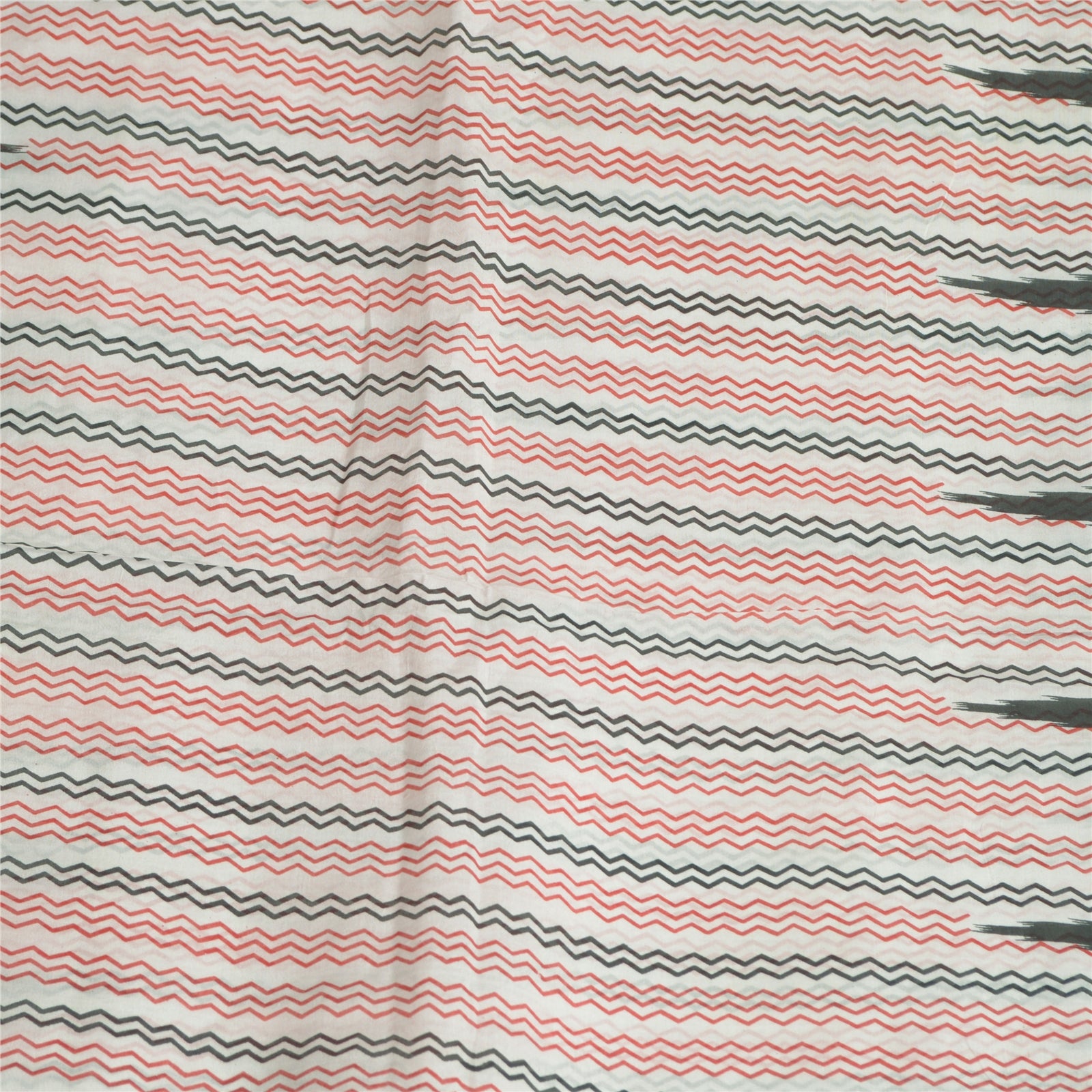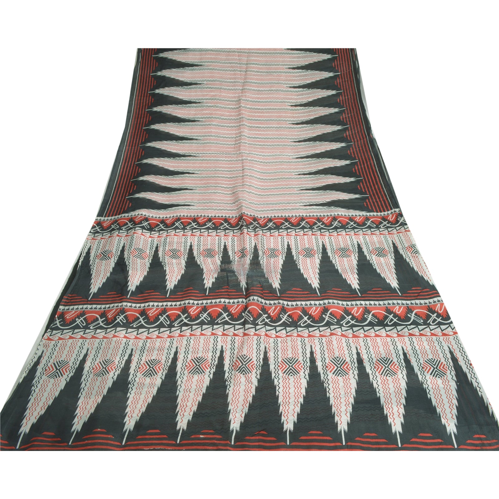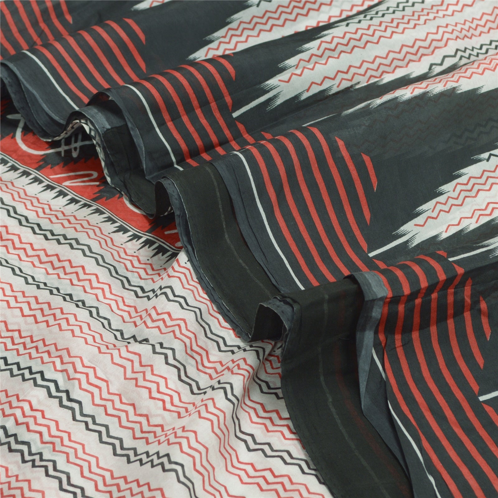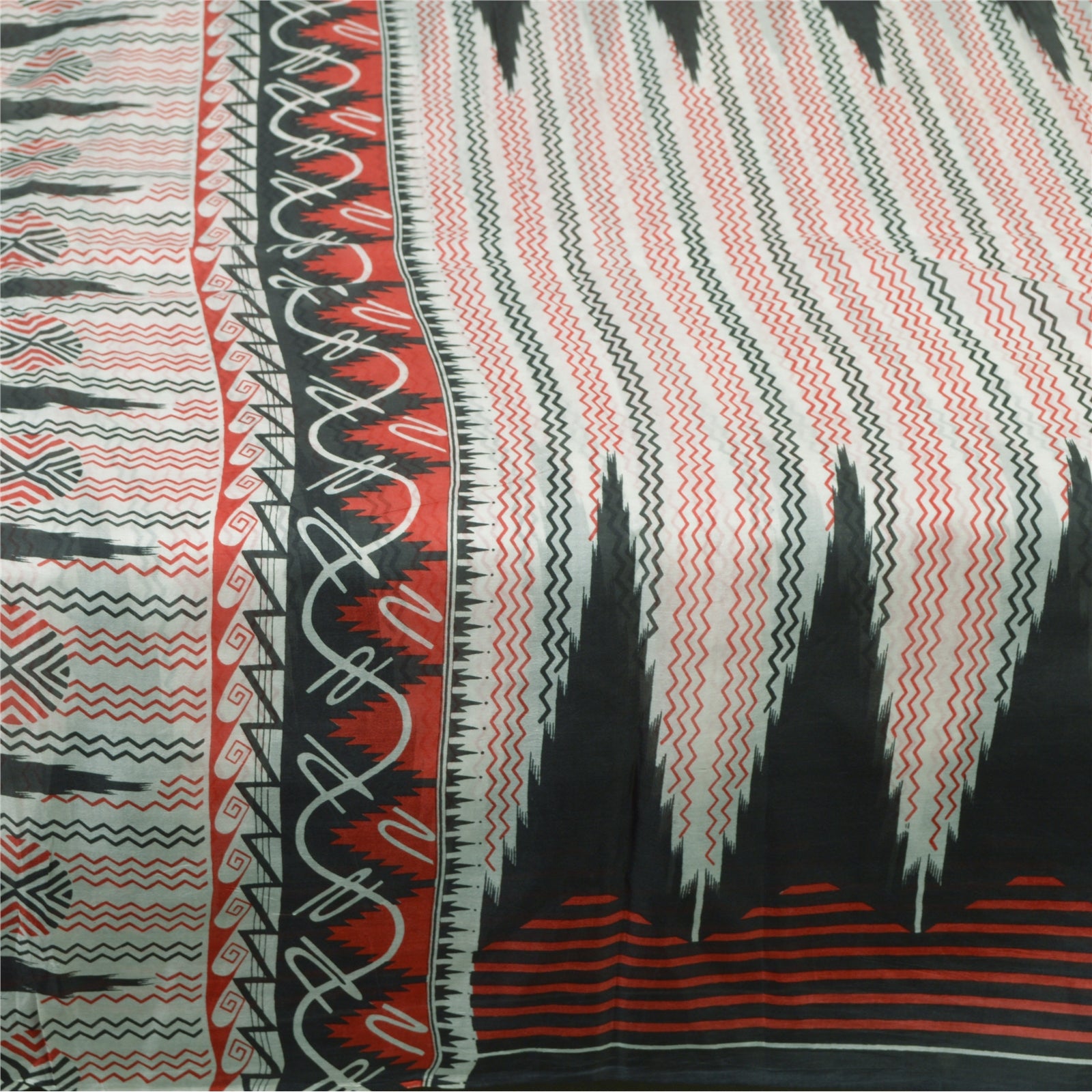 Sanskriti Vintage Sarees Ivory/Black Printed 100% Pure Silk Sari Craft Sustainable Fabric