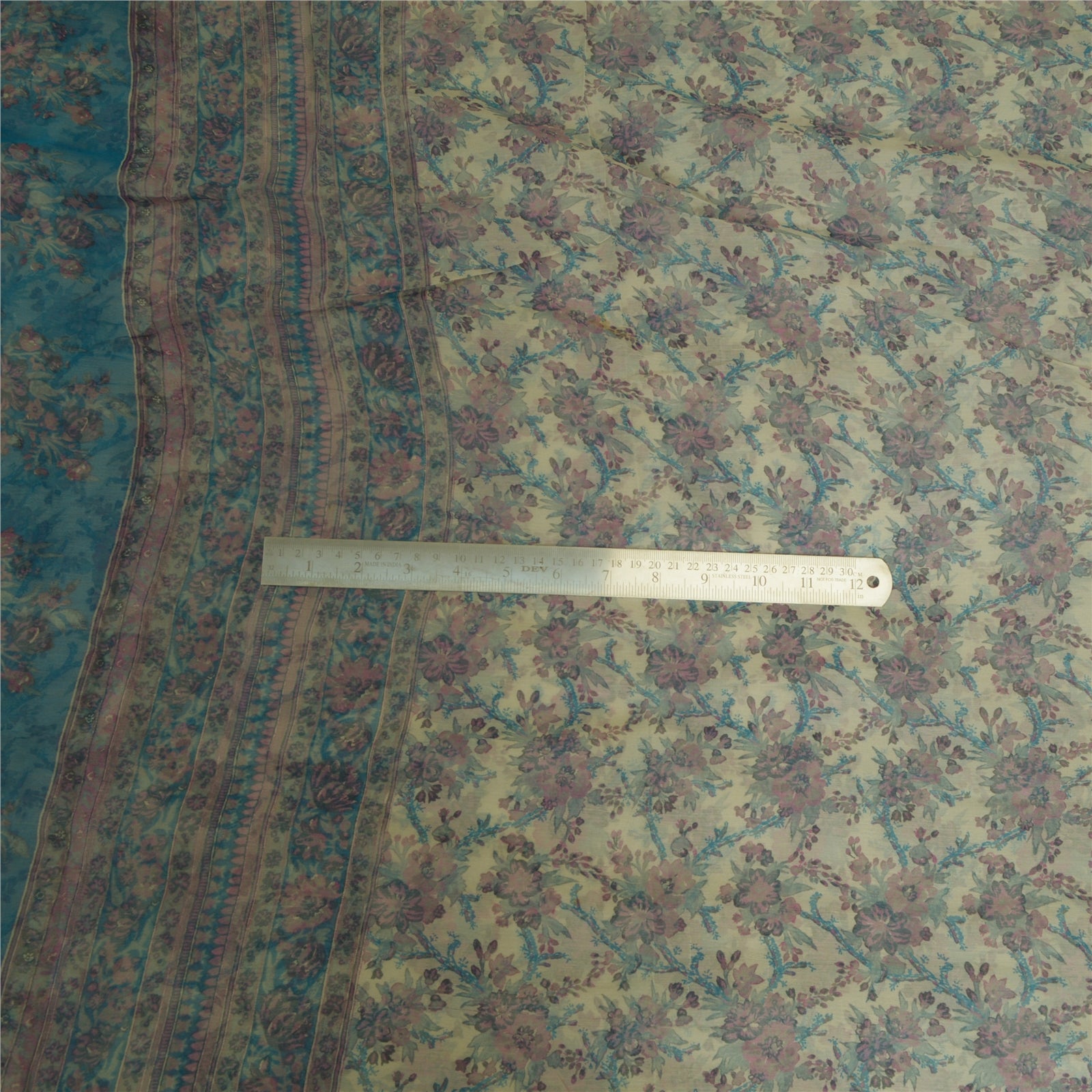 THE ITEM COLOR OR SHADE MAY BE DARKER OR LIGHTER THAN THE PICTURE.' Beautiful ivory & blue colored pure chiffon silk printed saree. Pallu & Border has printed floral design. Similar design in center part of saree. Saree has mild stain on it. What is special about this saree? Brilliant design on soft Sustainable Fabric is really enhancing the beauty of the saree. This unique vintage saree can be used for various crafting ideas even if you don't want to use it as a sari. Design a dress, use it as a as window dressing, upholstery, sarongs, throw, dress making and table linen much more. Let your creative juices flow and use this decorated Sustainable Fabric in multiple fashion. International buyers please note: Import duties, taxes, and charges are not included in the item price or postage cost. These charges are the buyer's responsibility. Please check with your country's customs office to determine what these additional costs will be prior to bidding or buying.Buyer will pay custom duty/tax. It is calculated and charged differently by every country. As a seller I do not have any control over it. VAT or sales tax is calculated by the platform at the time of checkout. Customs charge is payable at the time of delivery.