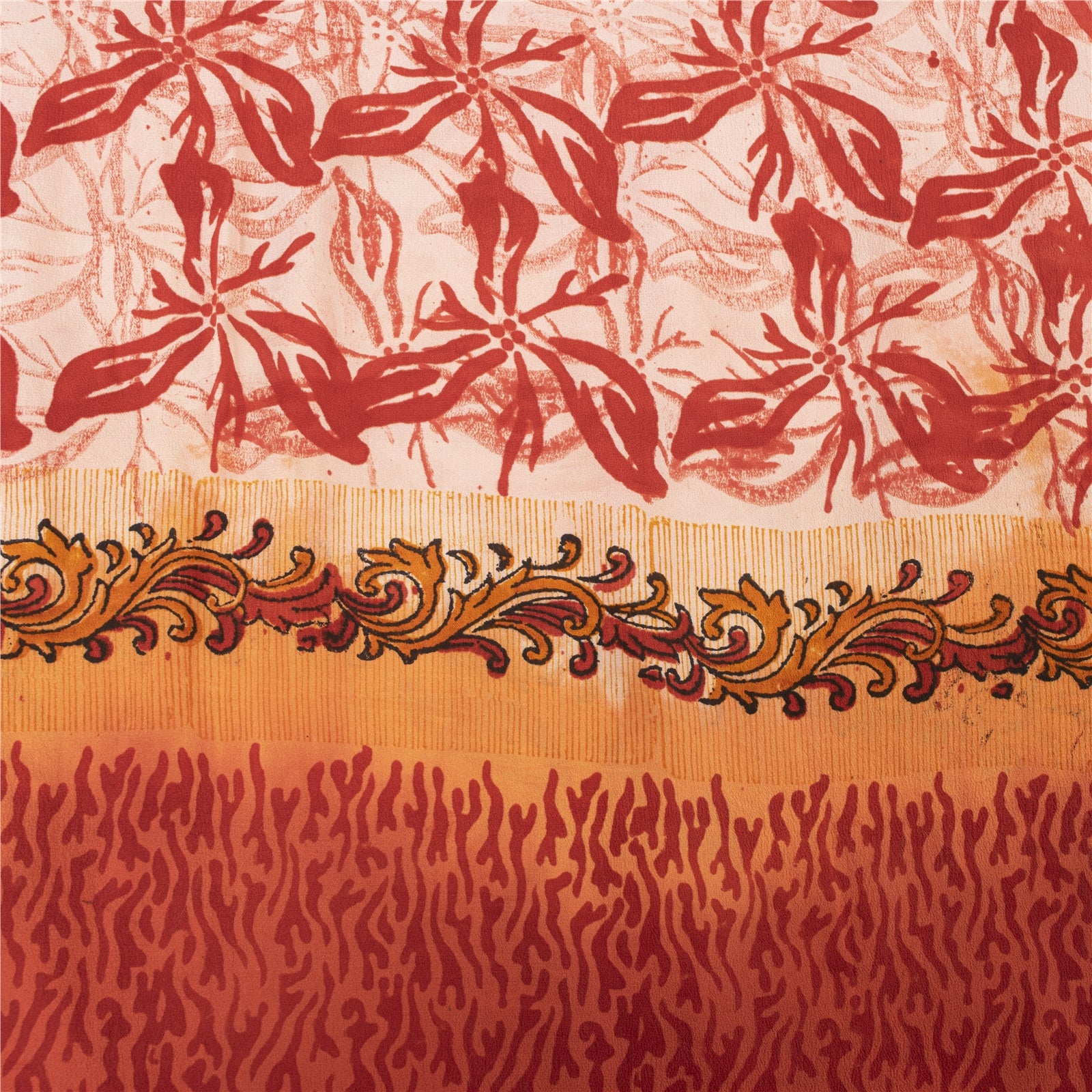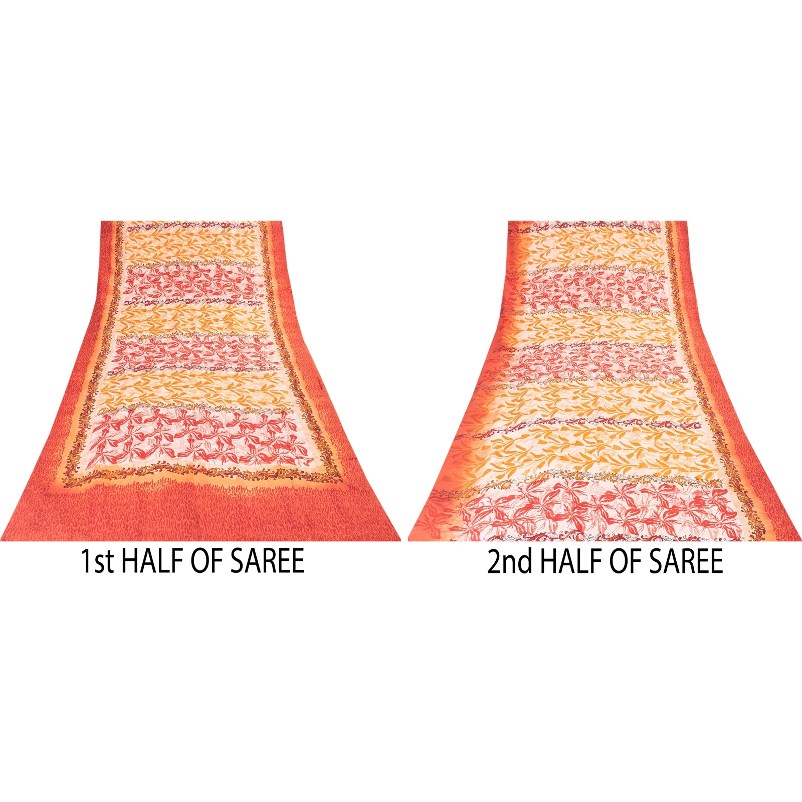 Sanskriti Vintage Sarees Ivory Pure Crepe Silk Printed Sari 5+yd Craft Fabric