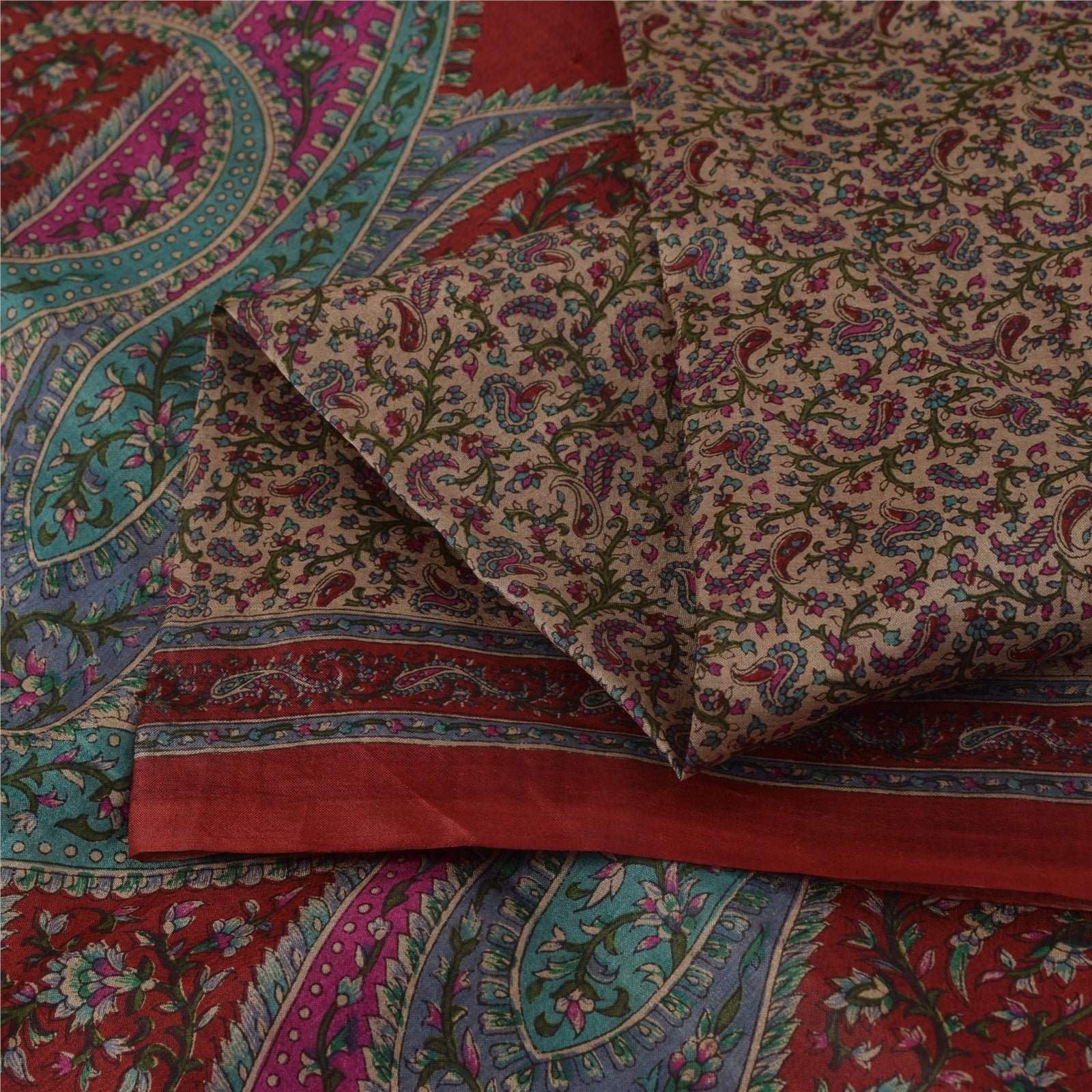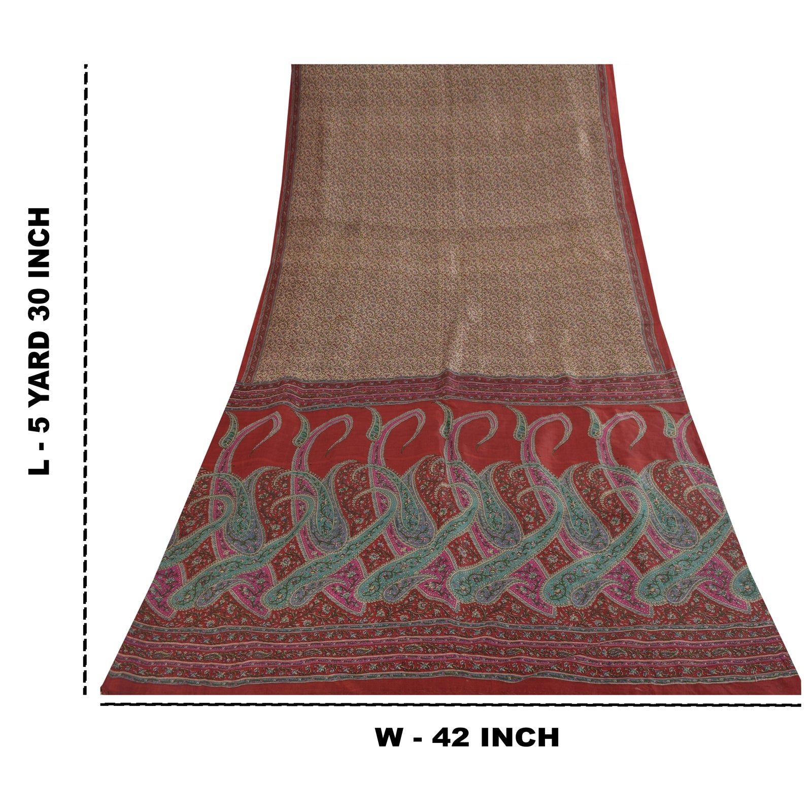 Sanskriti Vintage Sarees Light Brown Pure Silk Printed Sari 5+yd Craft Fabric