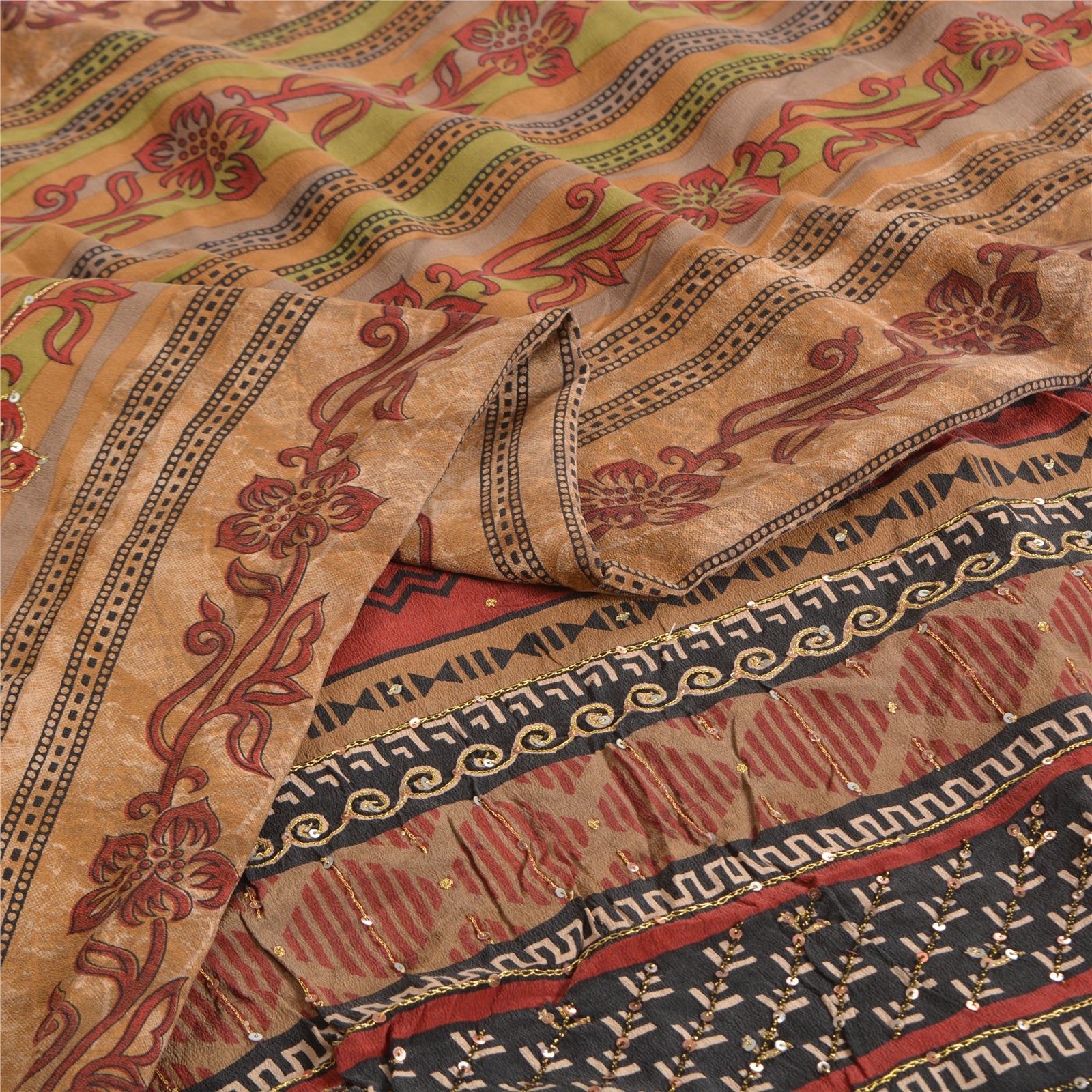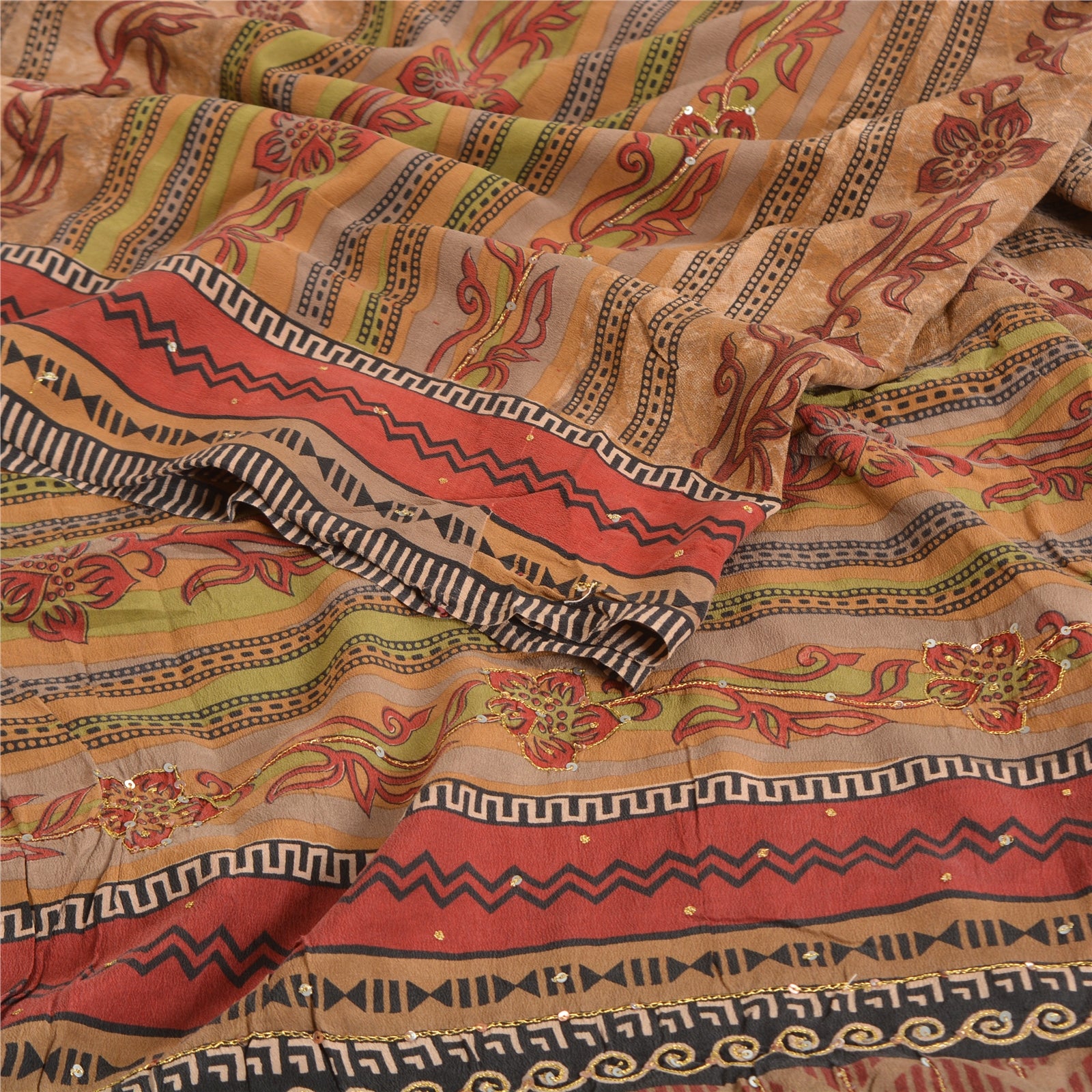 Sanskriti Vintage Sarees Multi Hand Bead Print Pure Crepe Silk Sari Craft Sustainable Fabric