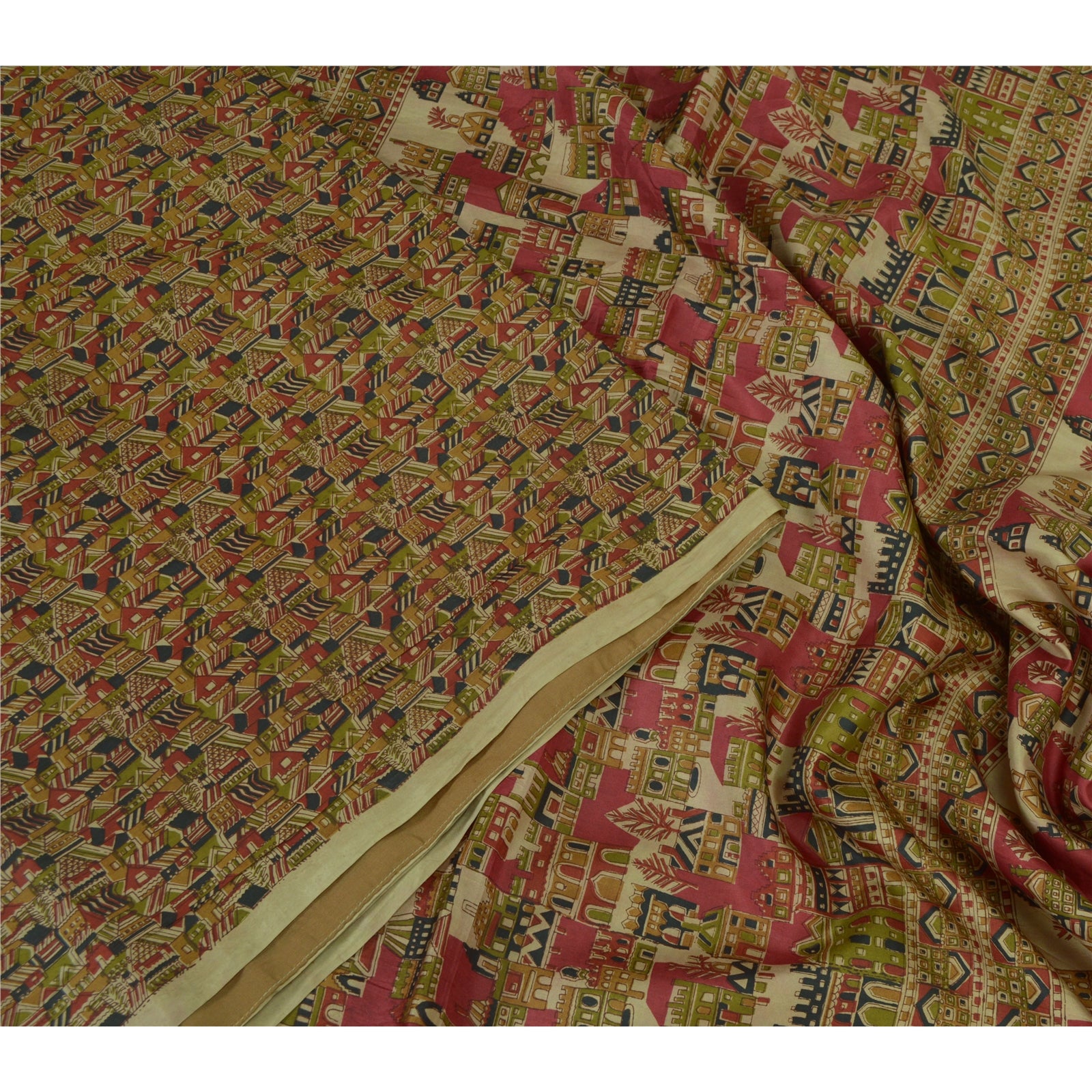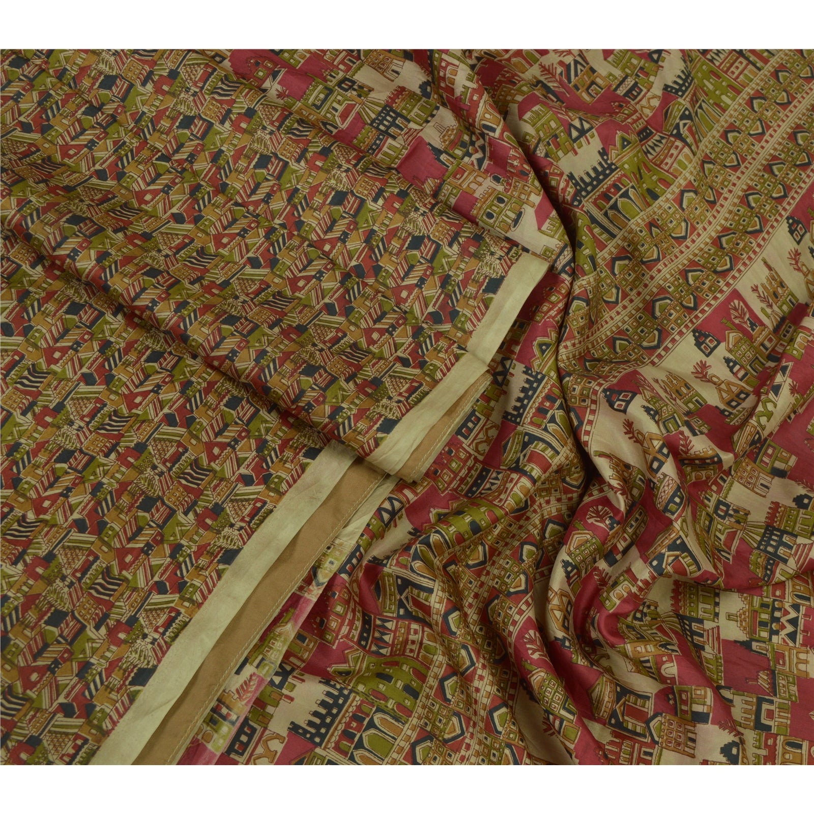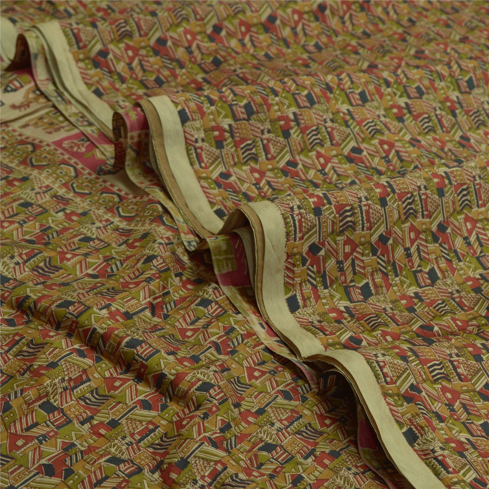 Sanskriti Vintage Sarees Multi Indian Sari 100% Pure Silk Printed Craft Sustainable Fabric