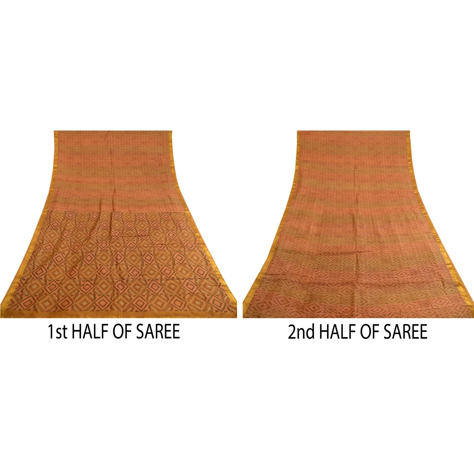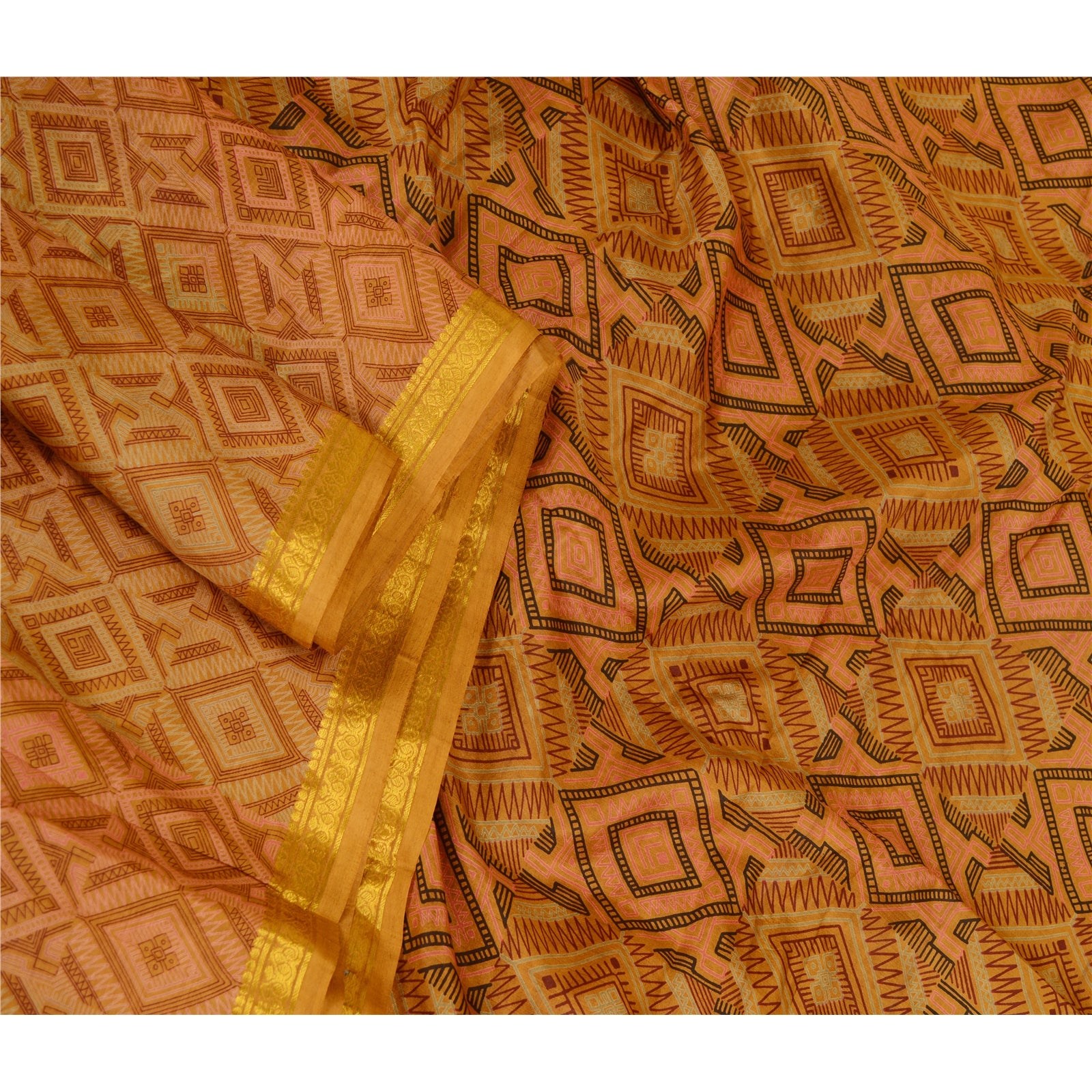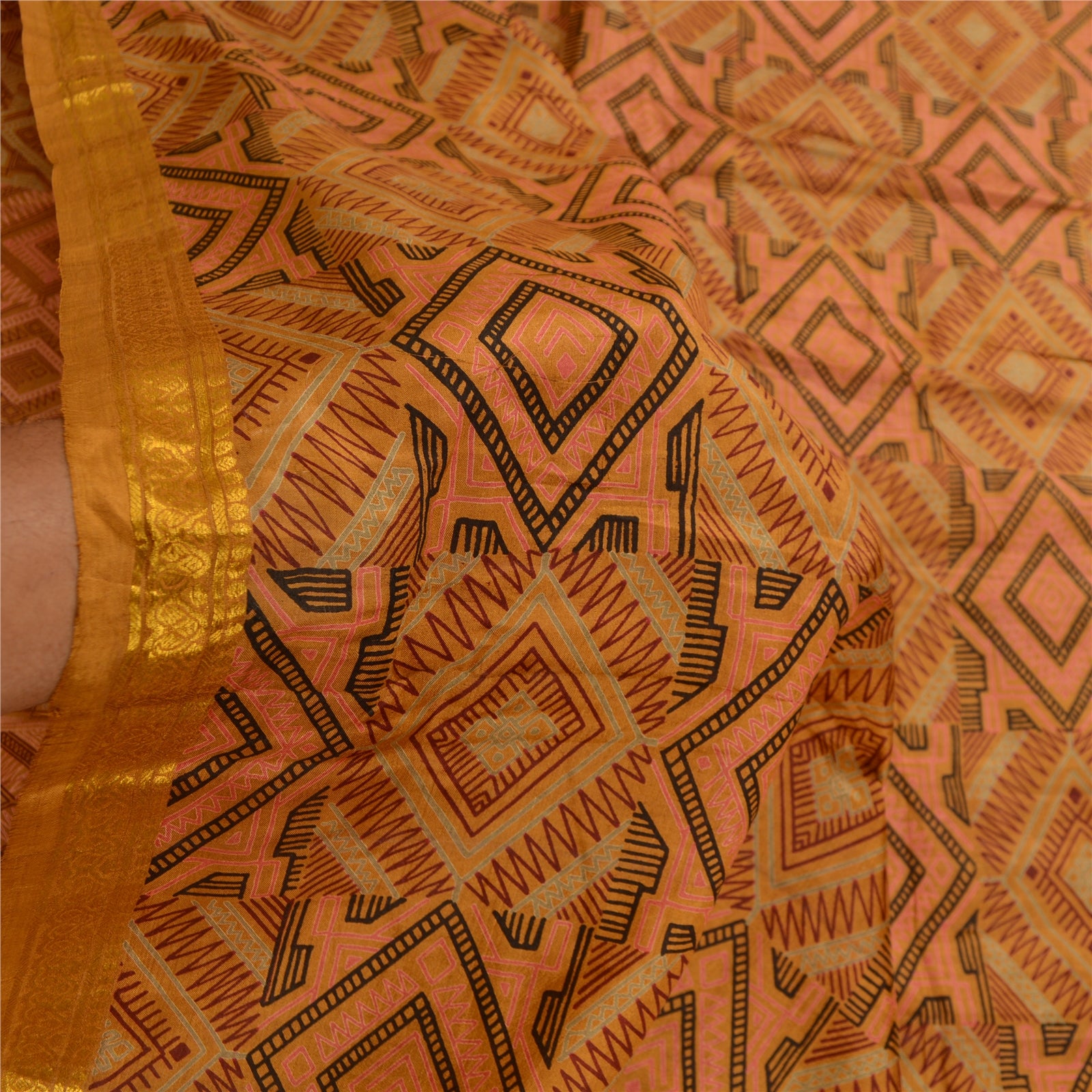 Sanskriti Vintage Sarees Multi Printed Pure Silk Zari Border Sari Craft Sustainable Fabric