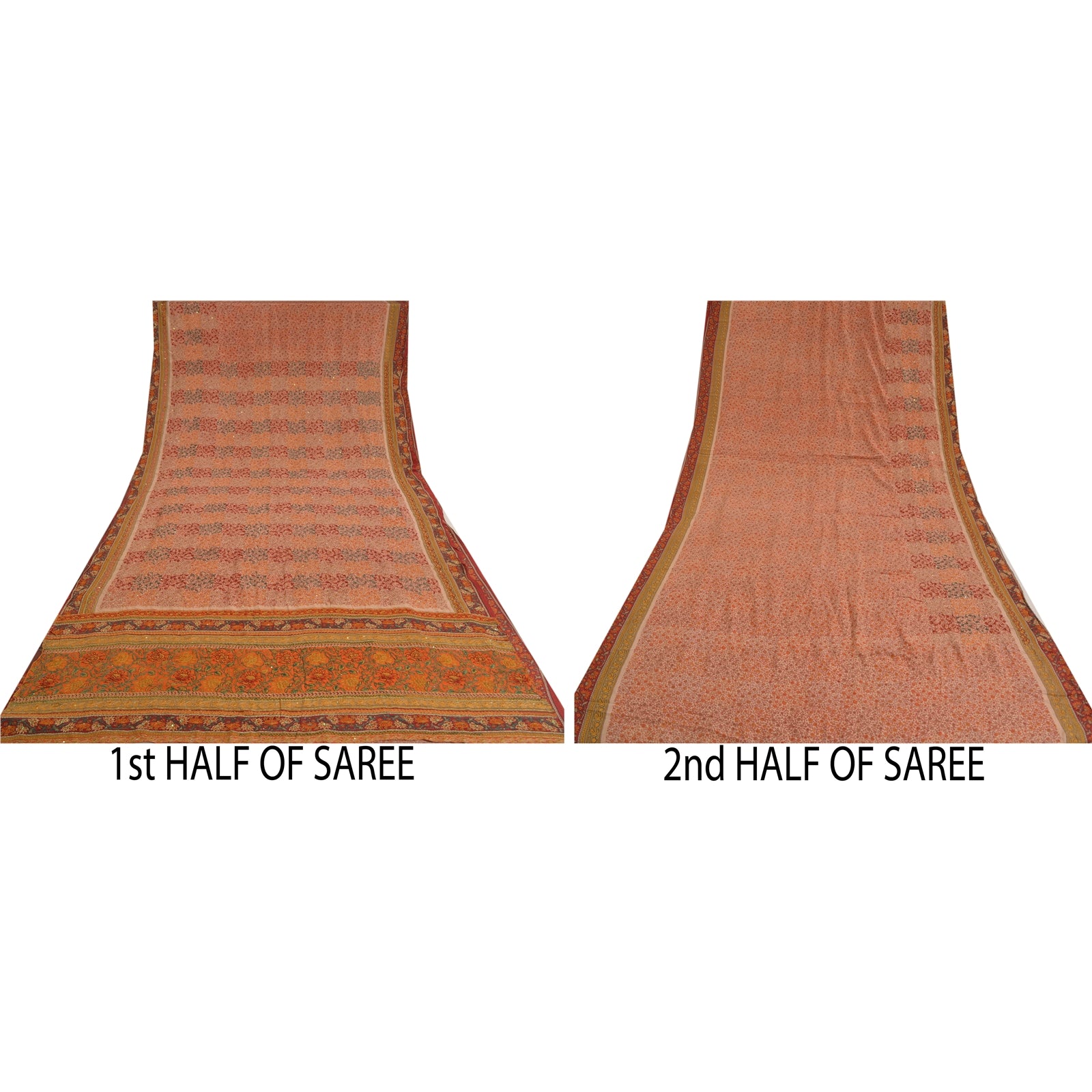 Sanskriti Vintage Sarees Multi Pure Crepe Silk Hand Beaded Printed Sari Sustainable Fabric