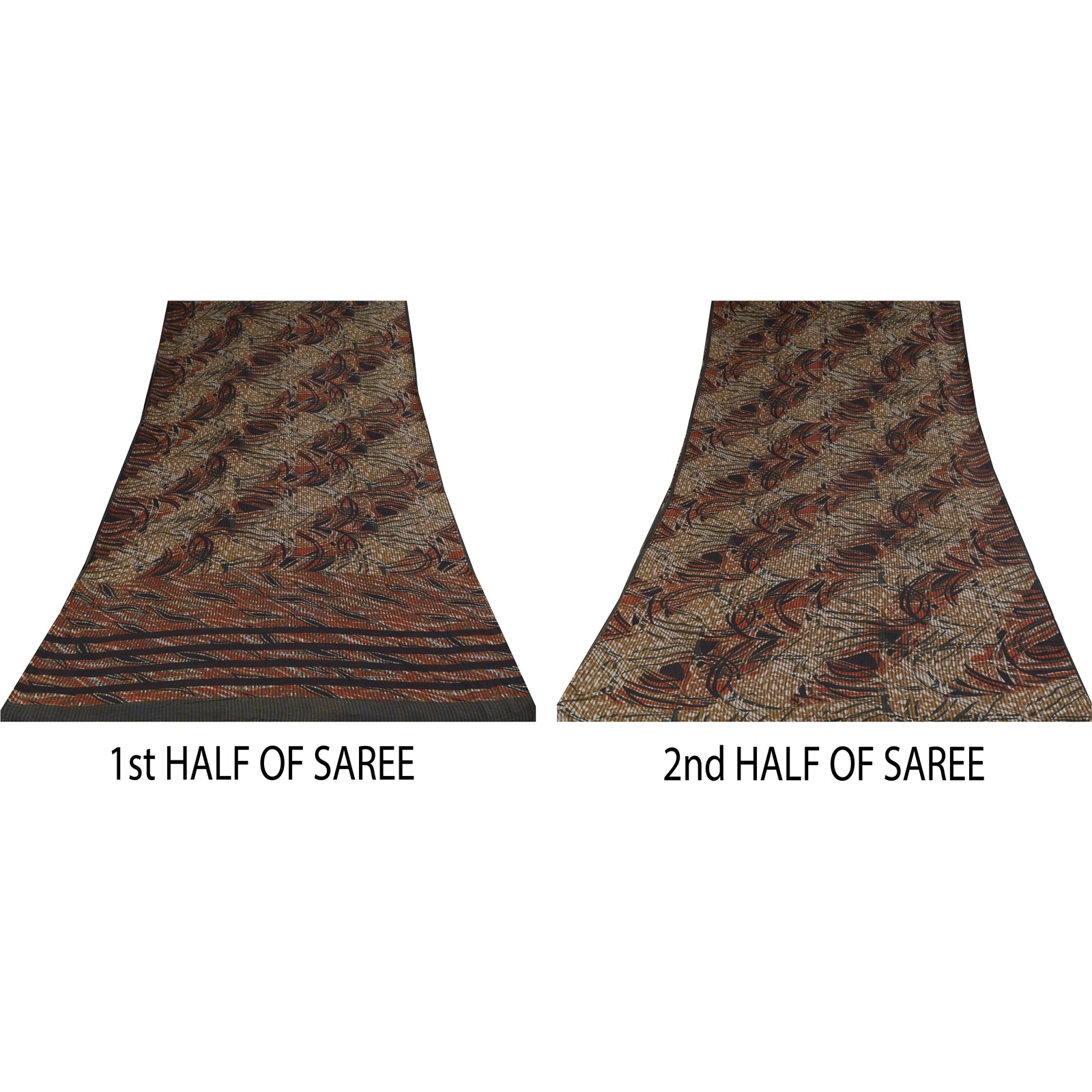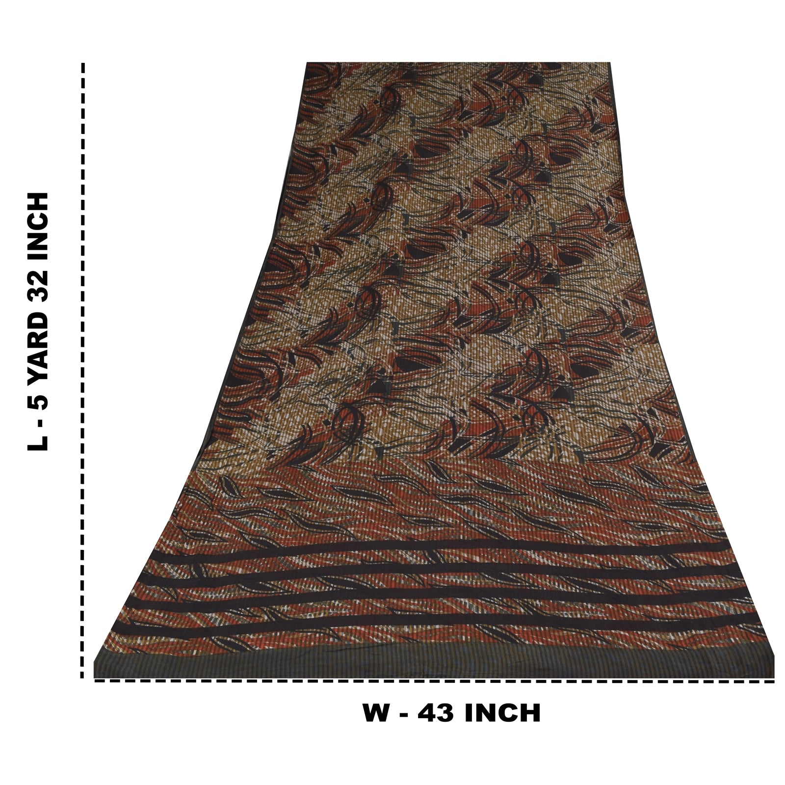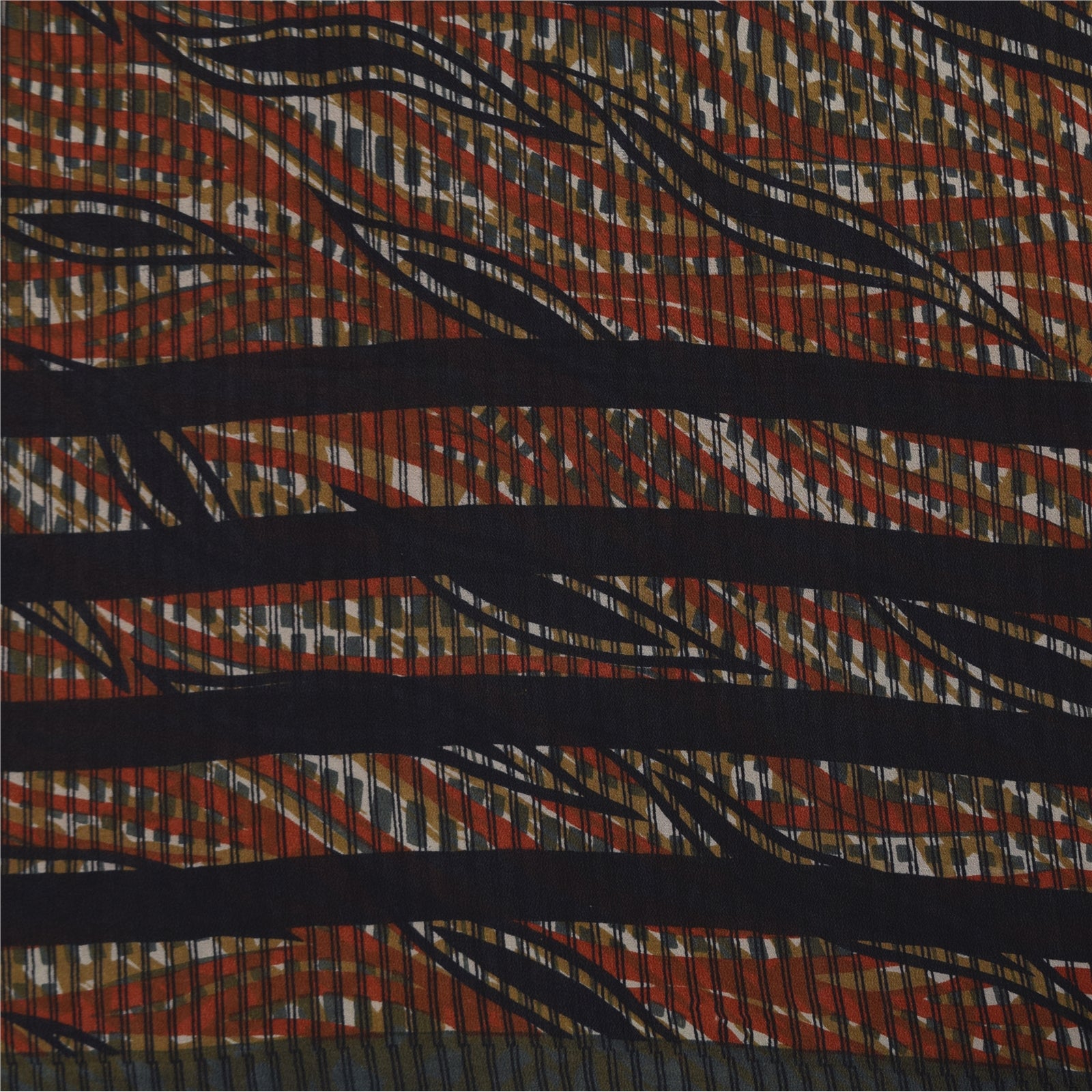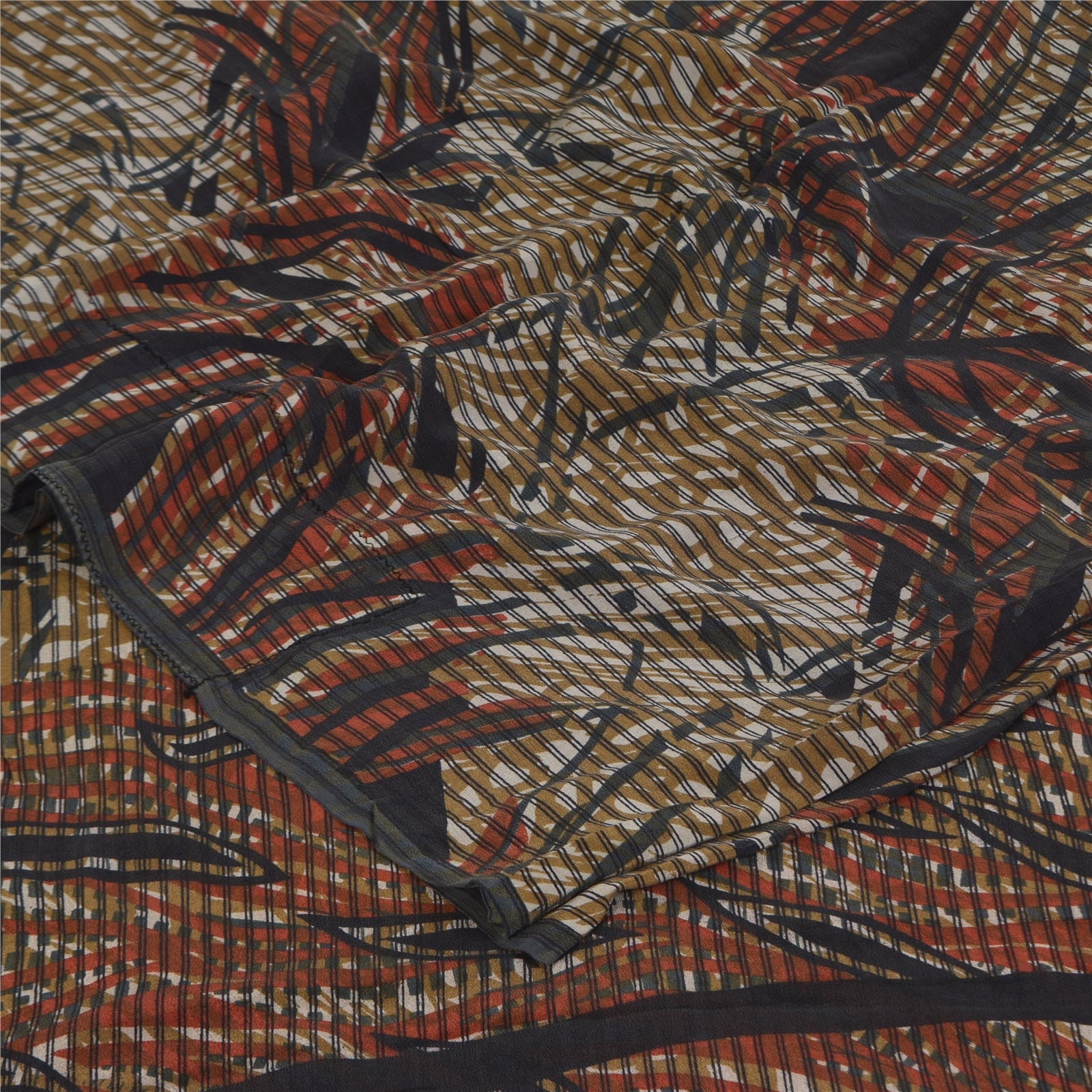 Sanskriti Vintage Sarees Multi Pure Crepe Silk Printed Sari 5+yd Craft Sustainable Fabric