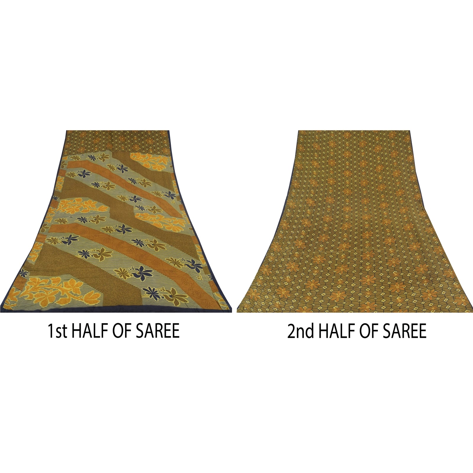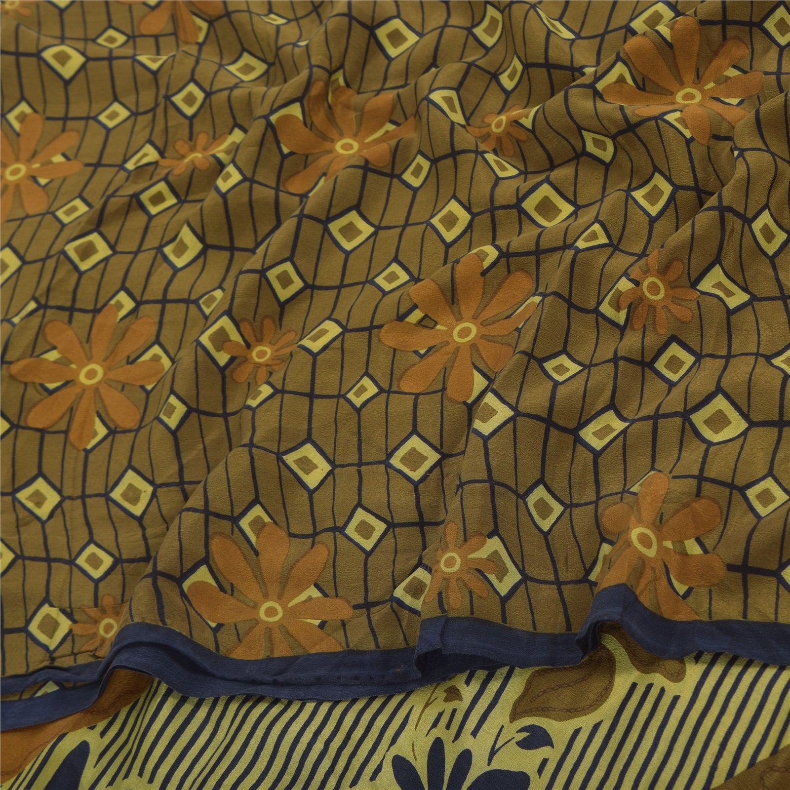 Sanskriti Vintage Sarees Multi Pure Crepe Silk Printed Sari 5yd Craft Sustainable Fabric