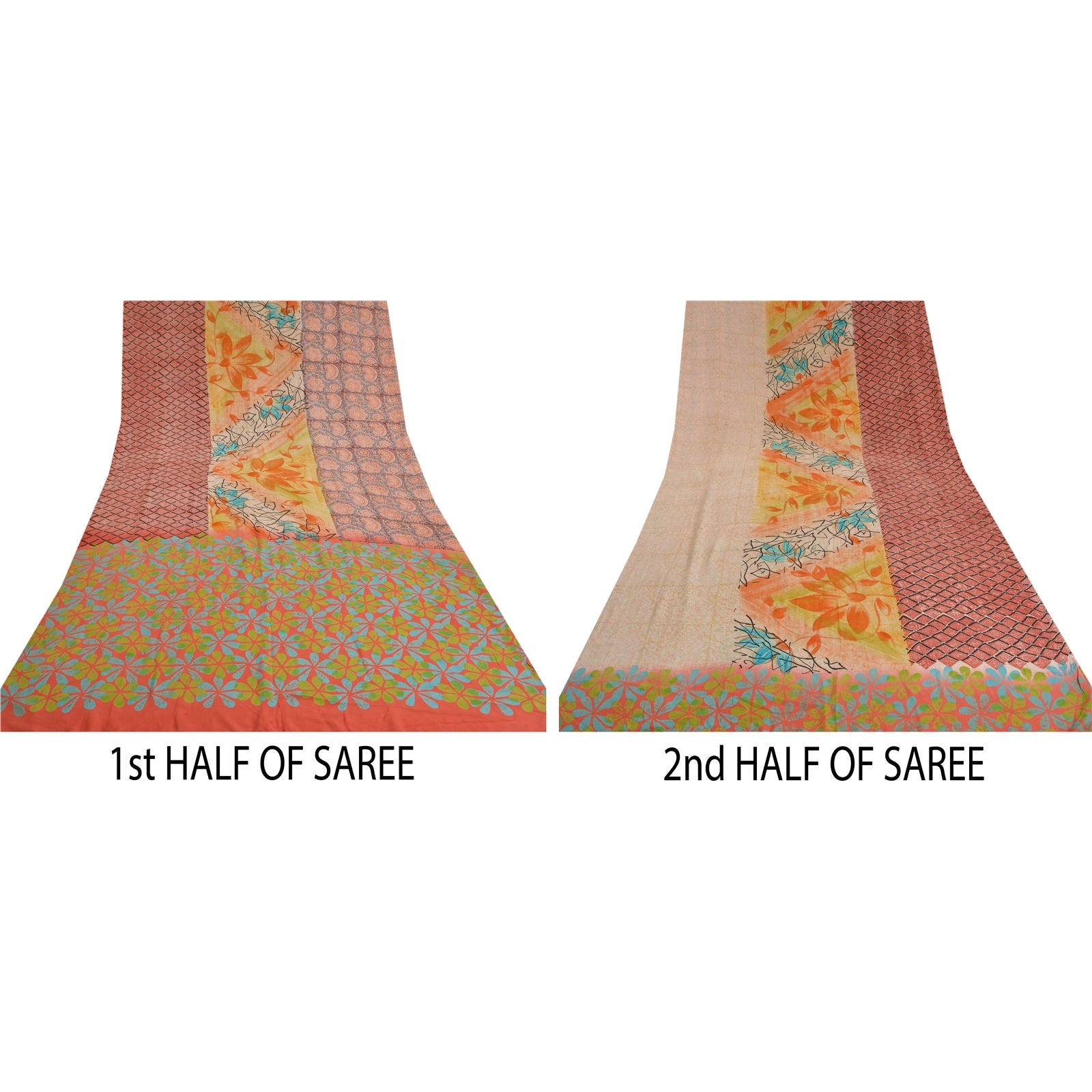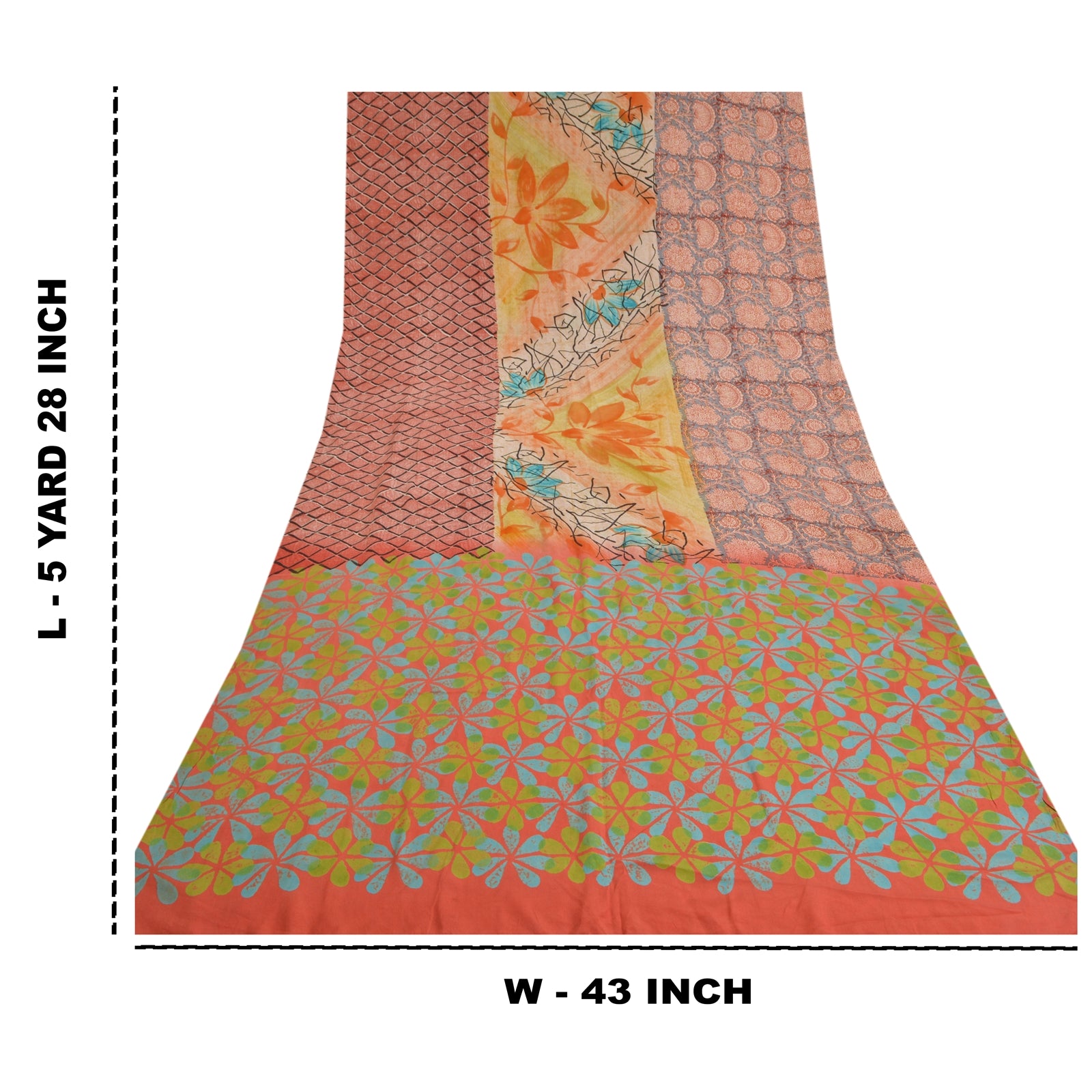 Sanskriti Vintage Sarees Multi Pure Crepe Silk Printed Sari Floral Craft Sustainable Fabric